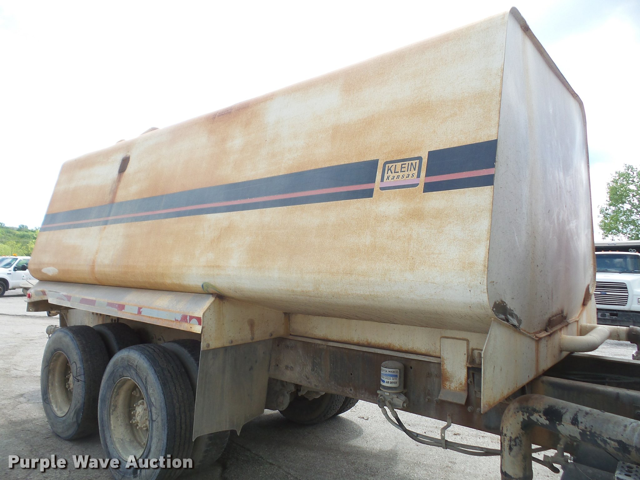 Purple Wave is selling a used Tank Truck or Water Truck in Kansas. This item is a 1987 Freightliner FLC112 tank truck with the following: 214,914 miles on odometer, Cummins LT10 10.0L L6 turbo diesel engine, 270 HP, Eaton Fuller eight speed manual transmission, Tandem axle, Heat, Air suspension seat, PTO, Klien tank, 15.5'L, 4,000 gallon capacity, Front and rear spray bar, Rear hose reel, Front discharge, Top fill, Single exhaust stack, Single fuel tank, Walking beam suspension, Air brakes, 465/65R22.5 front tires, 11R22.5 rear tires, No passenger window, No driver wing window