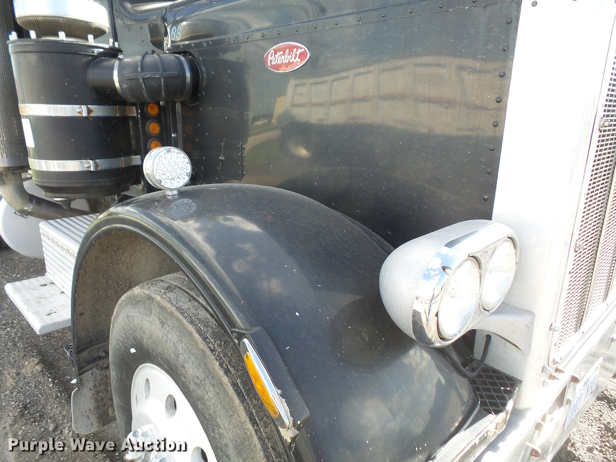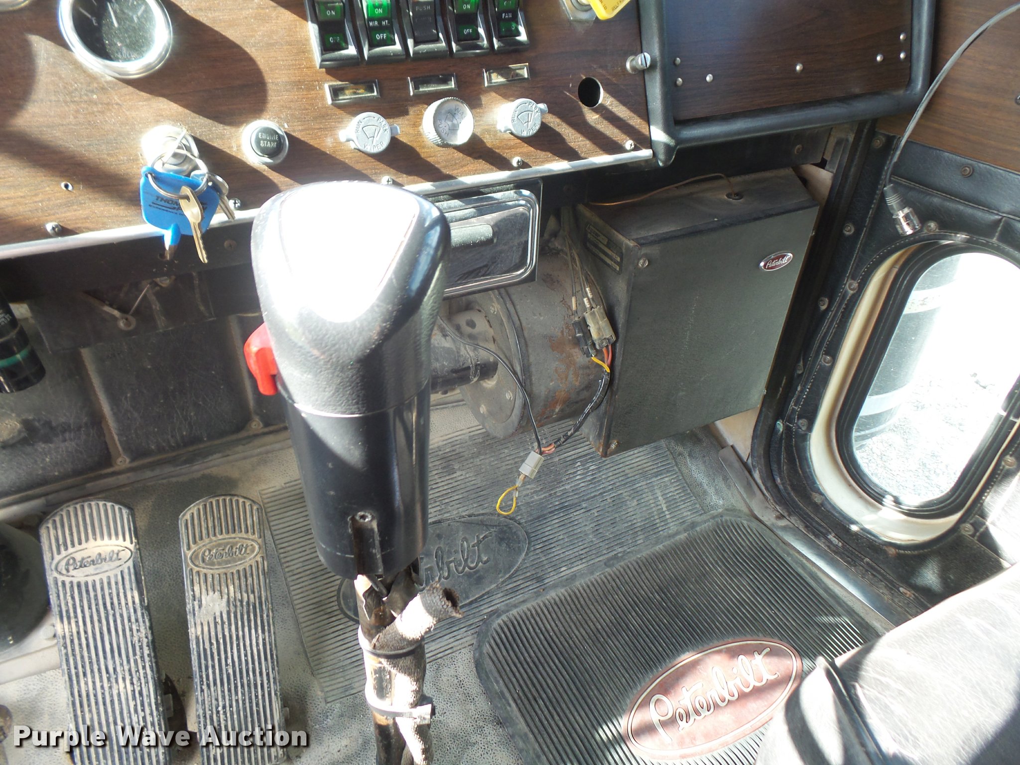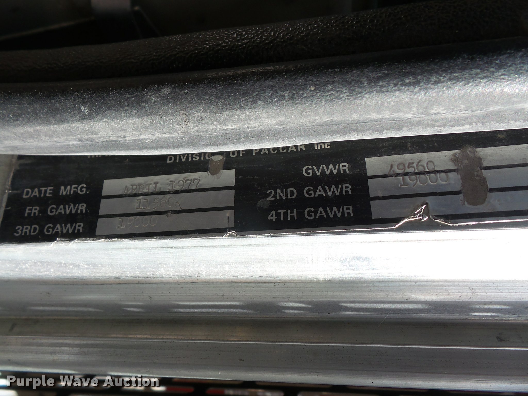 Purple Wave is selling a used Truck Tractor in Kansas. This item is a 1977 Peterbilt 359 dump truck with the following: 459,915 miles on odometer, Cummins six cylinder turbo diesel engine, 13 speed manual transmission, Tandem axle, Inter-axle differential lock, AC and heat, AM/FM, Air suspension seat, PTO, Steel dump bed, 15'L x 96"W, 36" side height, 12" side board height, Single ram hoist, Air operated end gate, Roll tarp, Exterior visor, Single fuel tank, Pintle hitch, Spring suspension, Air brakes, 11R24.5 tires, GVWR 59,560 lbs, FAWR 11,560 lbs, IAWR 19,000 lbs, RAWR 19,000 lbs