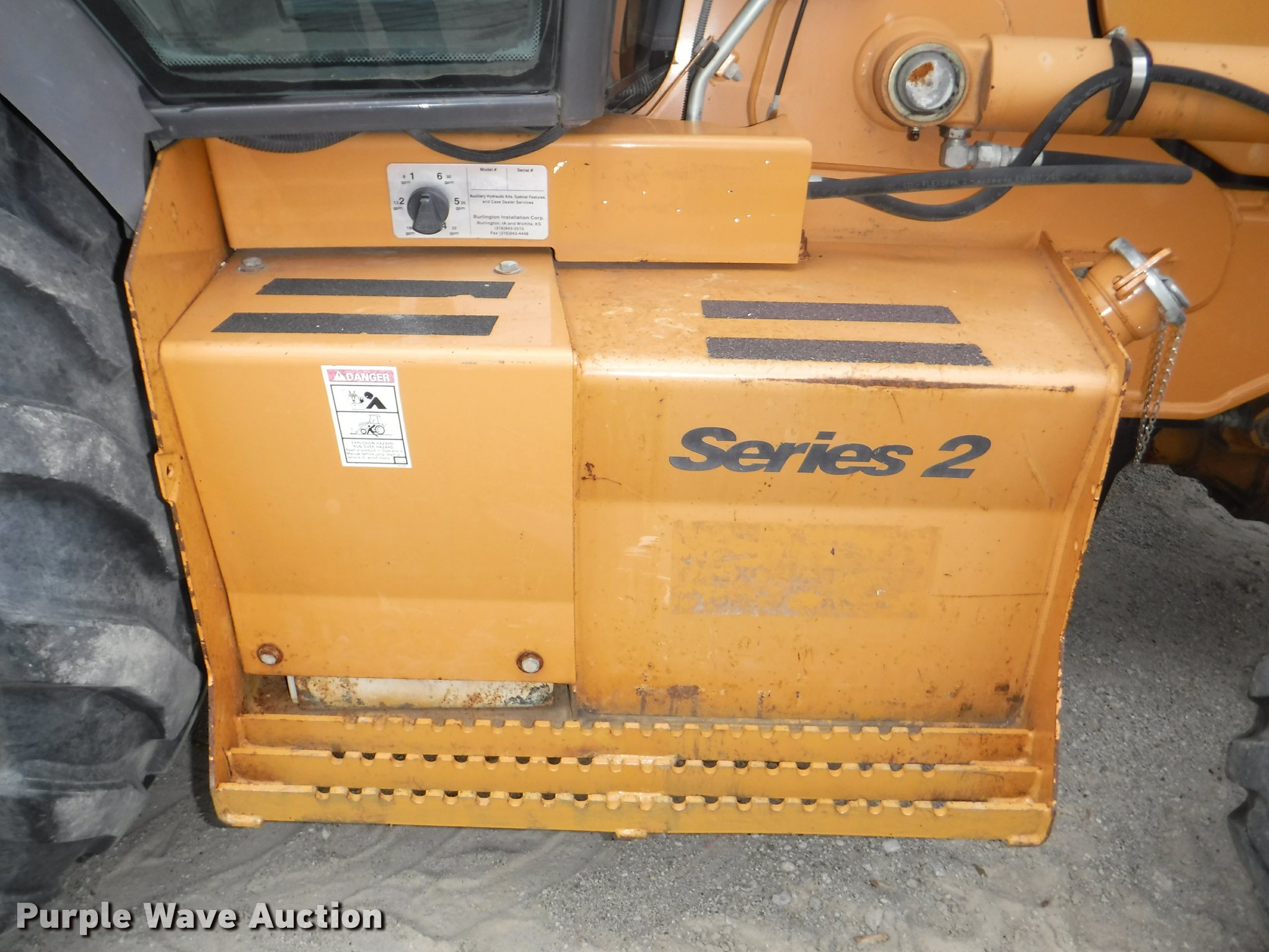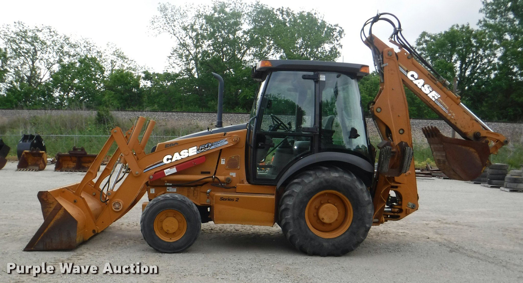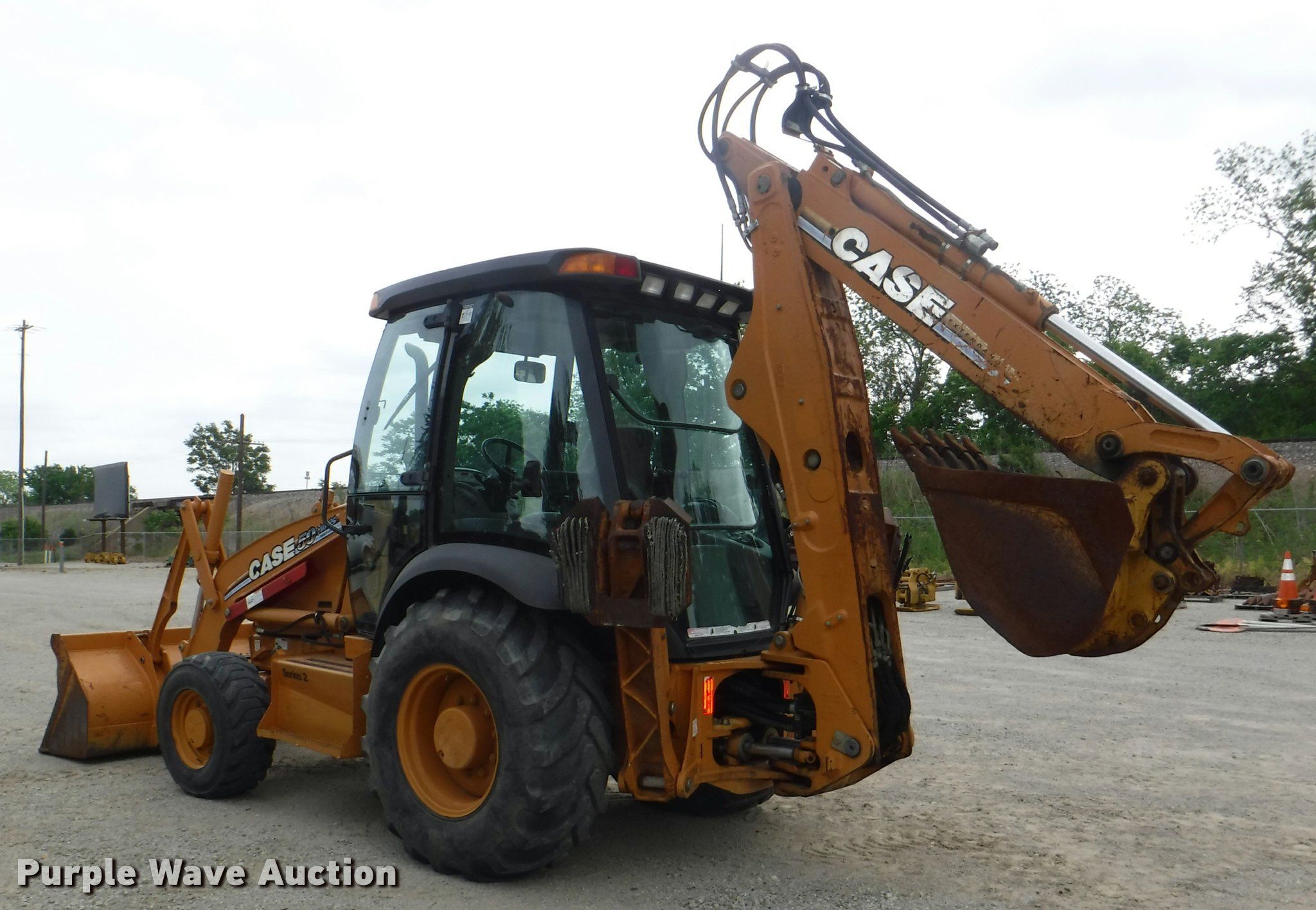Purple Wave is selling a used Tractor Loader Backhoe in Kansas. This item is a 2007 Case 580 Super M Series II backhoe with the following: 6,373 hours on meter, Case four cylinder turbo diesel engine, 4F-4R gears, Four wheel drive, EROPS, Serial CJF0072493, AC and heat, Tilt steering wheel, Suspension seat, Four stick backhoe controls, Ride control, Wipers, Front and rear work lights, 82"W loader bucket, Bolt-on cutting edge, Variable auxiliary hydraulics, E-stick, 198" extended reach, 158" collapsed reach, 24"W backhoe bucket, Weld-on cutting edge, Flip over outrigger pads, 900 lbs front counter weight, 12 x 16.5 front tires, 19.5-24 rear tires, Serial N7C427364