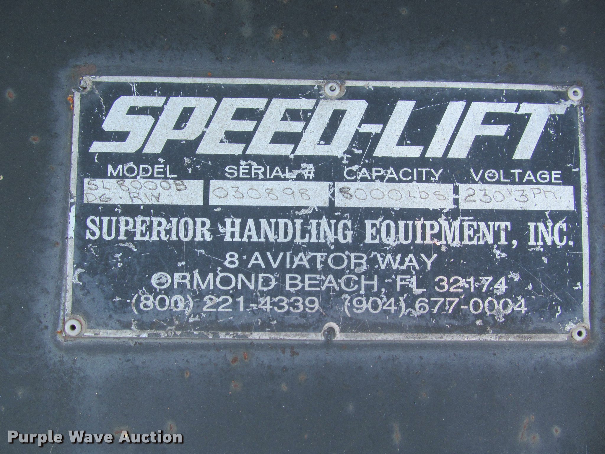 Take a look at this used Speedlift SL8000B DG-RW dock leveler being sold on June 8th, 2017 in the SOLD! June 8 Construction Equipment Auction made by Speedlift. Take a look at all of the item information below or take a look at similar auctions for Shop Tools.