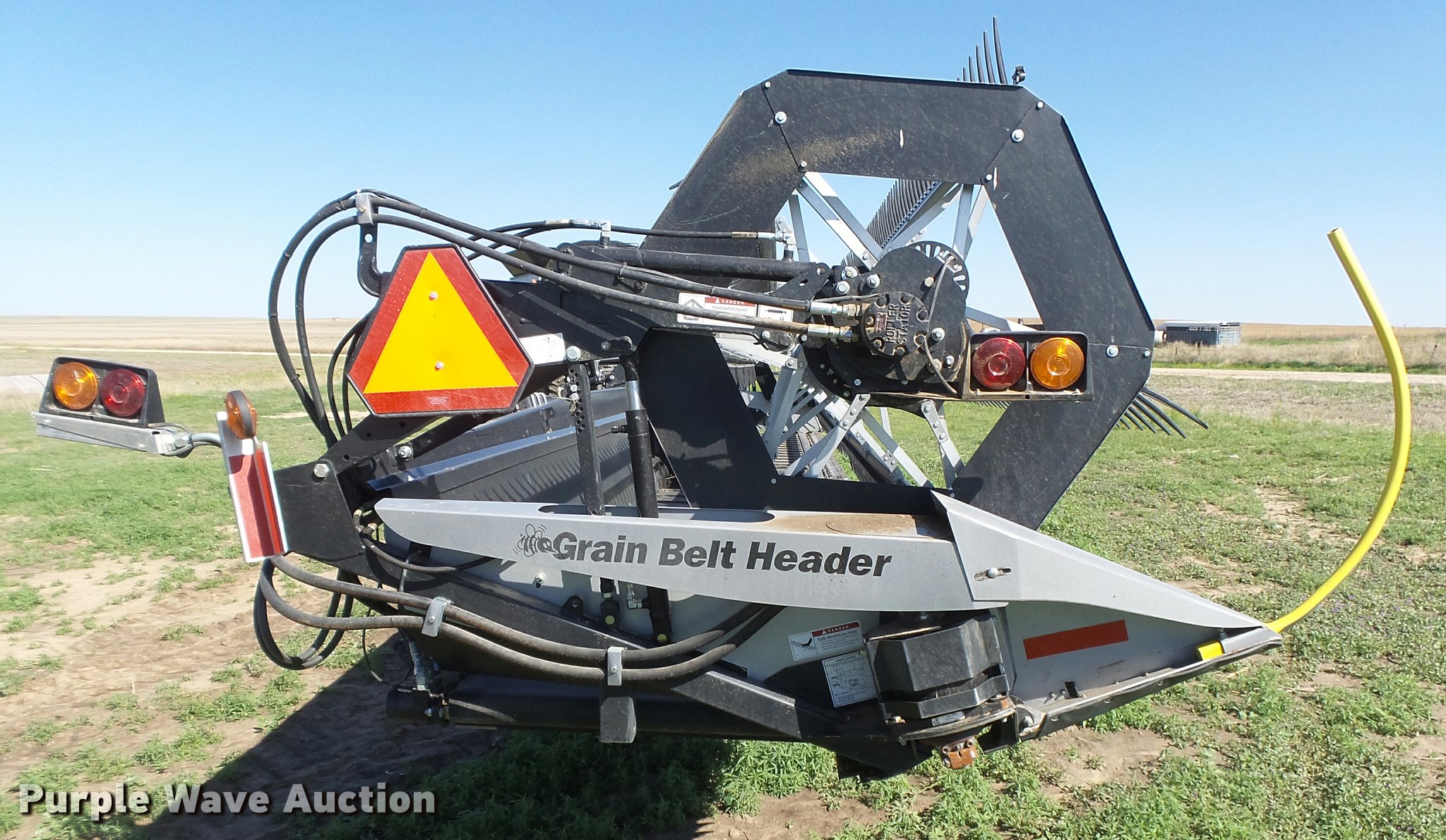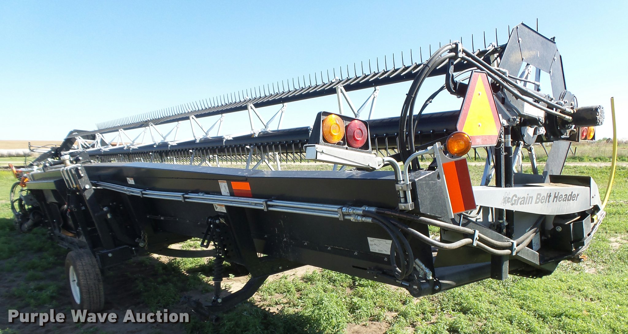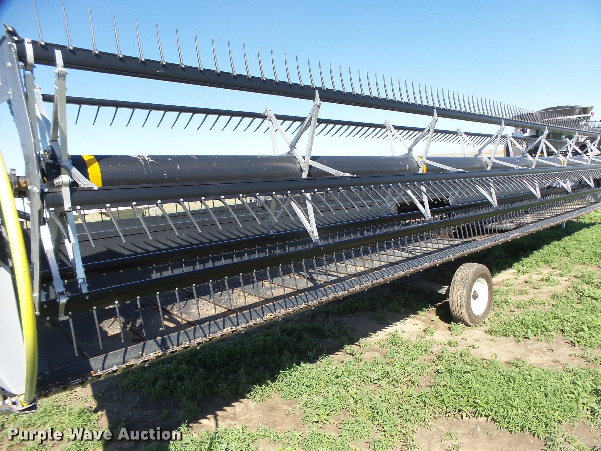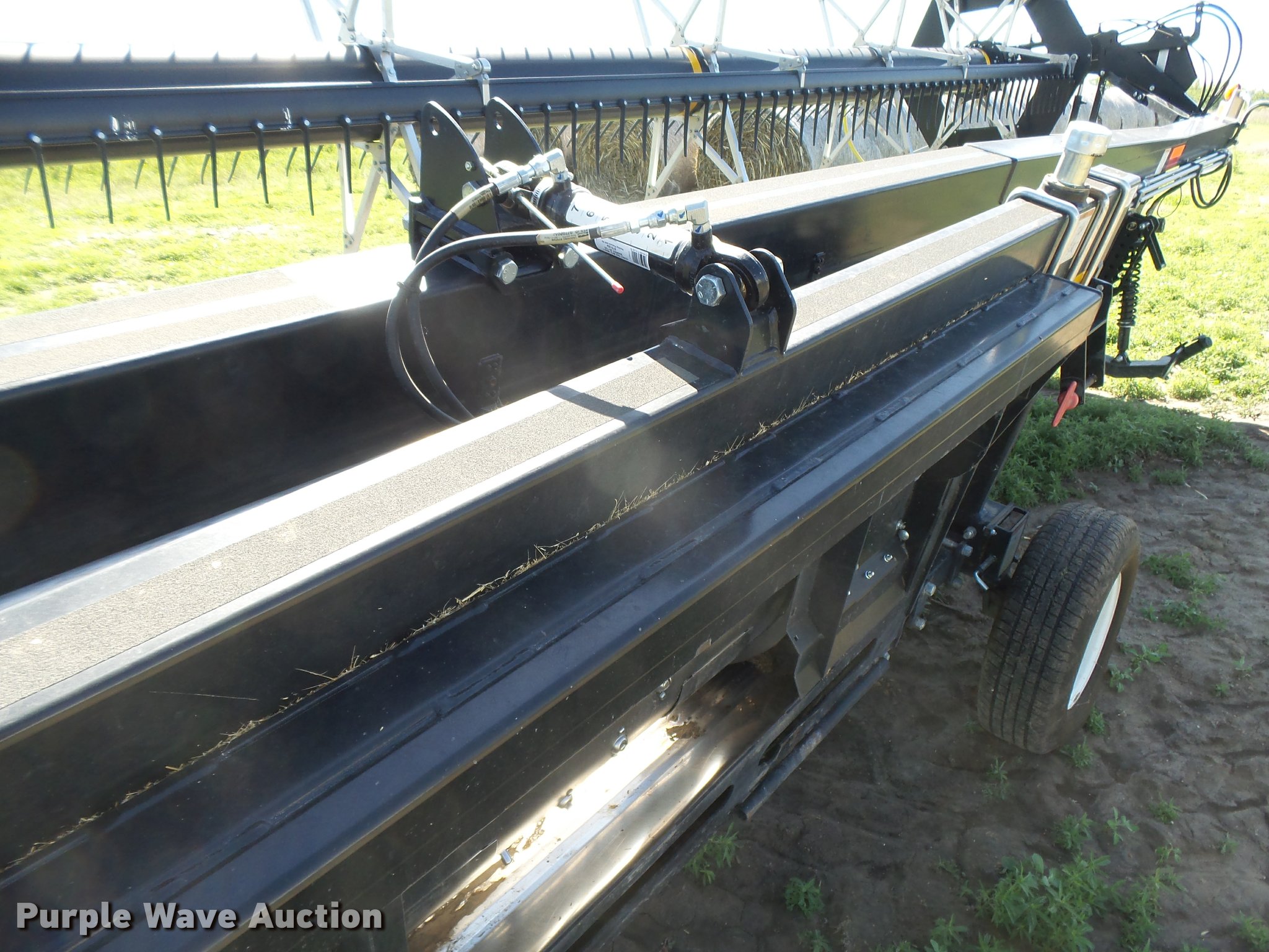 Purple Wave is selling a used Platform or Stripper Head in Kansas. This item is a 2014 Honey Bee SP36K07 draper head with the following: 36'W, Finger reel, Hydraulic fore/aft, Hydraulic reel height control, In-cab controller with wiring and mount, Single driveline, Transport package, ST225/75R15 tires, Additional parts included, Stored inside, Serial 119236GB14