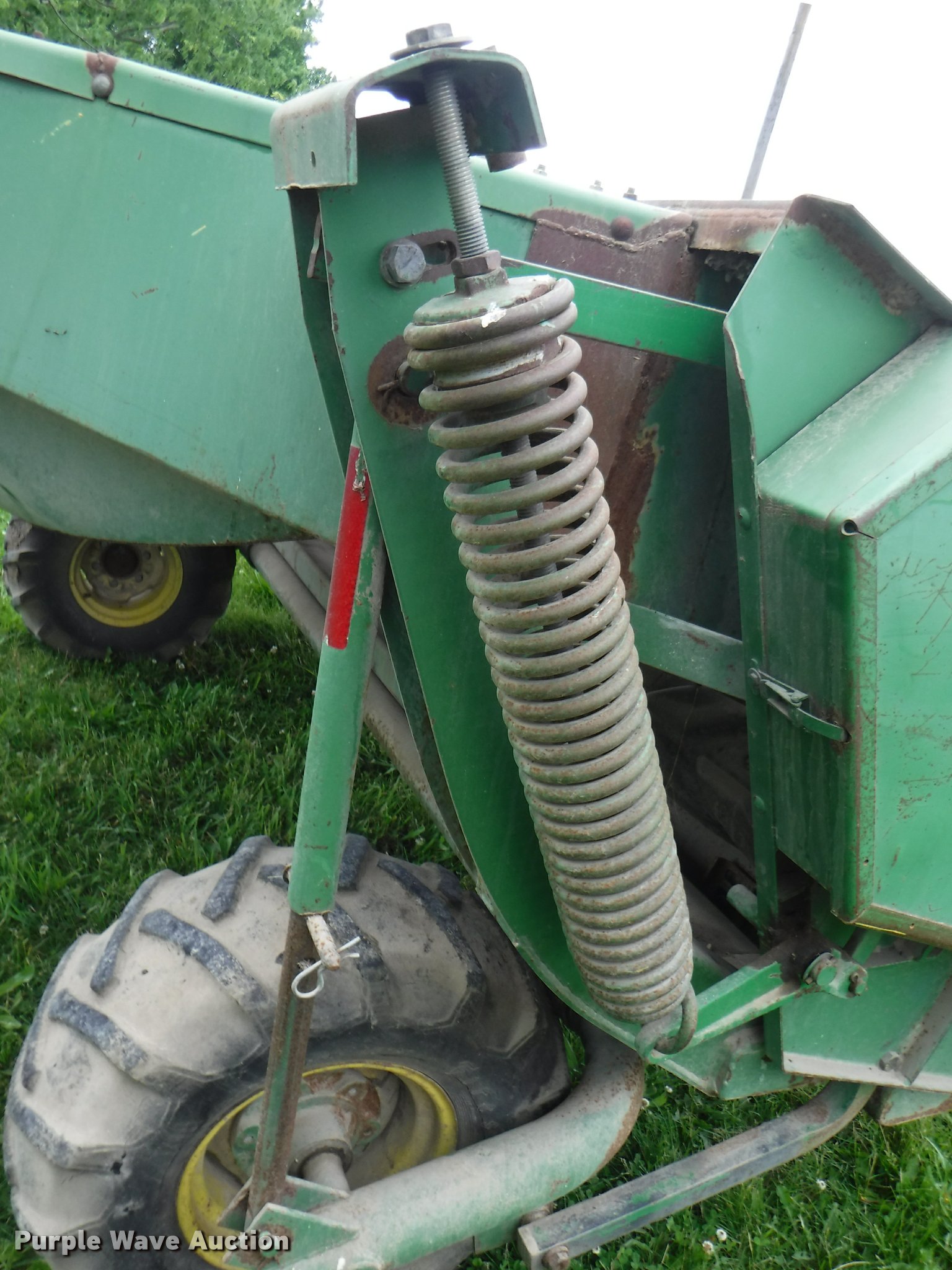 Purple Wave is selling a used Windrower Pull Type in Kansas. This item is a John Deere 1209 haybine windrower with the following: 9'W, Rubber/rubber conditioners, 540 PTO, Pin hitch, 26x13.00-12 tires, Serial 609764E