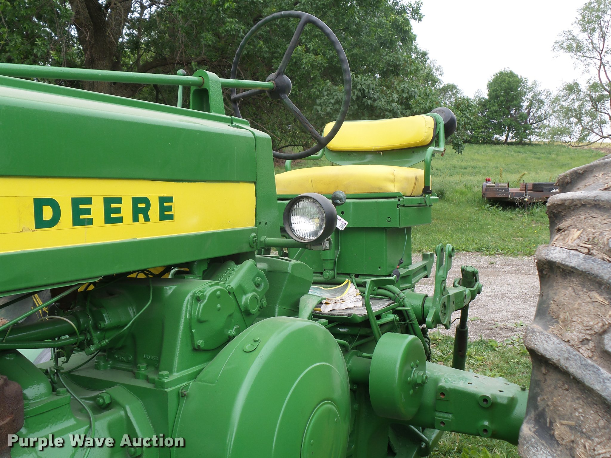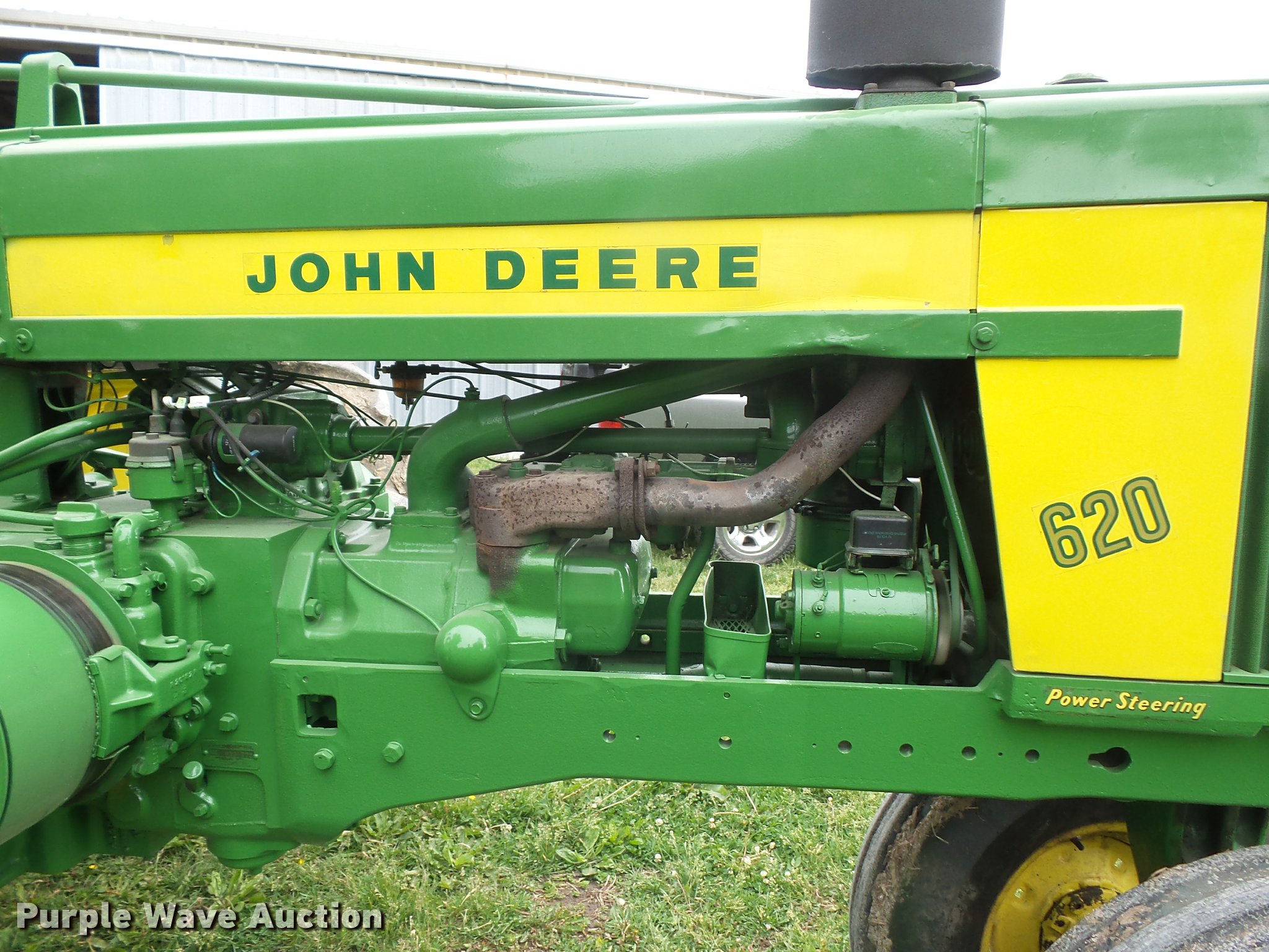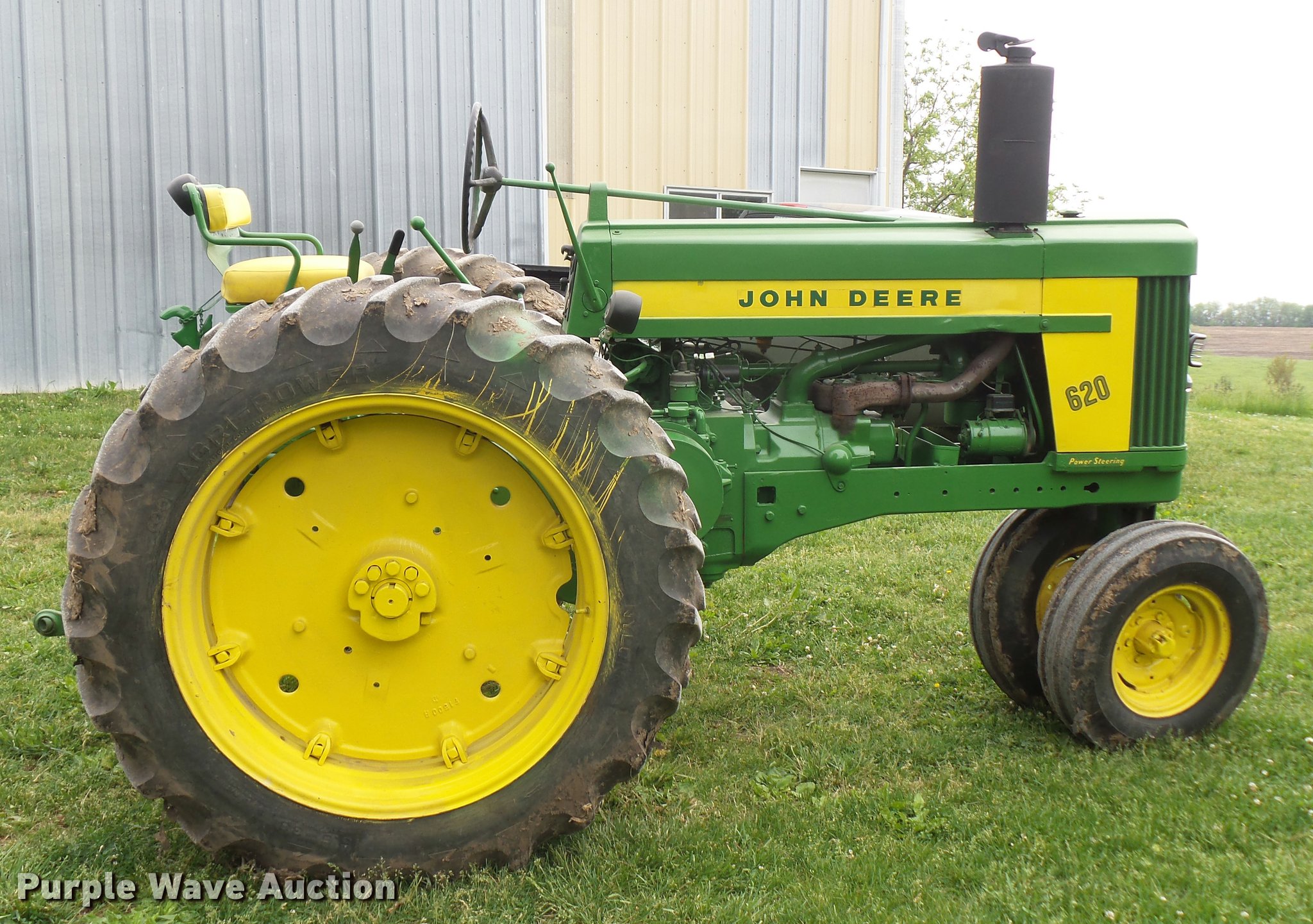 Purple Wave is selling a used Tractor in Missouri. This item is a John Deere 620 tractor with the following: 133 hours on meter, Two cylinder gas engine, Manual transmission, 6F-1R gears, Power steering, Three point, Top link, 540 PTO, Draw bar, Rear hydraulic remote, 7.50-16 front tires, 15.5-38 rear tires, Serial 6221772