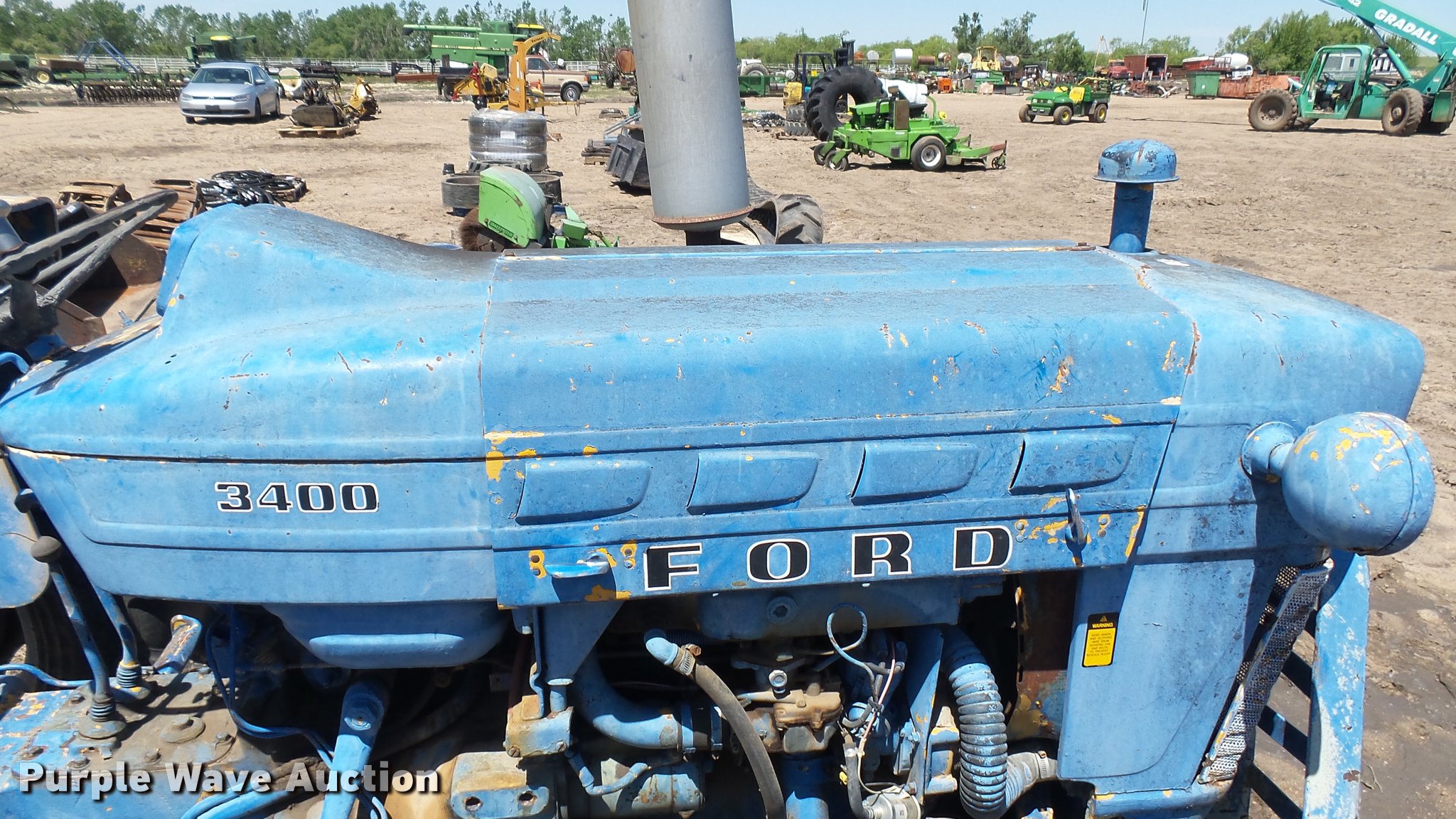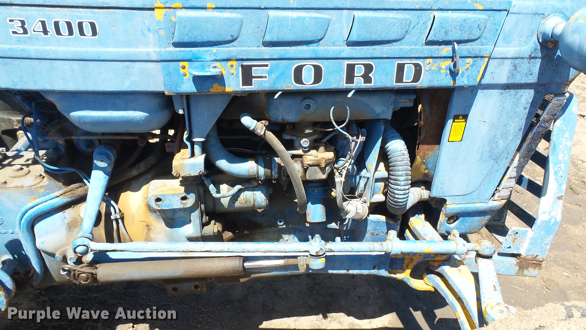 Purple Wave is selling a used Tractor in Kansas. This item is a Ford 3400 tractor with the following: 2,541 hours on meter, Three cylinder gas engine, Manual transmission, 6F-2R gears, Front and rear lights, 540 PTO, 14.9-24 rear tires