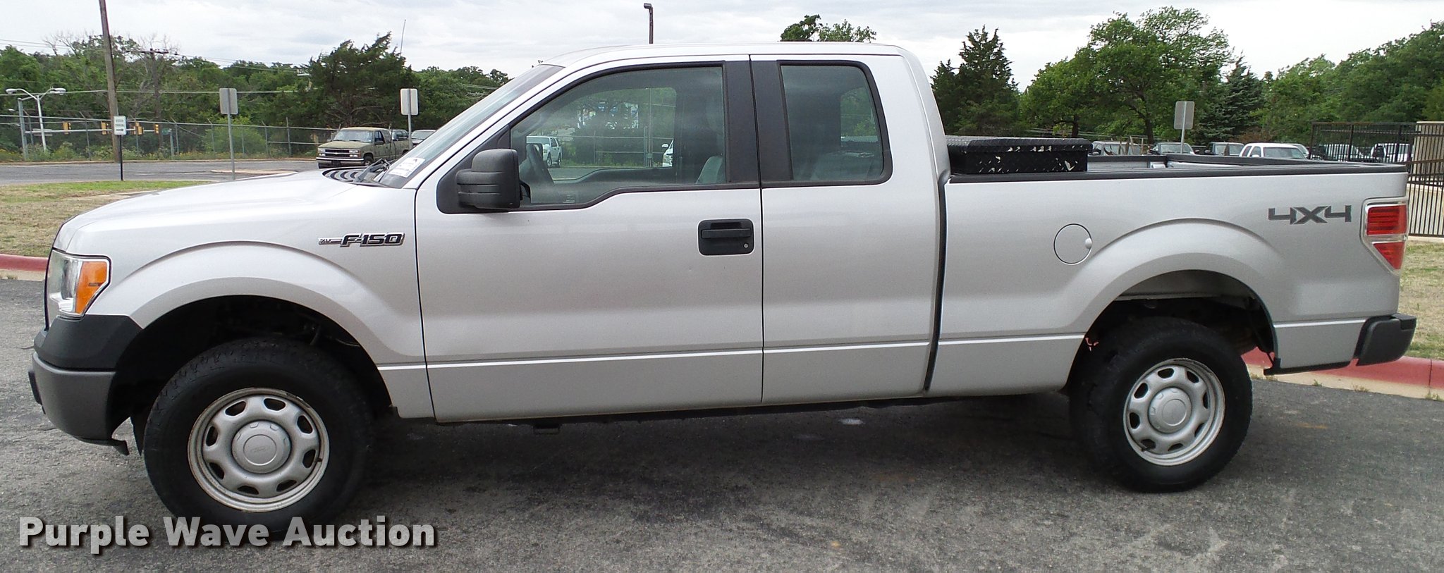 Purple Wave is selling a used 1/2 Ton Pickup or Van in Oklahoma. This item is a 2011 Ford F150 SuperCab pickup truck with the following: 103,902 miles on odometer, 5.0L V8 FFV gas engine, Automatic transmission, Four wheel drive, AC and heat, Tilt, Cruise, AM/FM, Vinyl interior, Front tow hooks, Toolbox, Receiver hitch, Trailer wiring, 235/75R17 tires