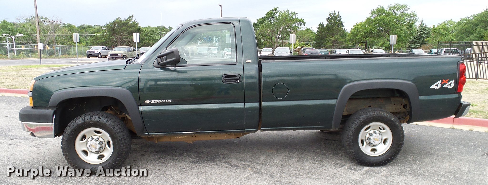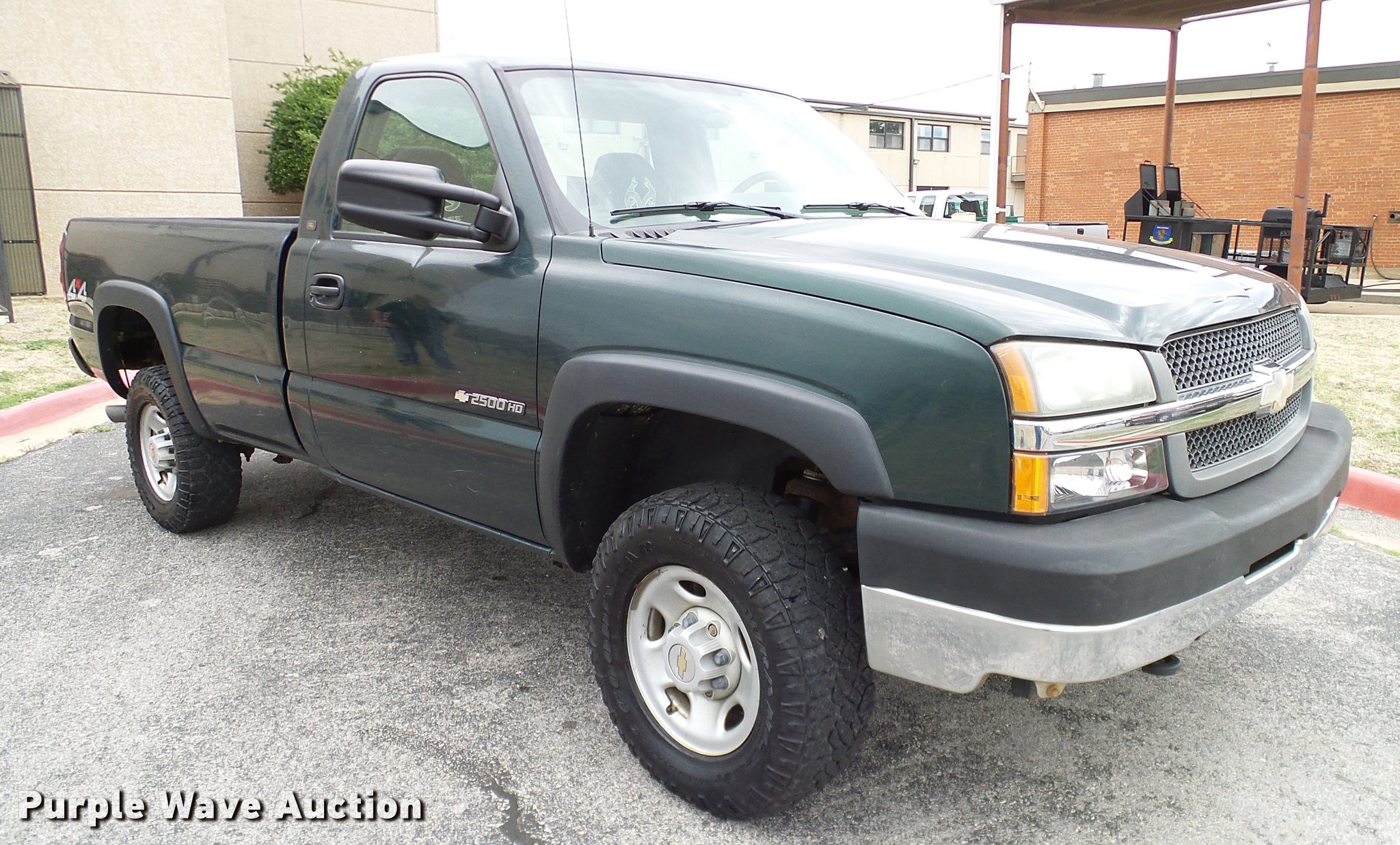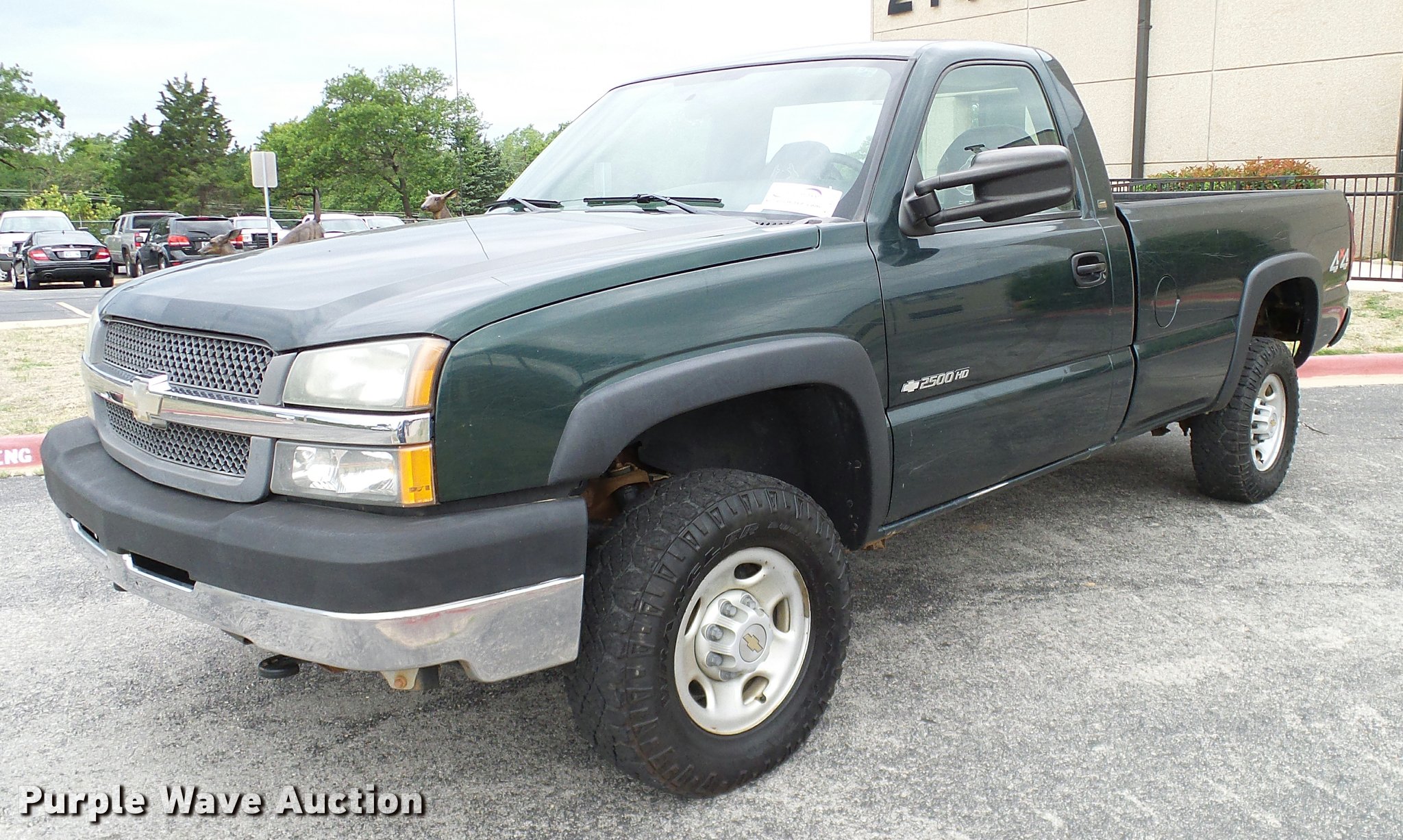 Purple Wave is selling a used 3/4 or 1 Ton Pickup or Van in Oklahoma. This item is a 2004 Chevrolet Silverado 2500HD pickup truck with the following: 110,322 miles on odometer, 8.1L V8 OHV 16V gas engine, Automatic transmission, Four wheel drive, AC and heat, Tilt, Cruise, AM/FM, Manual windows and locks, Vinyl interior, Front tow hooks, Receiver hitch, Trailer wiring, 245/75R16 tires, Non-operational power windows and locks