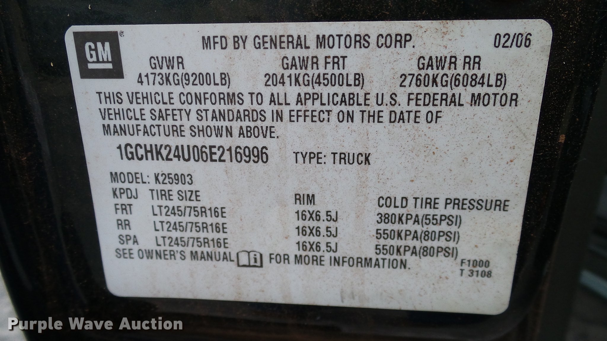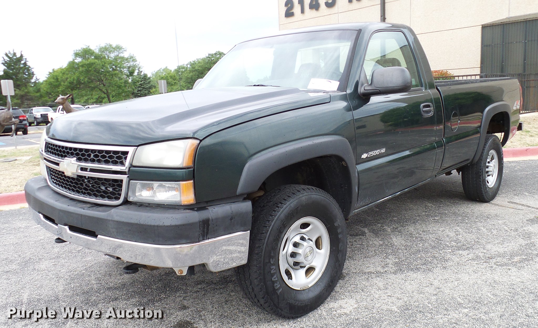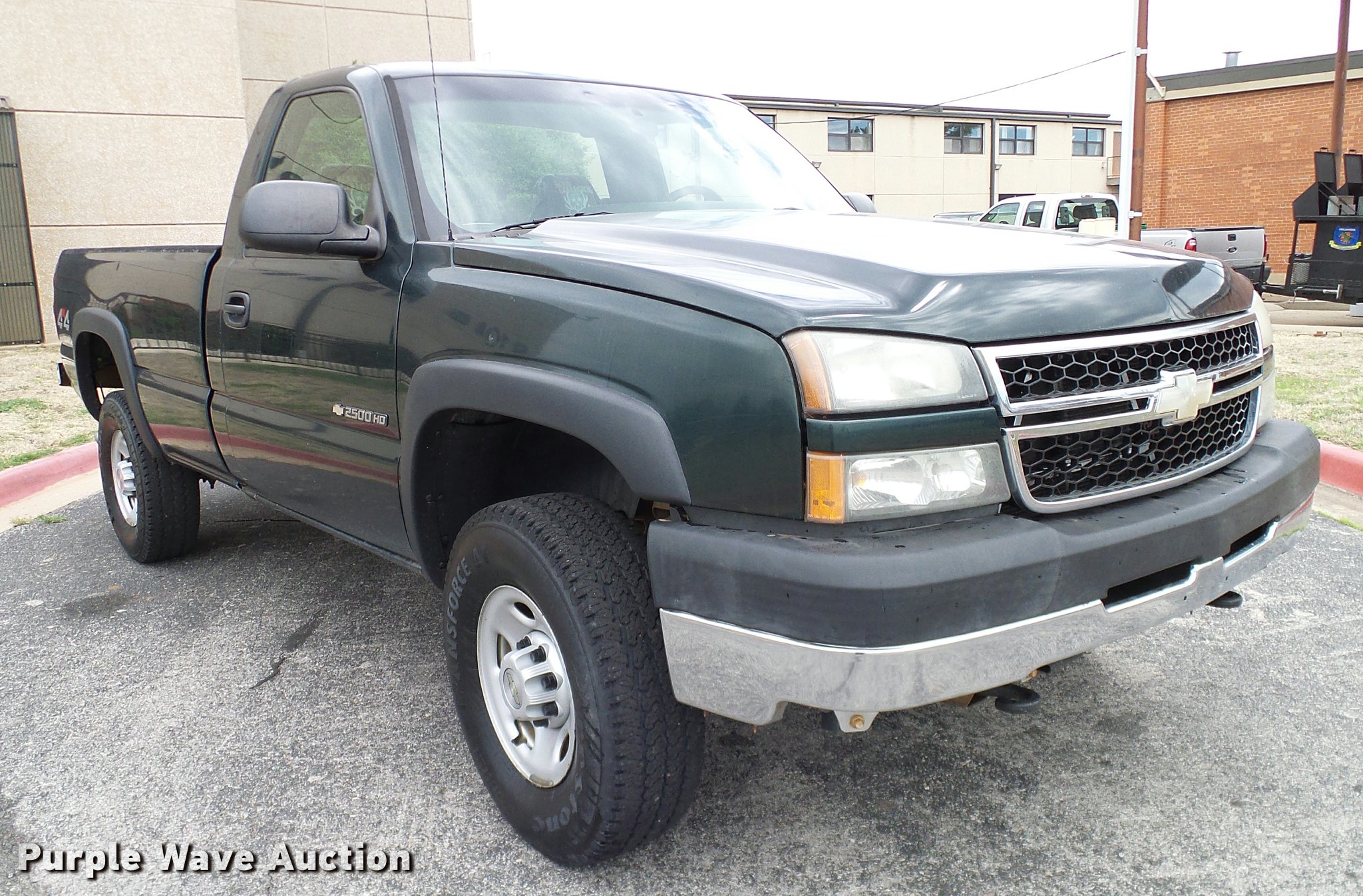 Purple Wave is selling a used 3/4 or 1 Ton Pickup or Van in Oklahoma. This item is a 2006 Chevrolet Silverado 2500HD pickup truck with the following: 105,967 miles on odometer, 6.0L V8 OHV 16V gas engine, Automatic transmission, Four wheel drive, Tilt, Cruise, AM/FM, Power windows, locks, and mirrors, Vinyl interior, Front tow hooks, Receiver hitch, Trailer wiring, 265/75R16 tires