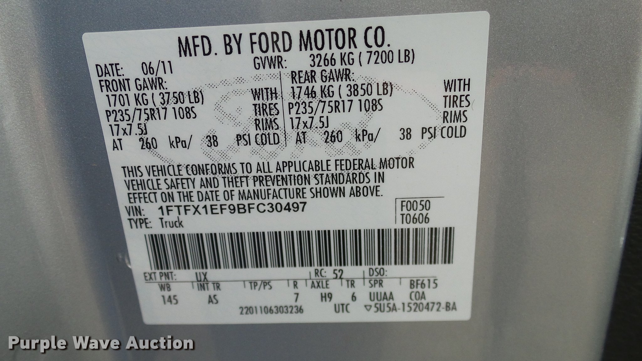 Purple Wave is selling a used 1/2 Ton Pickup or Van in Oklahoma. This item is a 2011 Ford F150 XL SuperCab pickup truck with the following: 96,456 miles on odometer, 5.0L V8 FFV gas engine, Automatic transmission, Four wheel drive, AC and heat, Tilt, Cruise, AM/FM, Power windows, locks, and mirrors, Vinyl interior, Grill guard, Receiver hitch, Trailer wiring, 235/75R17 tires