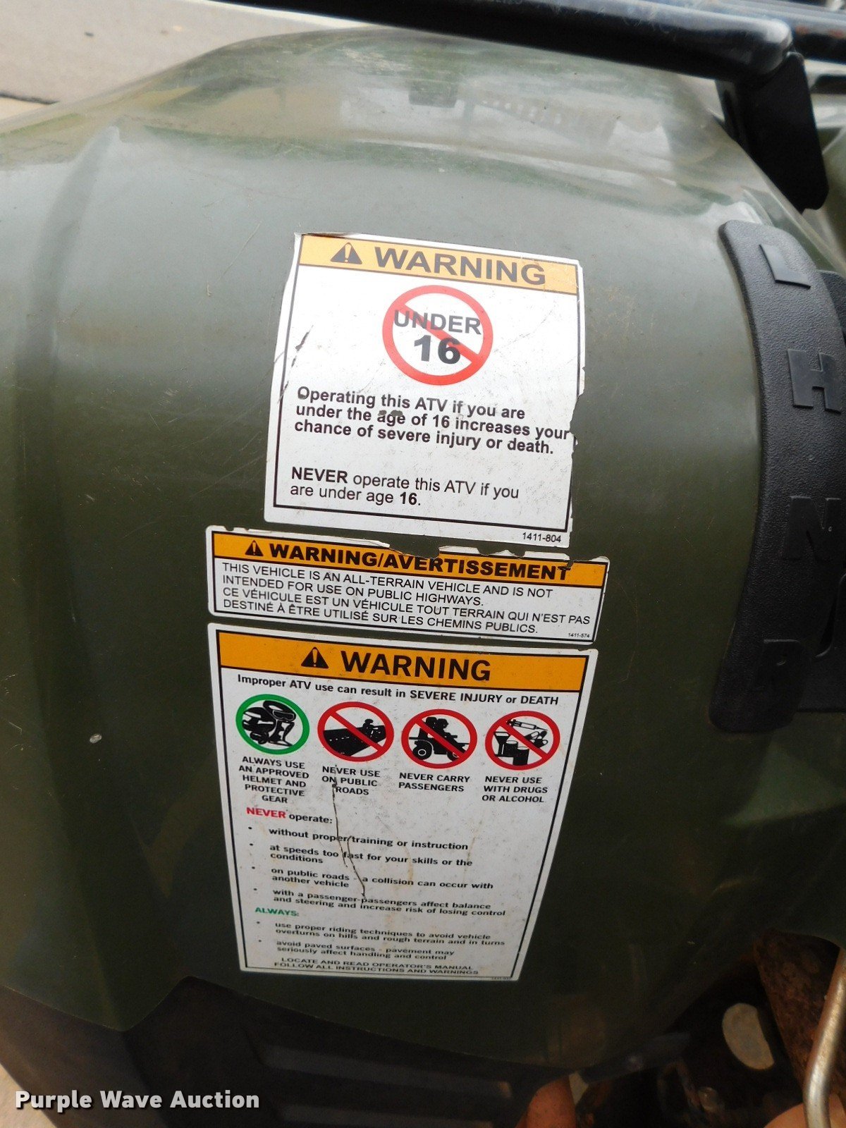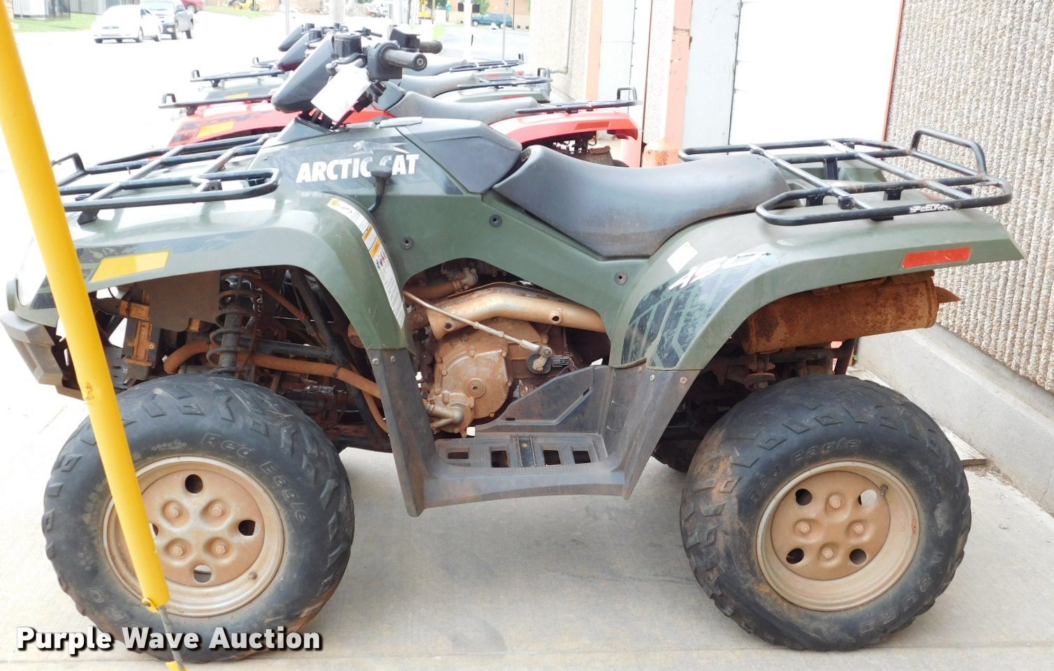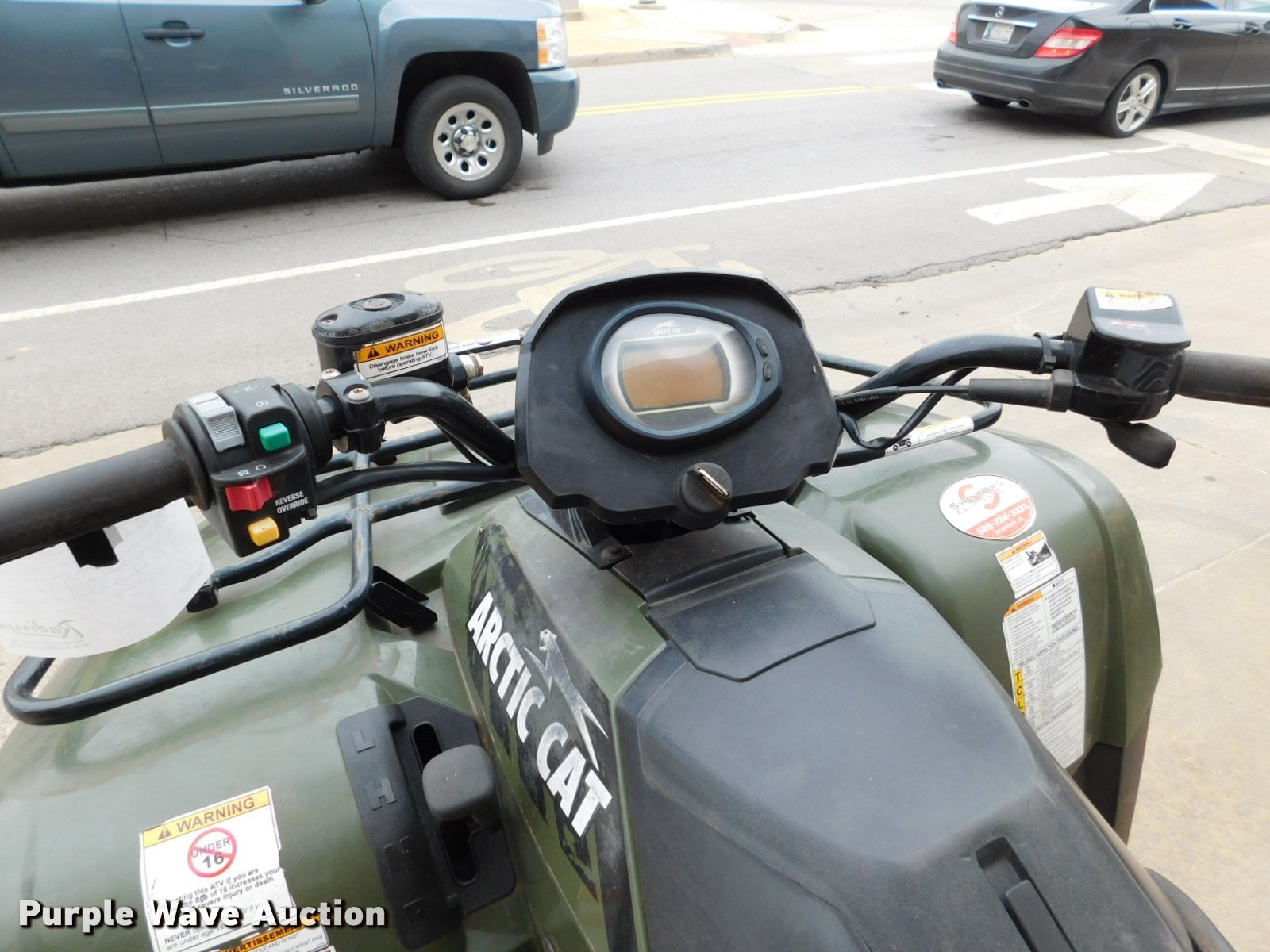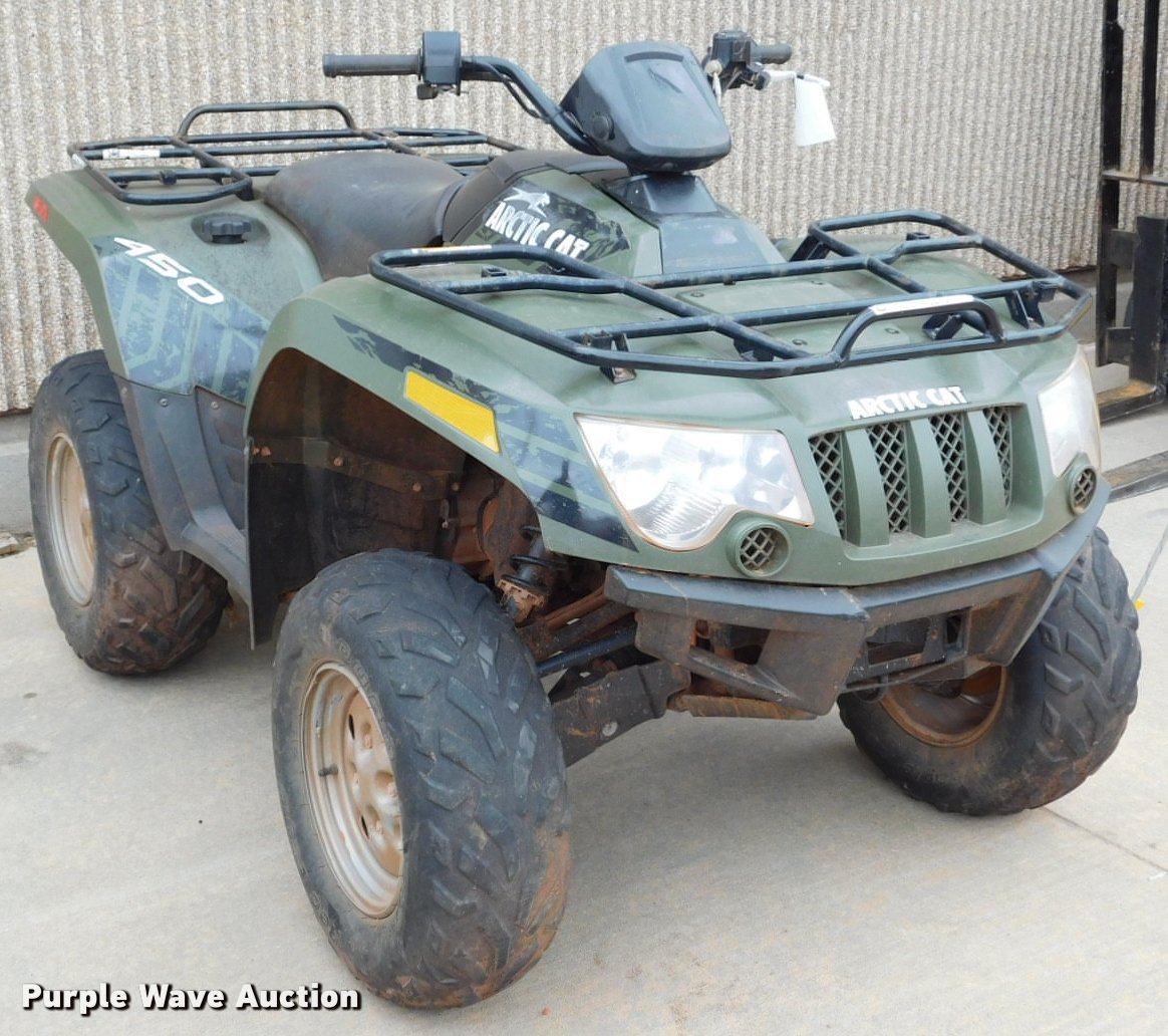 Purple Wave is selling a used ATV in Oklahoma. This item is a 2012 Arctic Cat 450 ATV with the following: 15,606 hours on meter, 450cc single cylinder gas engine, Automatic transmission, Four wheel drive, 25x8-12 front tires, 25x10-12 rear tires, Carburetor issues