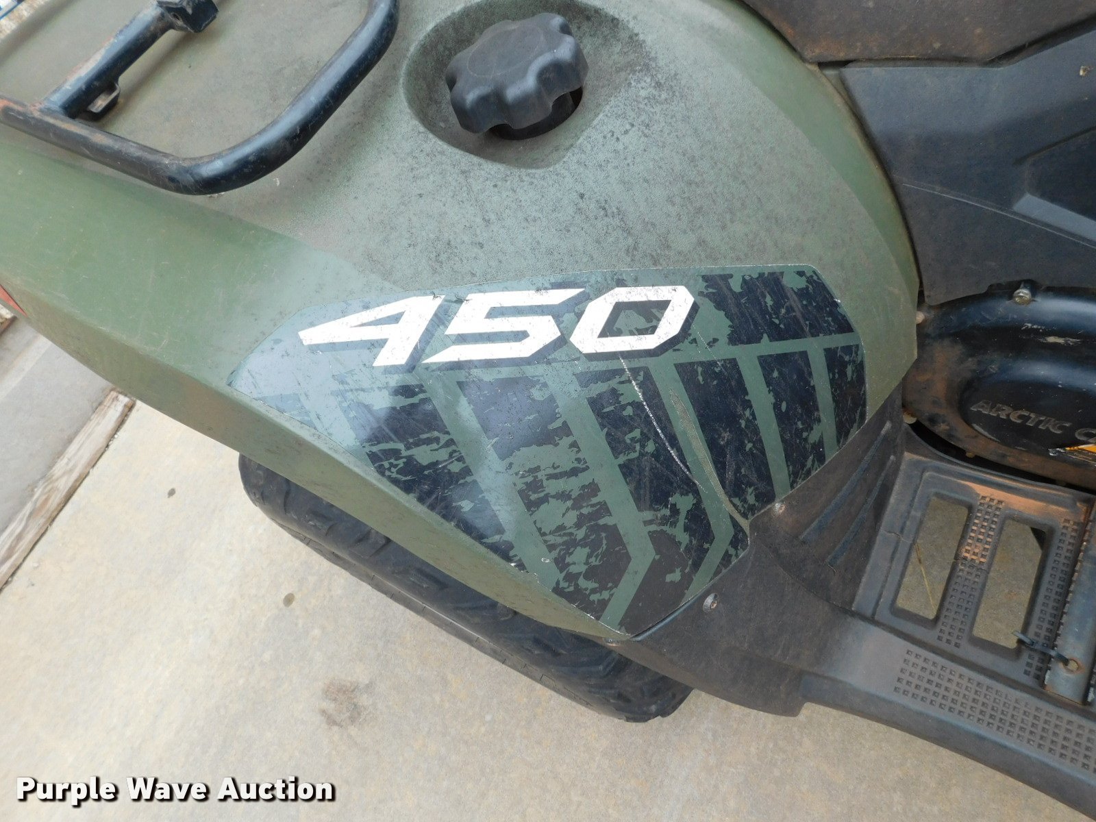 Take a look at this used 2012 Arctic Cat 450 ATV being sold on June 20th, 2017 in the SOLD! June 20 Oklahoma Department of Wildlife Conservation Auction made by Arctic Cat. Take a look at all of the item information below or take a look at similar auctions for ATV and Utility Vehicles.