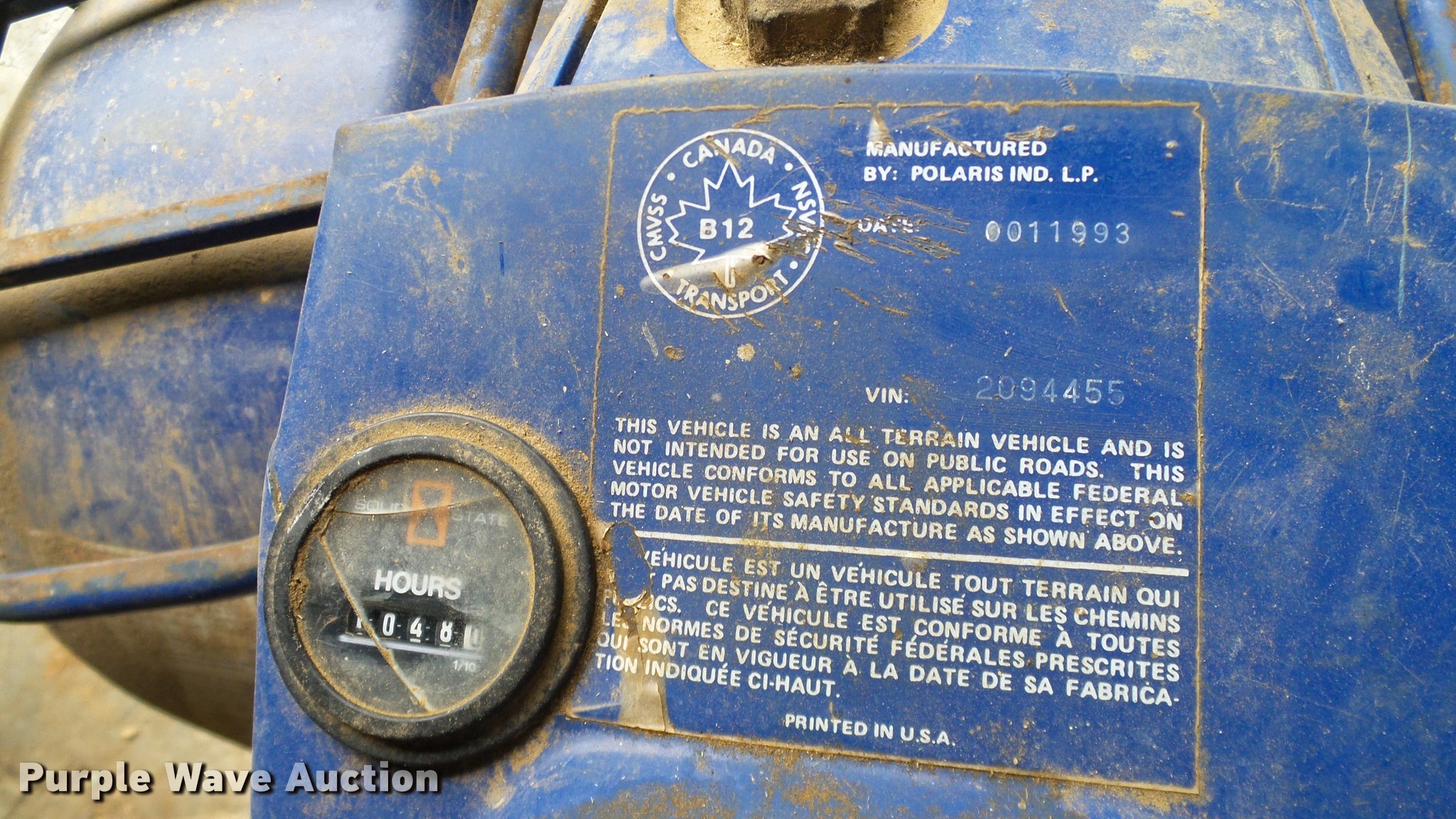 Purple Wave is selling a used ATV in Oklahoma. This item is a 1993 Polaris 250 ATV with the following: 1,048 hours on meter, Gas engine, Automatic transmission, Four wheel drive, Electric start, Recoil start, 22x8-10 front tires, 24x11-10 rear tires, Left tires flat, No battery, Non-operational unit