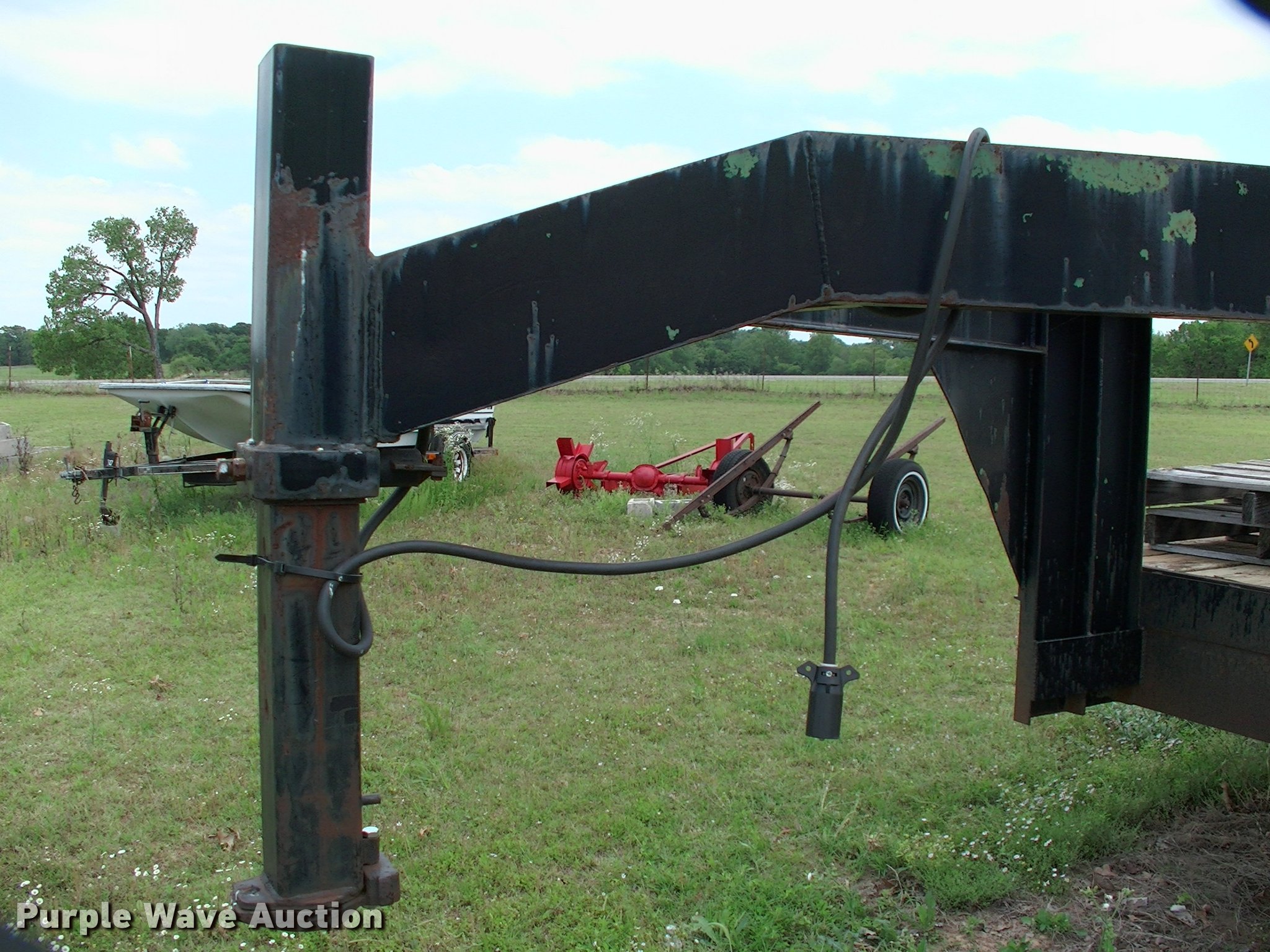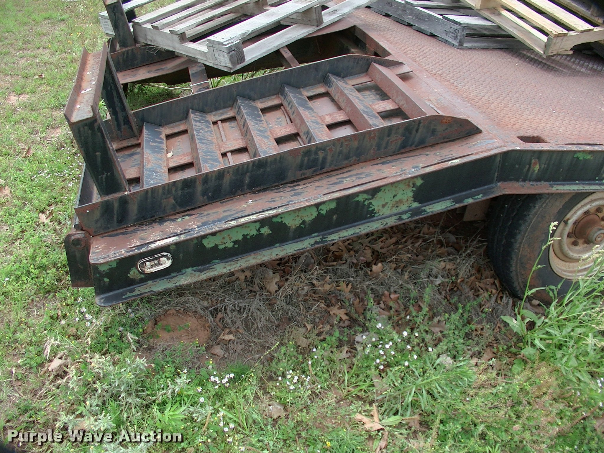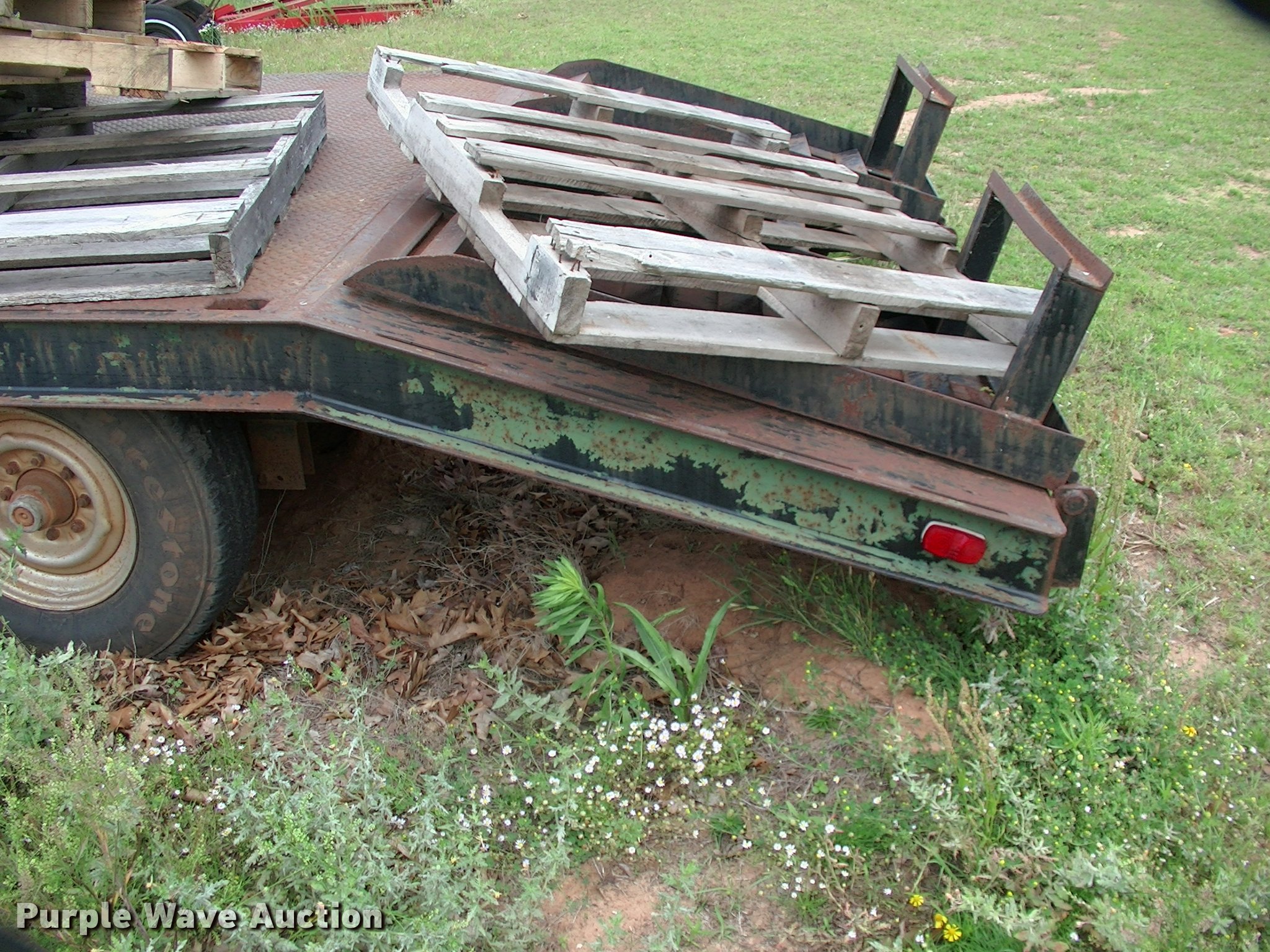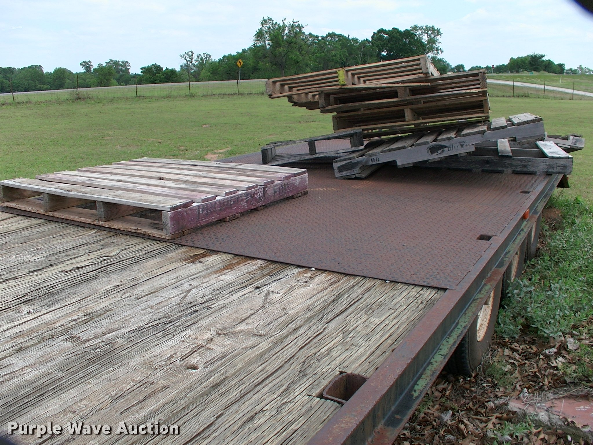 Purple Wave is selling a used Equip. Trailer in Oklahoma. This item is a 2017 SUN equipment trailer with the following: 36'L x 94"W overall, 28'4"L steel and wood deck, 4'L dovetail, 37" side height, 4' x 2' steel ramps, Adjustable neck, Steel construction, Gooseneck hitch, Single leg landing gear, Spring suspension, Electric brakes, Triple axle, Steel wheels, 235/85R16 tires, Pallets not included, Unit# 445582866
