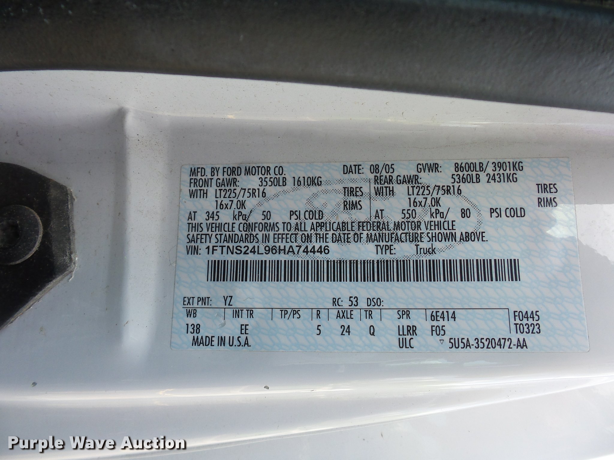 Purple Wave is selling a used 3/4 or 1 Ton Pickup or Van in Missouri. This item is a 2006 Ford E250 Extended van with the following: 217,445 miles on odometer, 5.4L V8 SOHC 16V gas engine, Automatic transmission, AC and heat, Tilt, Cruise, AM/FM/CD, Power windows, locks, and mirrors, Cloth interior, Ladder rack, Rear shelving, 225/75R16 tires