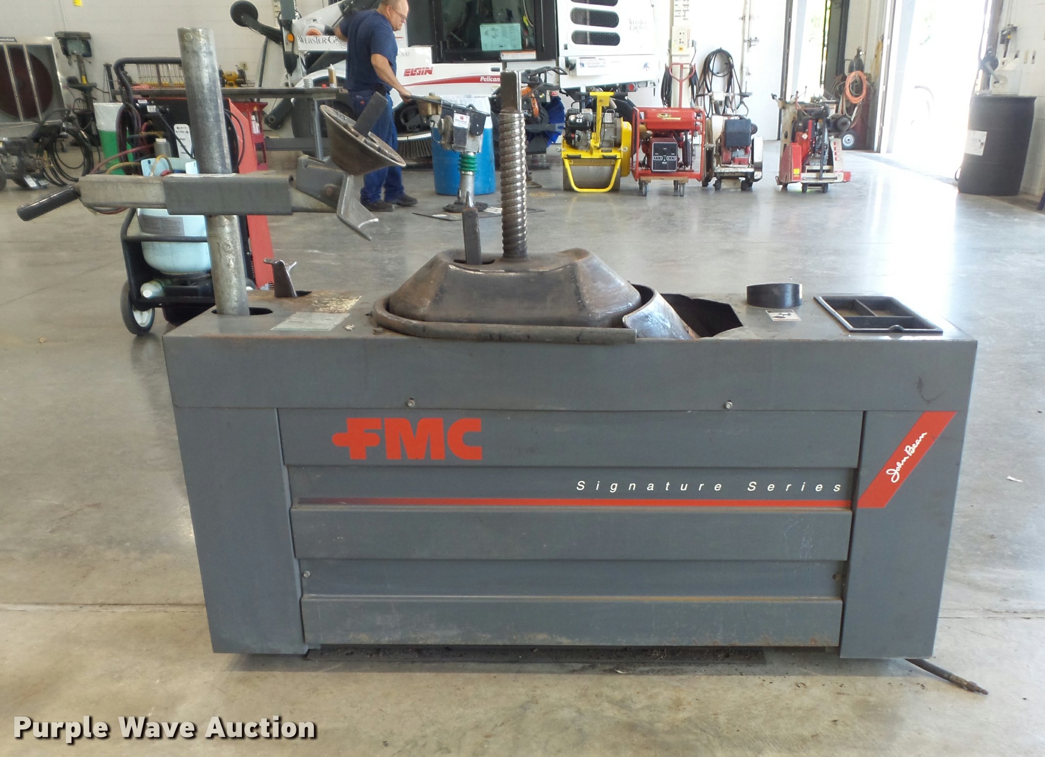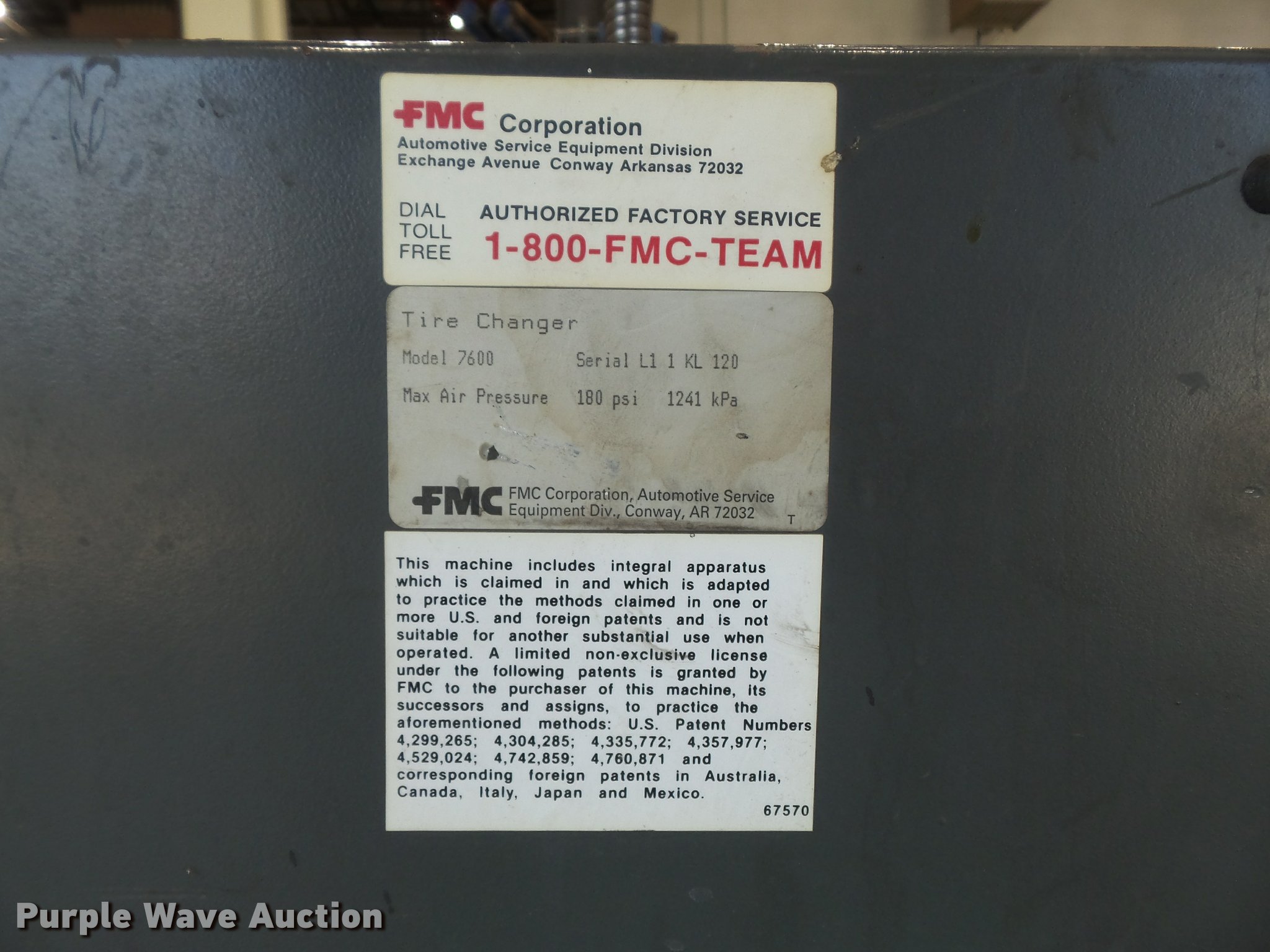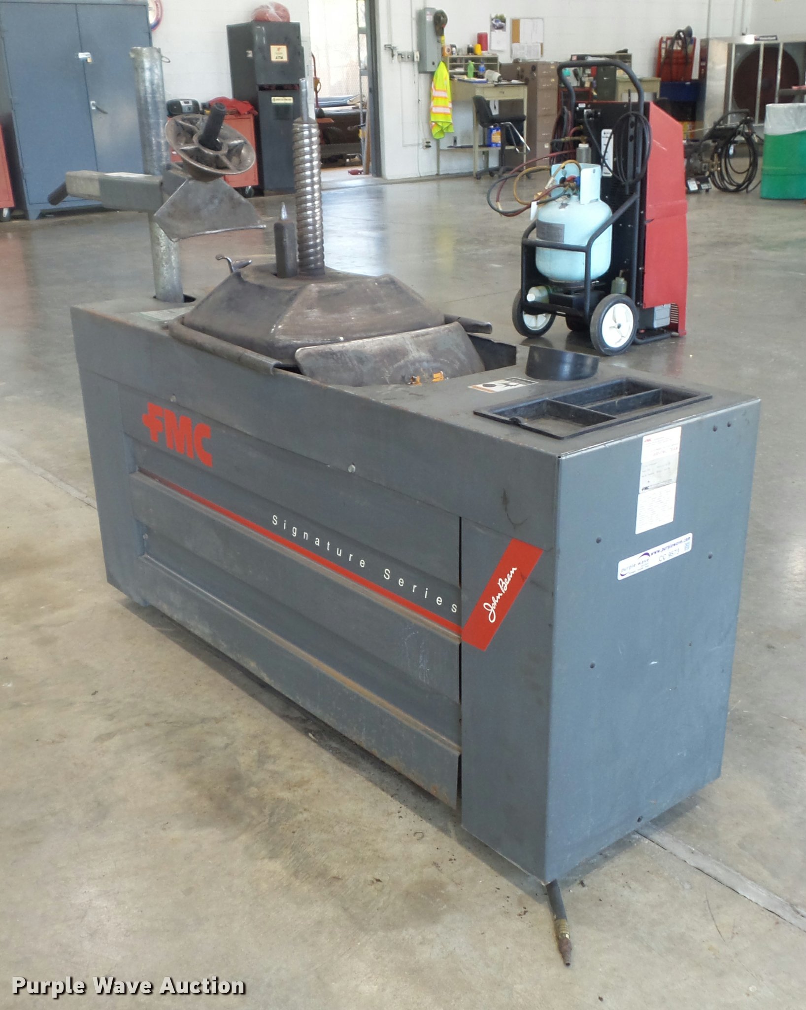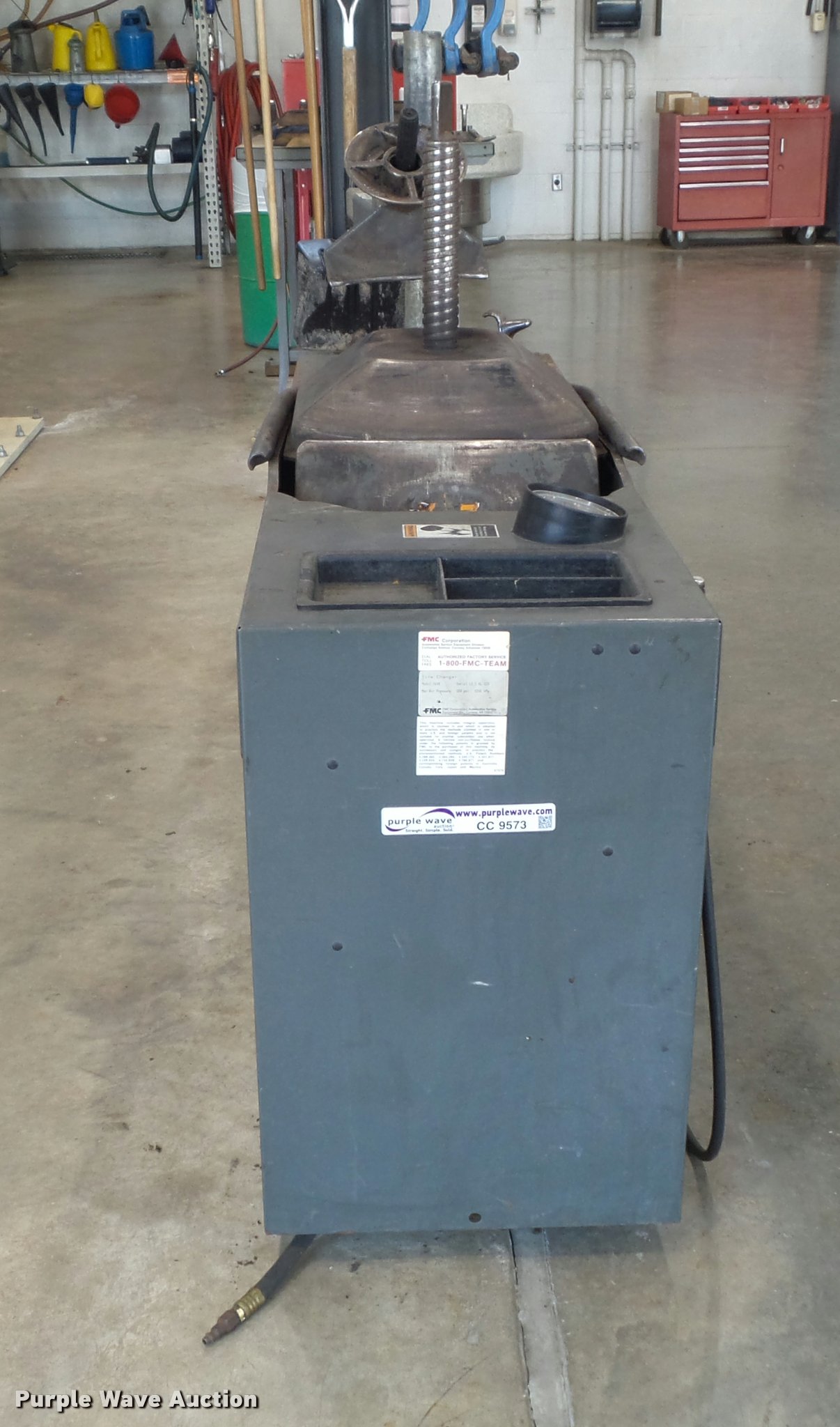 Purple Wave is selling a used Tools in Missouri. This item is a FMC 7600 center post tire machine with the following: Air operated, Serial L11KL120
