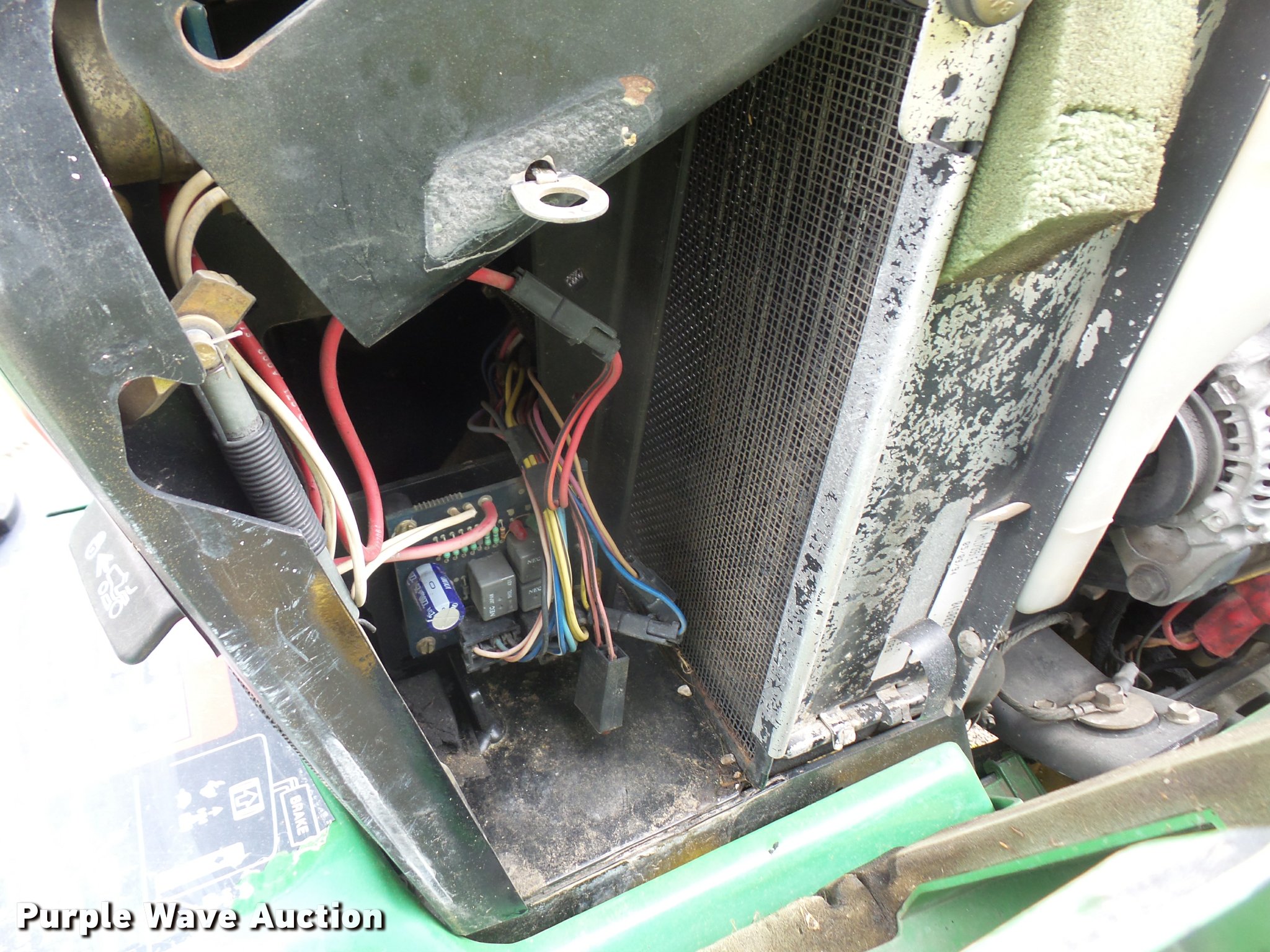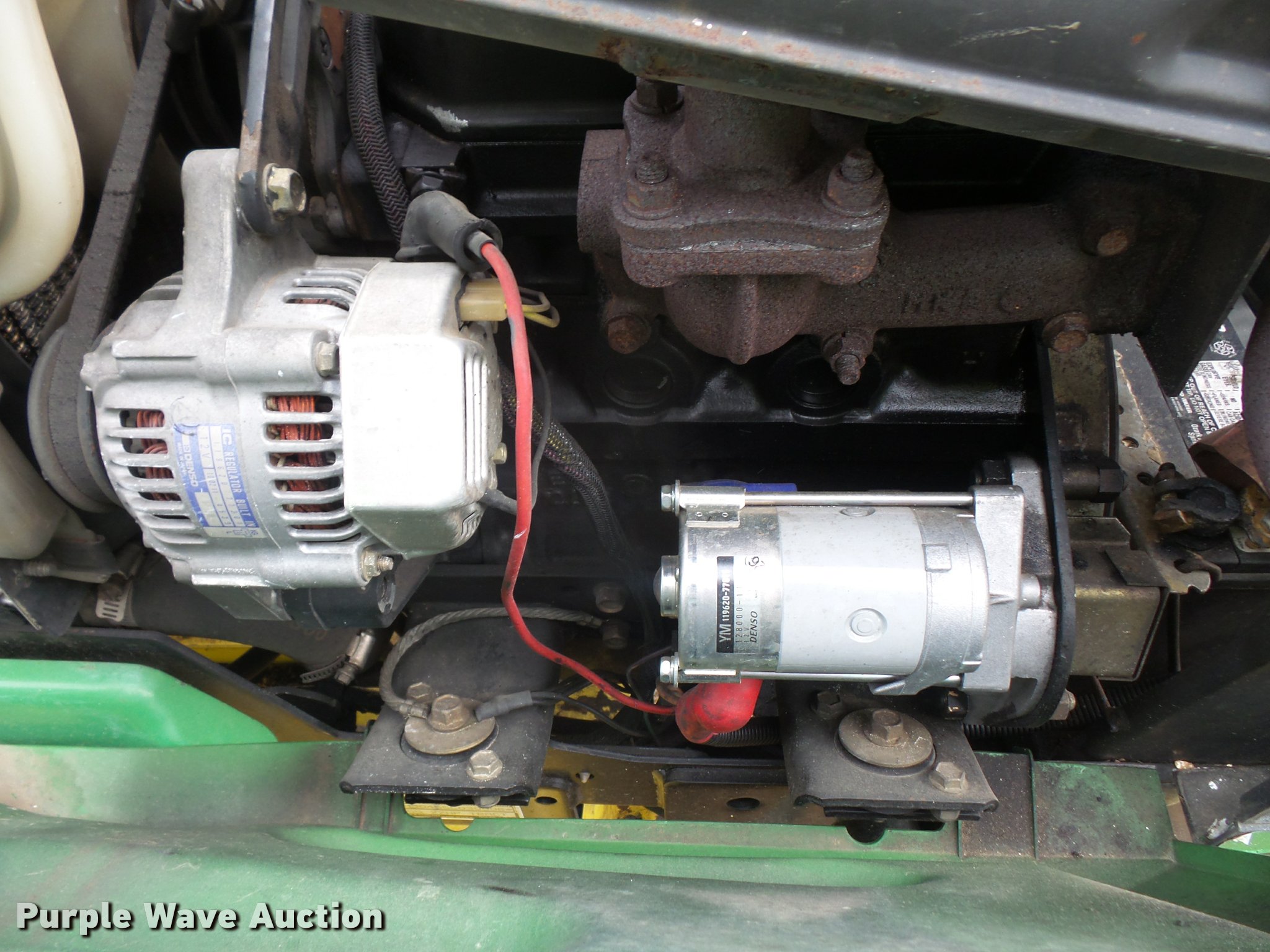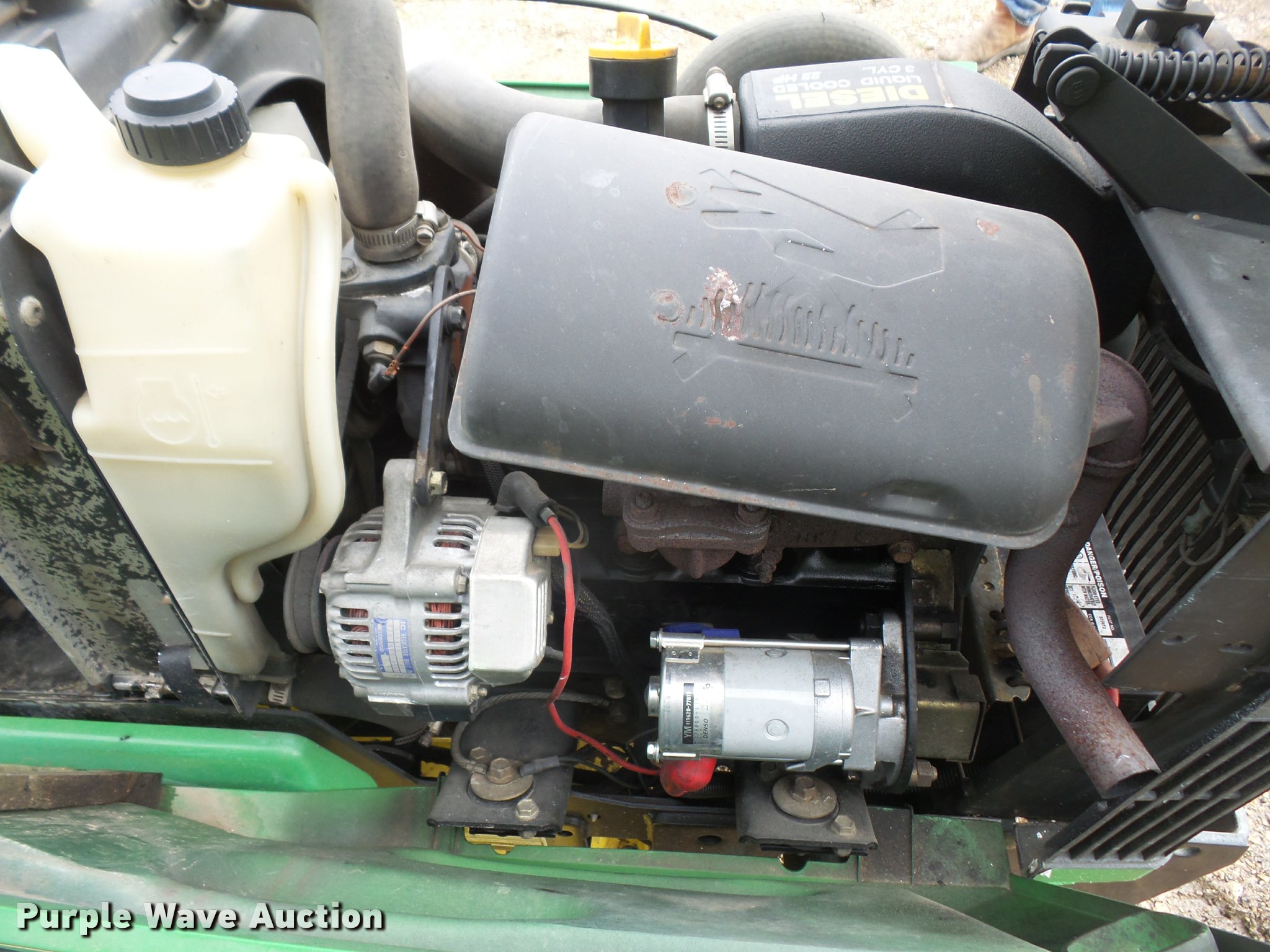Purple Wave is selling a used Lawn Mower in Kansas. This item is a John Deere 455 lawn mower with the following: 1,991 hours on meter, 60" cut, John Deere three cylinder diesel engine, 22 HP, Front hydraulics, 18.00x8.50-8 front tires, 26x12.00-12 rear tires, Hood mount loose, Serial M00455C030006