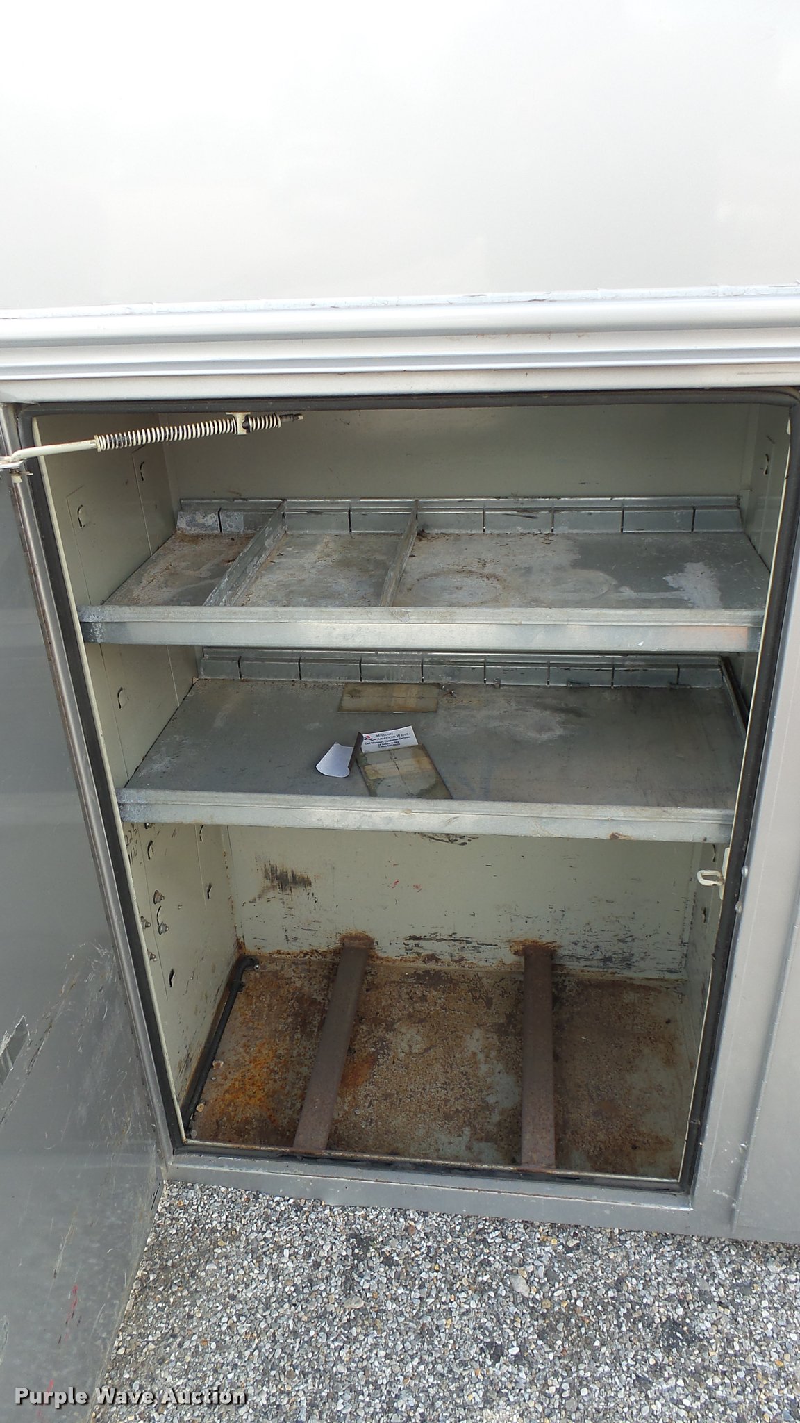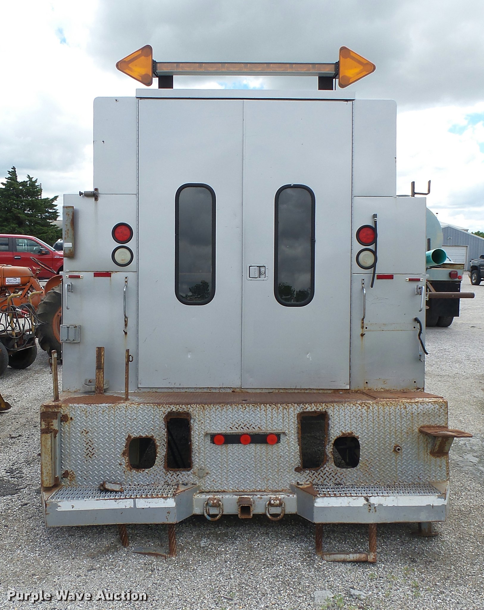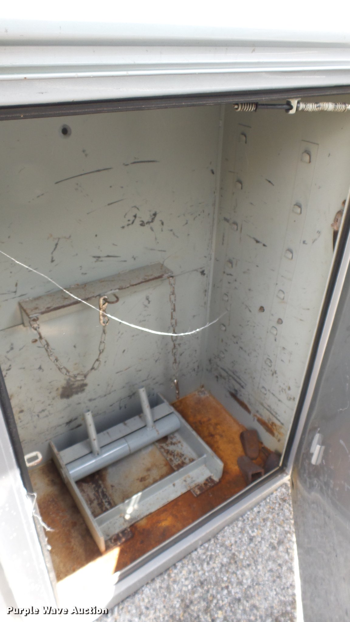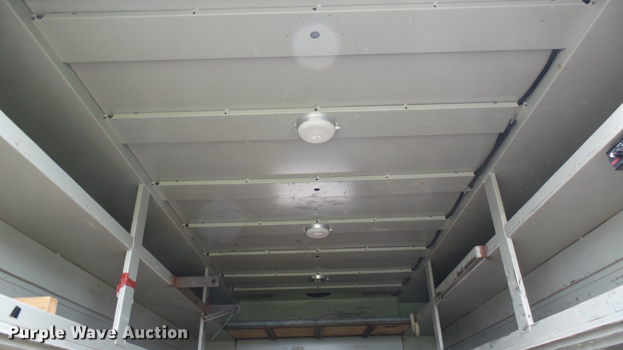 Purple Wave is selling a used Automotive Parts or Acces. in Kansas. This item is a Knapheide steel utility bed with the following: 11'L x 8'W, (8) compartments, Shelving, Rear swing doors, Lights, Receiver hitch