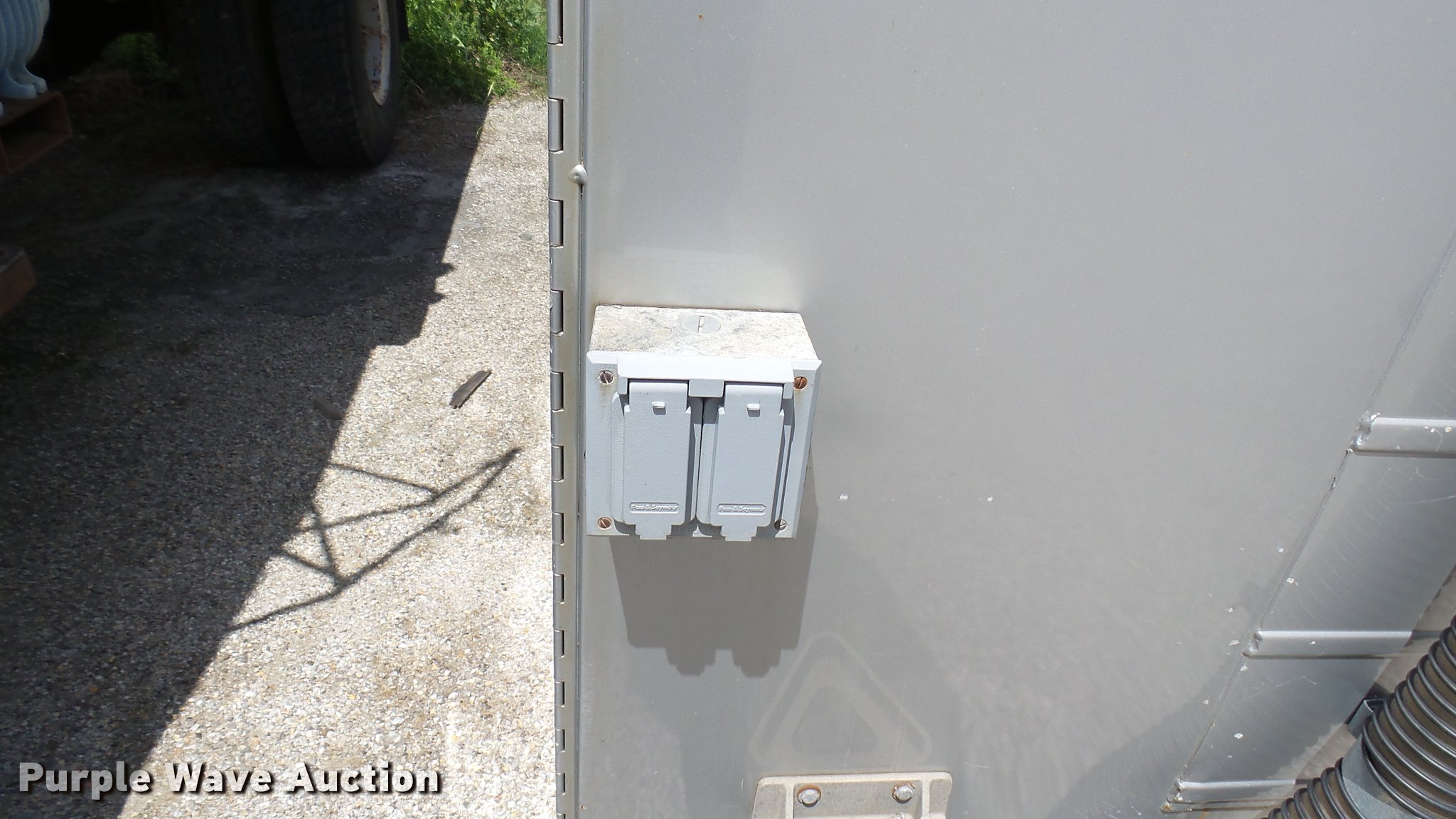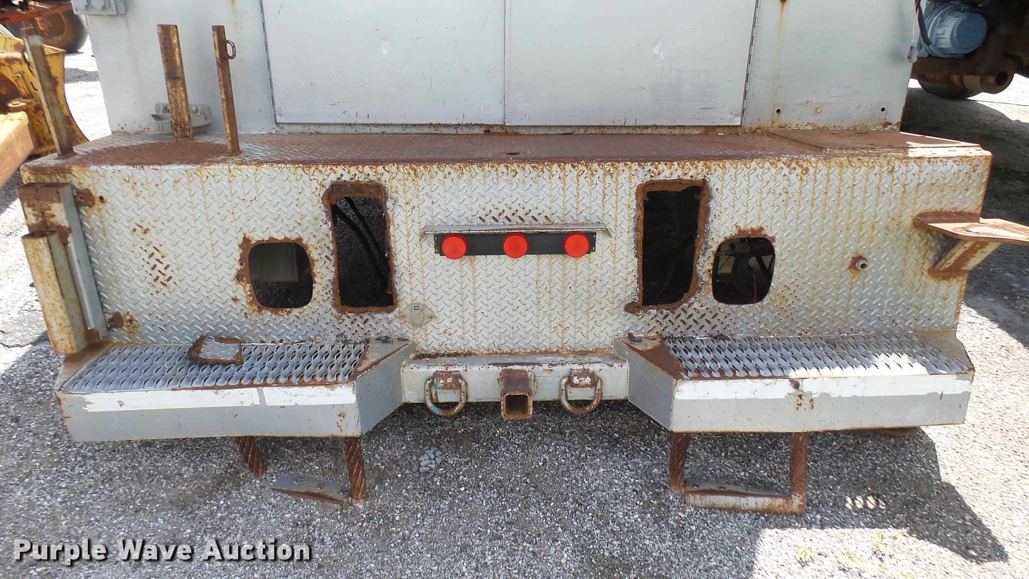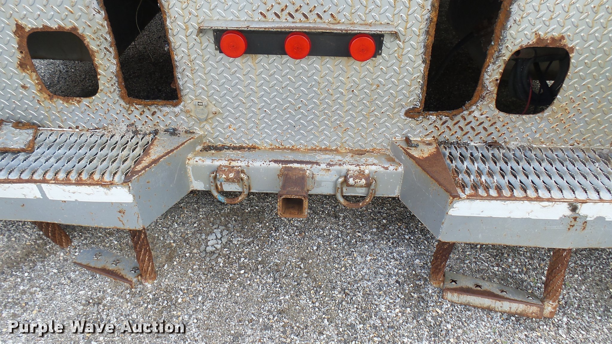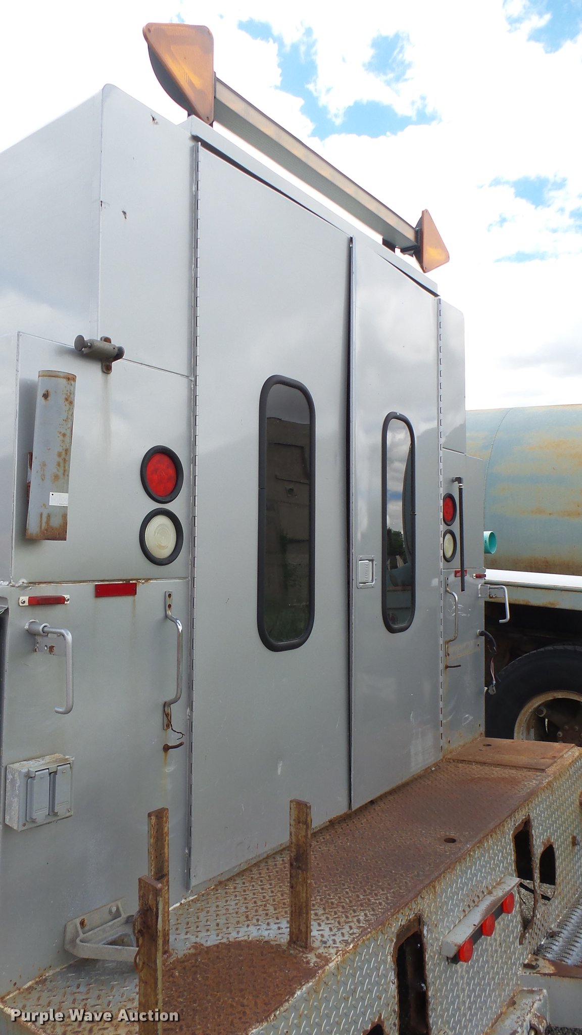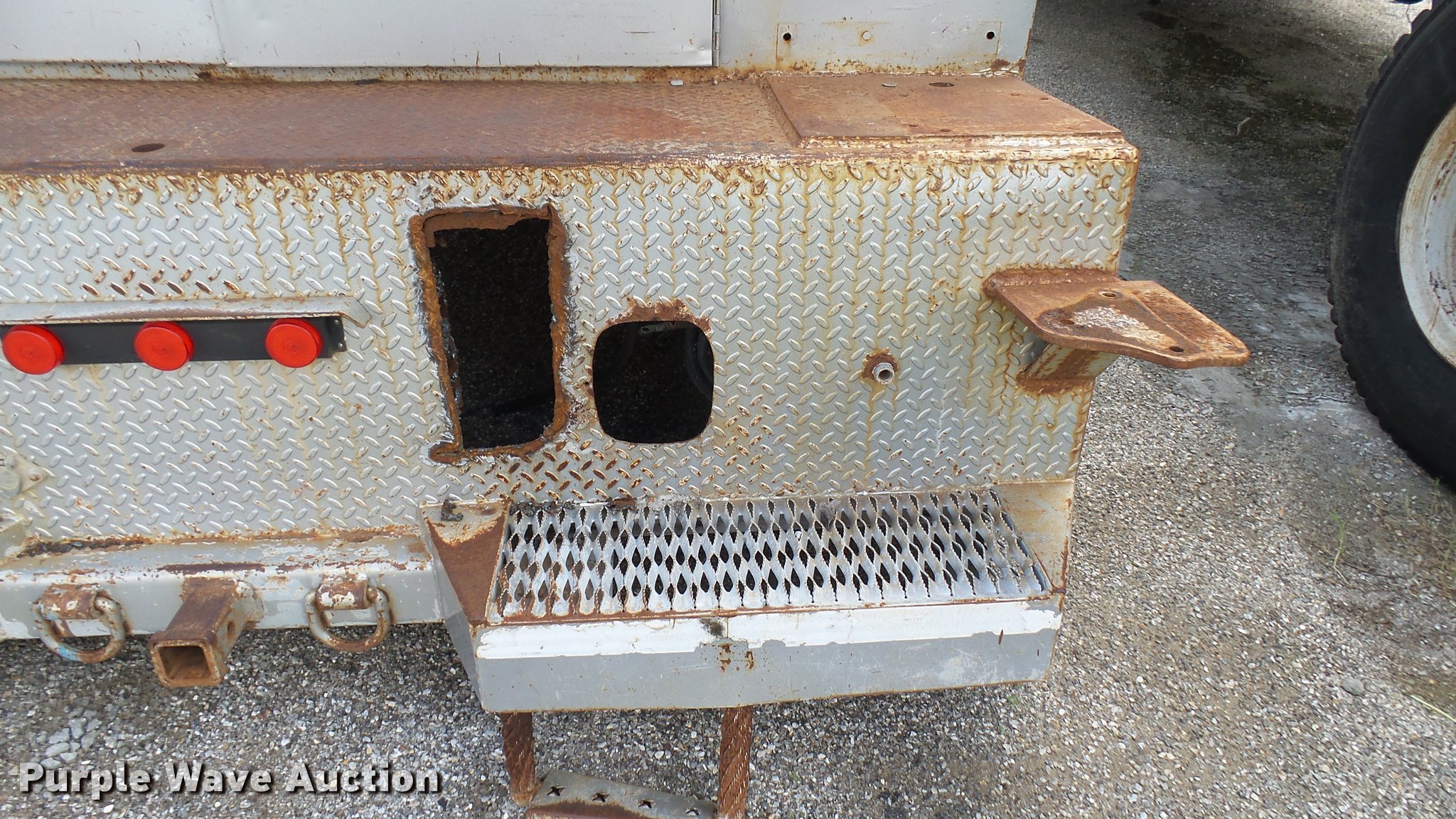 Purple Wave is selling a used Automotive Parts or Acces. in Kansas. This item is a Knapheide steel utility bed with the following: 11'L x 8'W, (8) compartments, Shelving, Rear swing doors, Lights, Receiver hitch