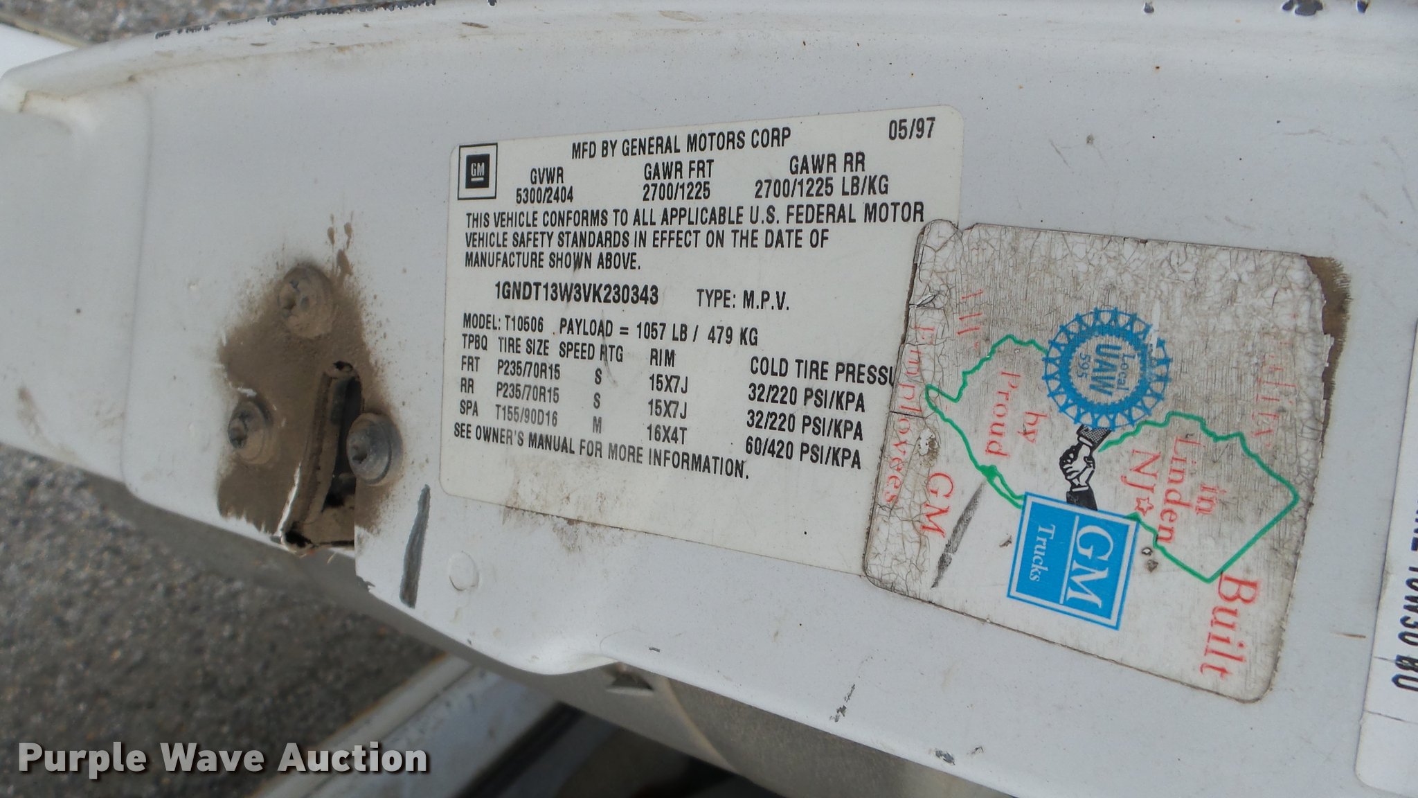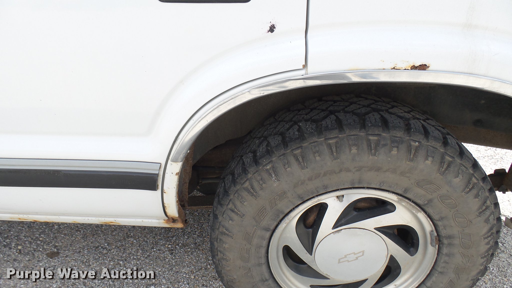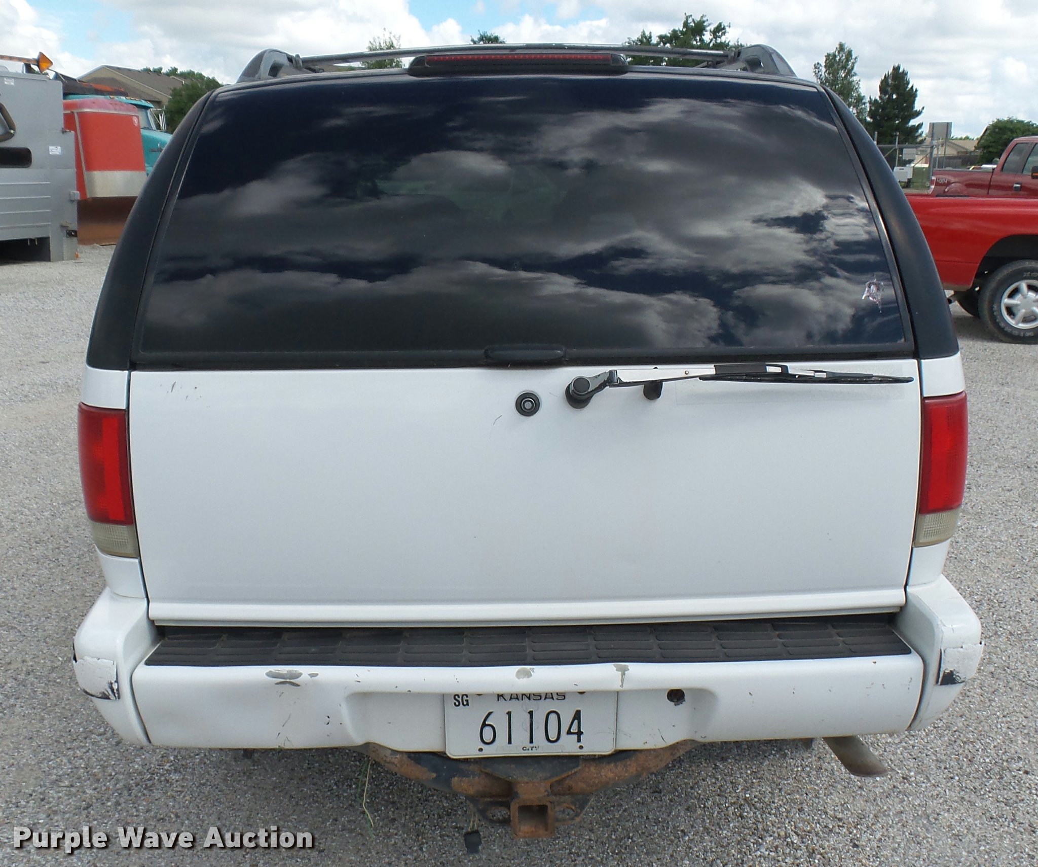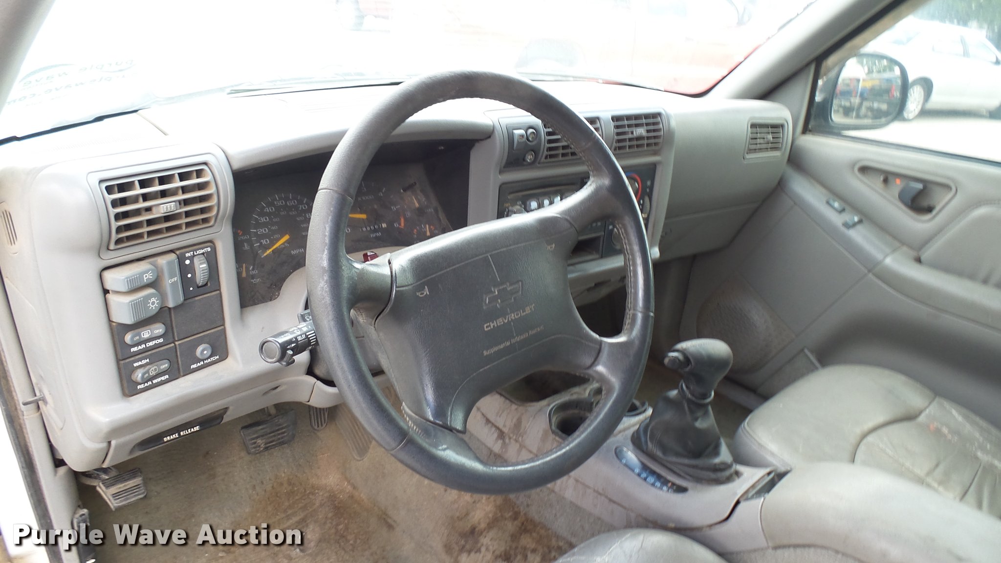 Purple Wave is selling a used Passenger Vehicle in Kansas. This item is a 1997 Chevrolet Blazer SUV with the following: 199,567 miles on odometer, 4.3L V6 OHV 12V gas engine, Automatic transmission, Four wheel drive, AC and heat, AM/FM/CD, Power windows, locks, and mirrors, Leather interior, Front tow hooks, Receiver hitch, 235/75R15 tires, Rust, Seats damaged, Deals will be removed prior to auction