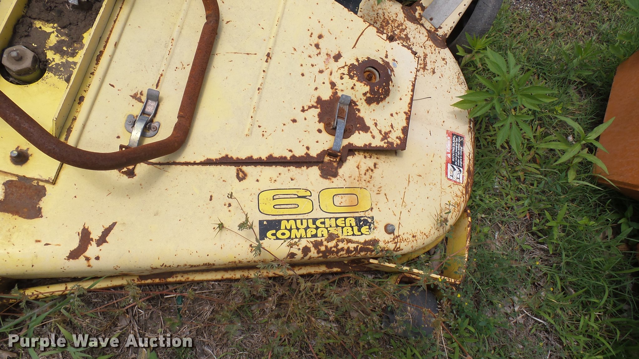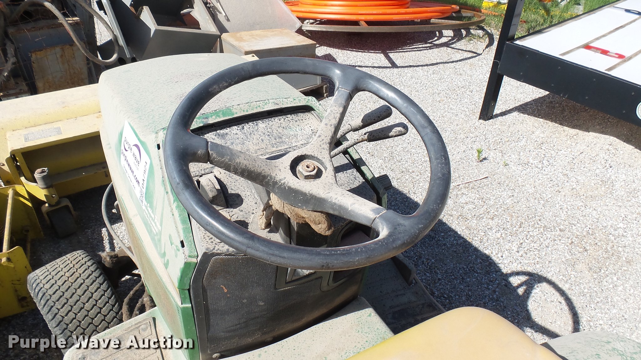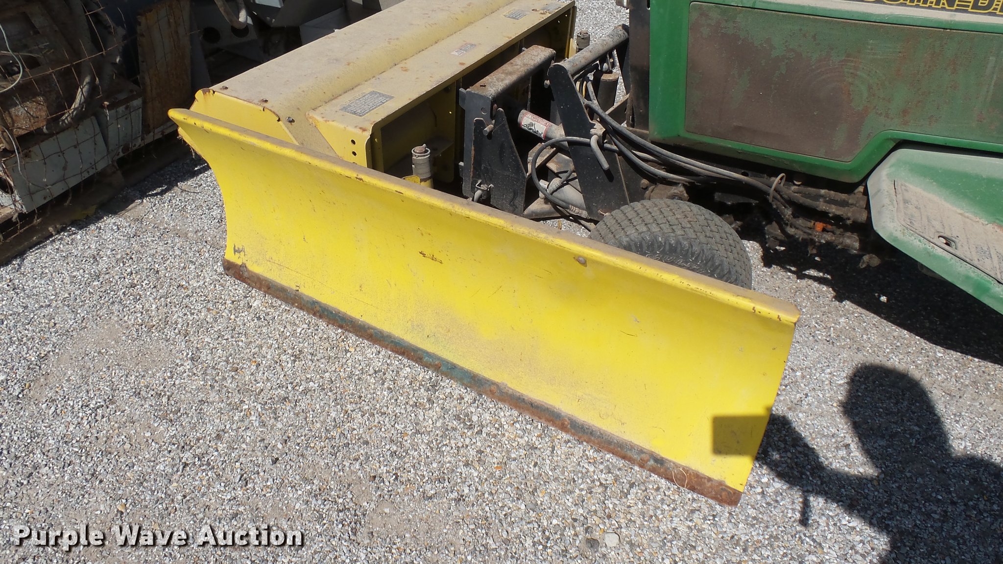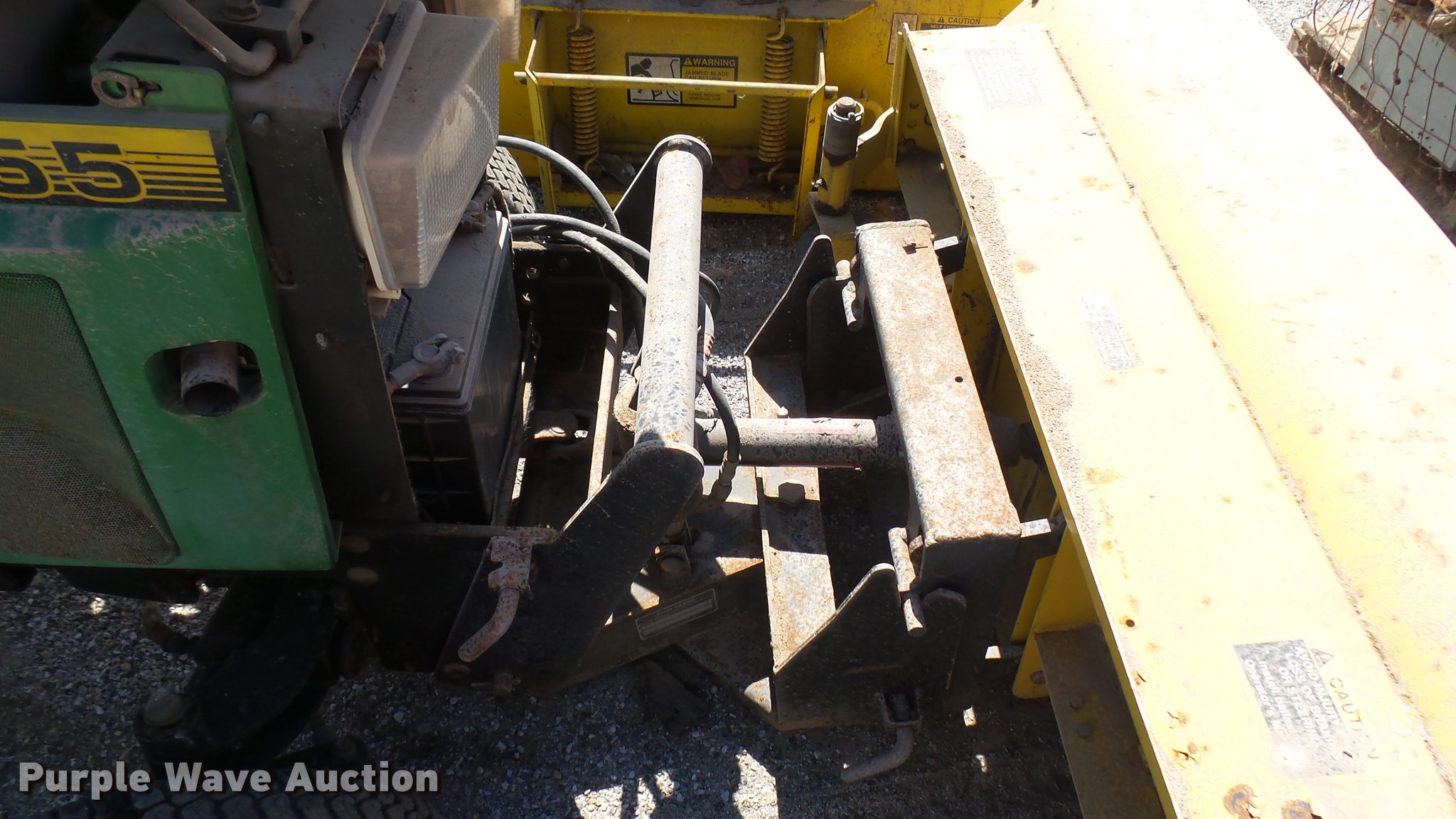 Purple Wave is selling a used Lawn Mower in Kansas. This item is a John Deere 455 lawn mower with the following: 60" cut, Three cylinder diesel engine, All wheel steer, Lights, 55"W blade, 52"W broom, 23x10.50-12 tires, Leaks oil
