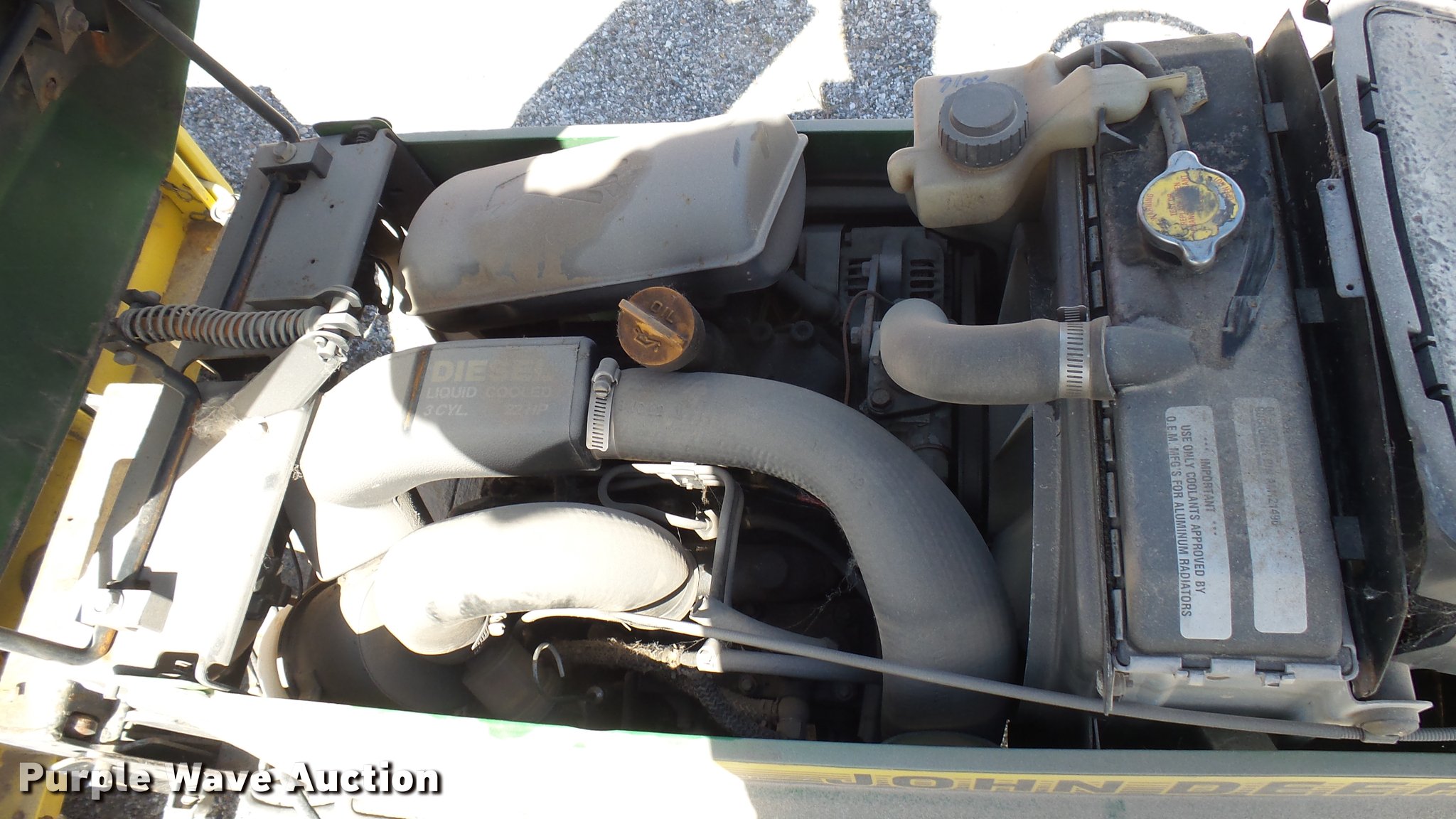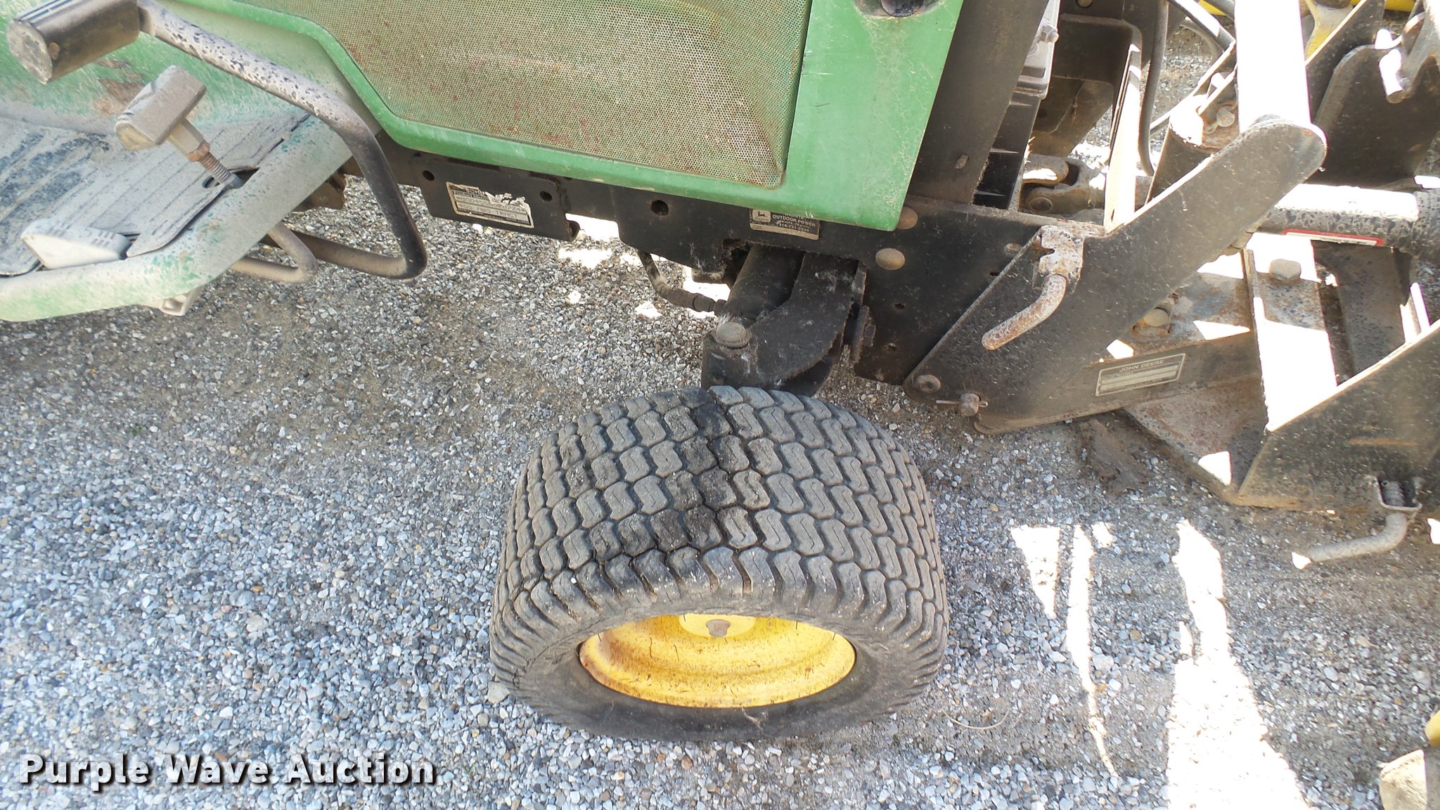 John Deere 455 lawn mower. 60" cut, Three cylinder diesel engine, All wheel steer, Lights, 55"W blade, 52"W broom, 23x10.50-12 tires, Leaks oil. City of Haysville. Haysville, KS 67060