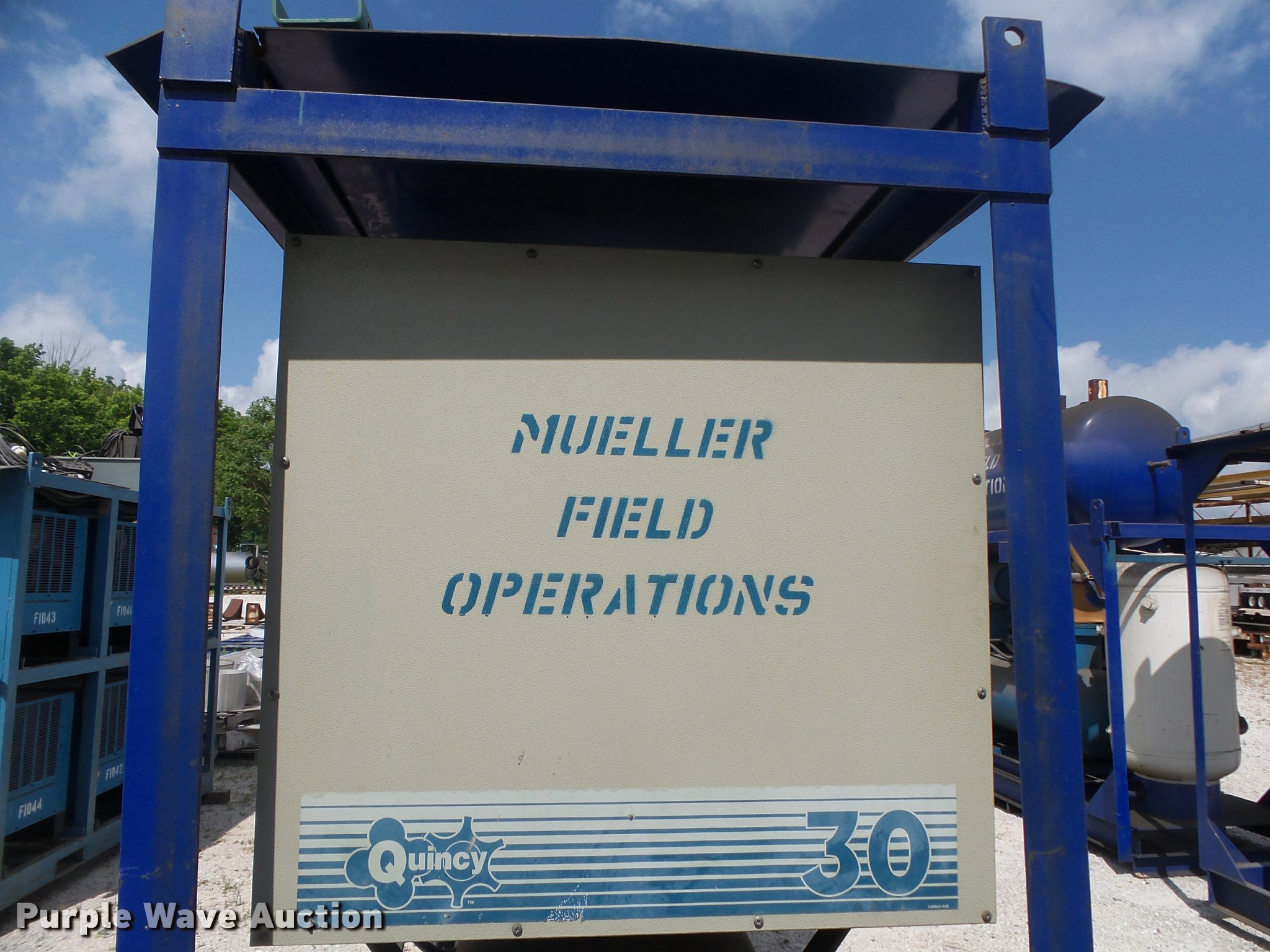 Purple Wave is selling a used Air Compressor in Missouri. This item is a 1999 Quincy QMT30ACA32SF air compressor with the following: 30 HP electric motor, 480 volt, Three phase, Auto dual control, 200 psi tank, 9'L x 42"W x 7'H, Serial 86476, Unit# F1090
