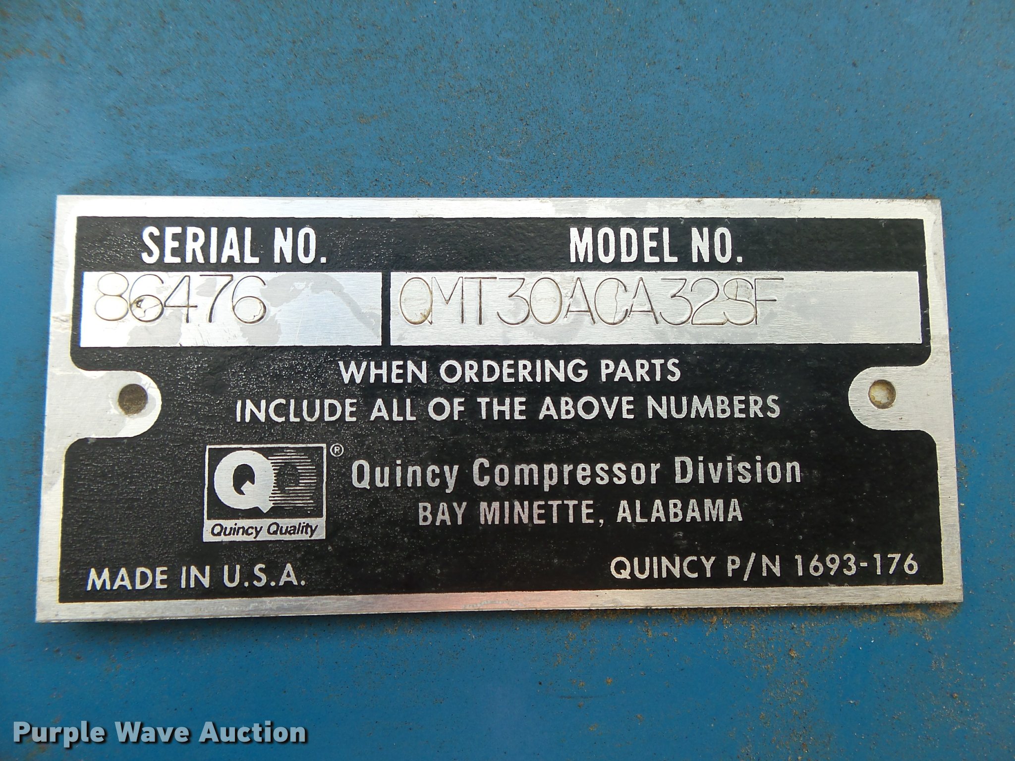 1999 Quincy QMT30ACA32SF air compressor has sold in Springfield, Missouri for $440. Item DA9190 sold on June 21st, 2017.