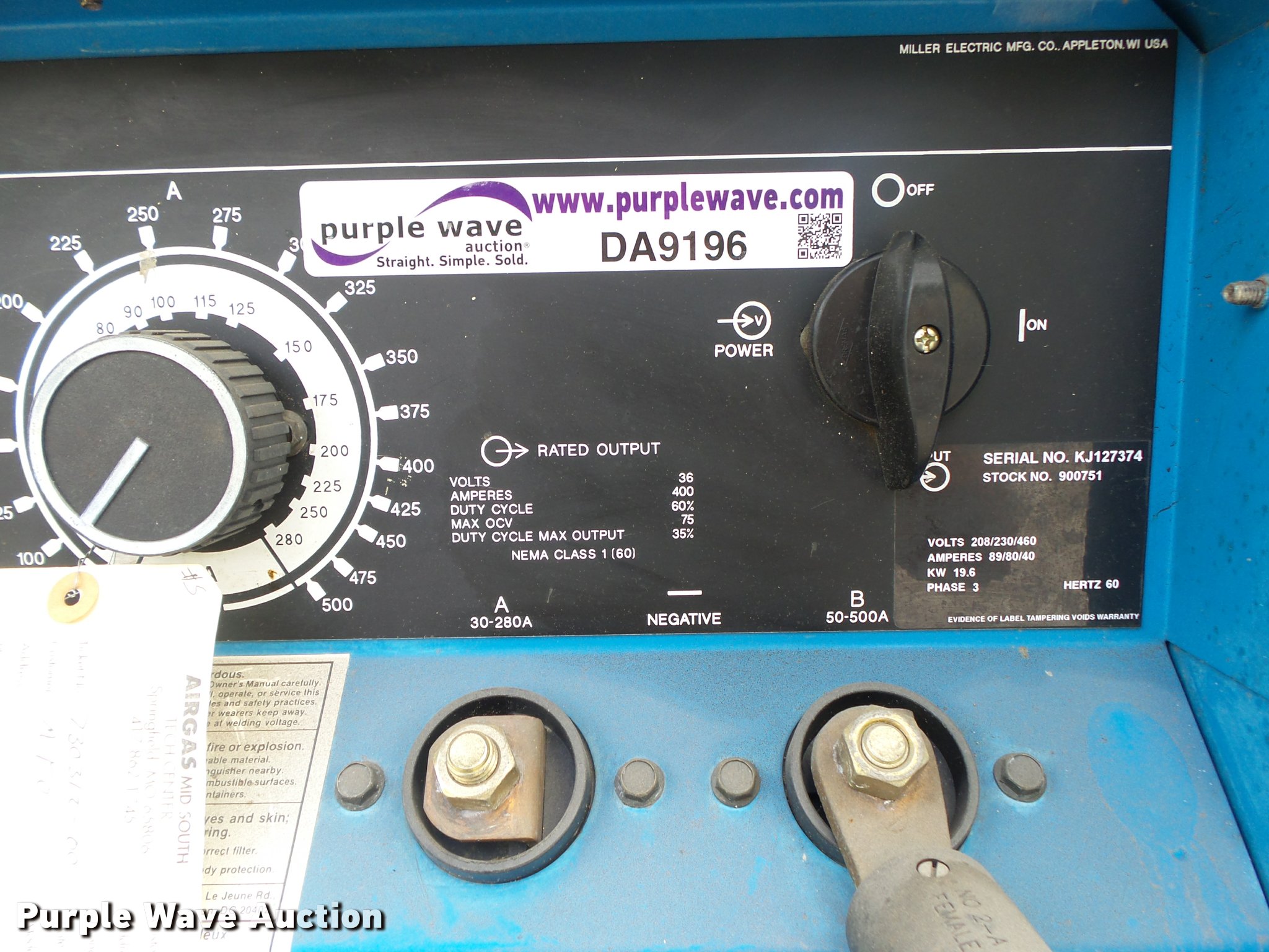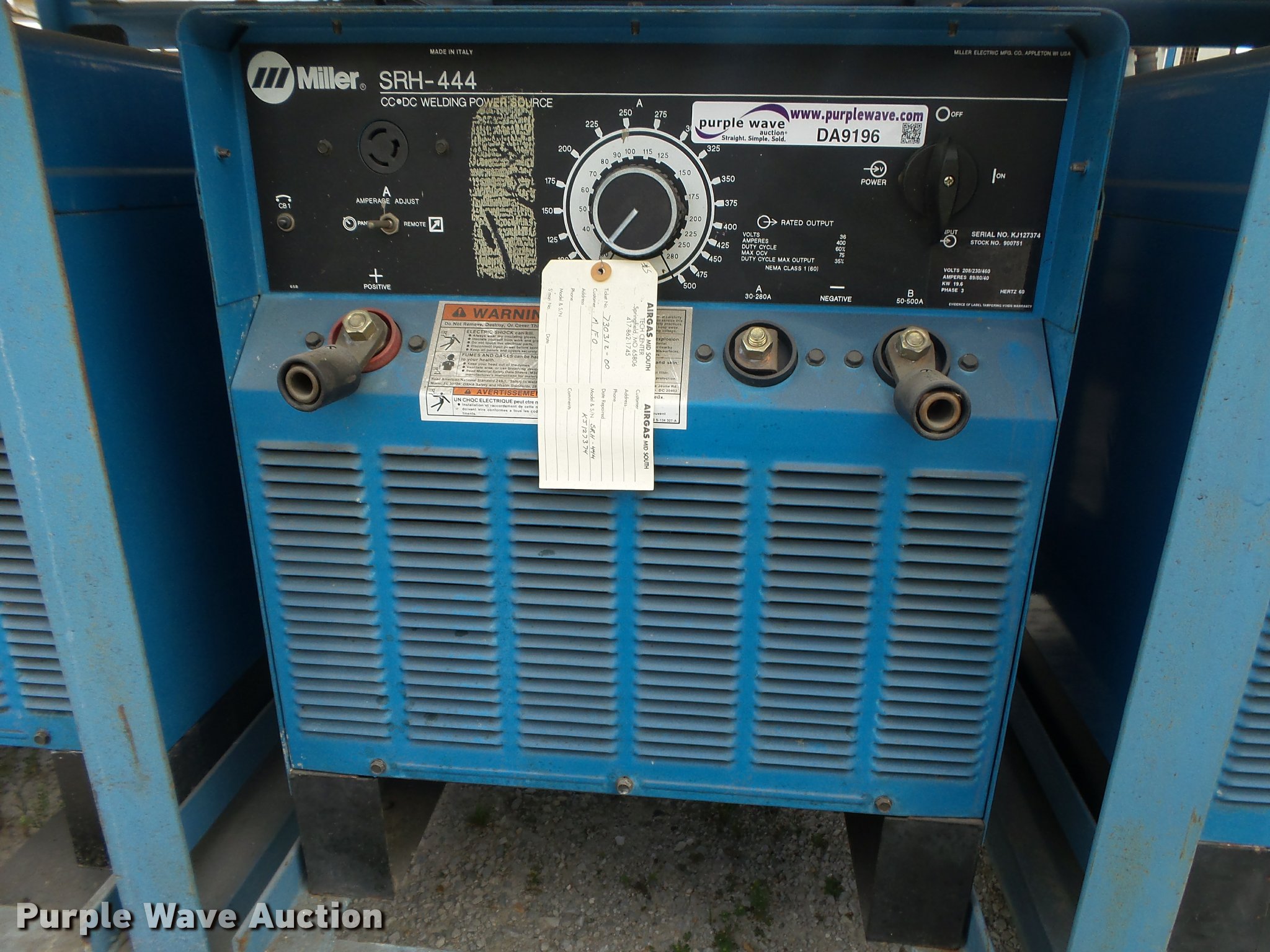 Purple Wave is selling a used Welder (Manual) in Missouri. This item is a Miller SRH444 welder with the following: Three phase, 208/230/460V, Control box, 60 percent duty cycle, DC welding source, Stick, Arc gouge, Serial KJ127374, Unit# F1042