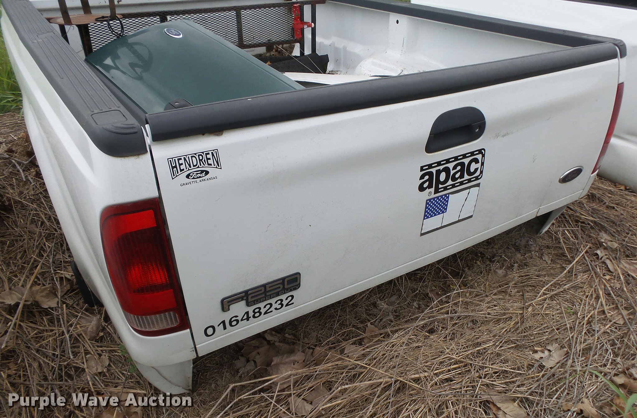 Purple Wave is selling a used Automotive Parts or Acces. in Arkansas. This item is a Ford F250 pickup truck bed with the following: 65" x 8' I.D., Tailgate, Bumper, Ford F150 tailgate