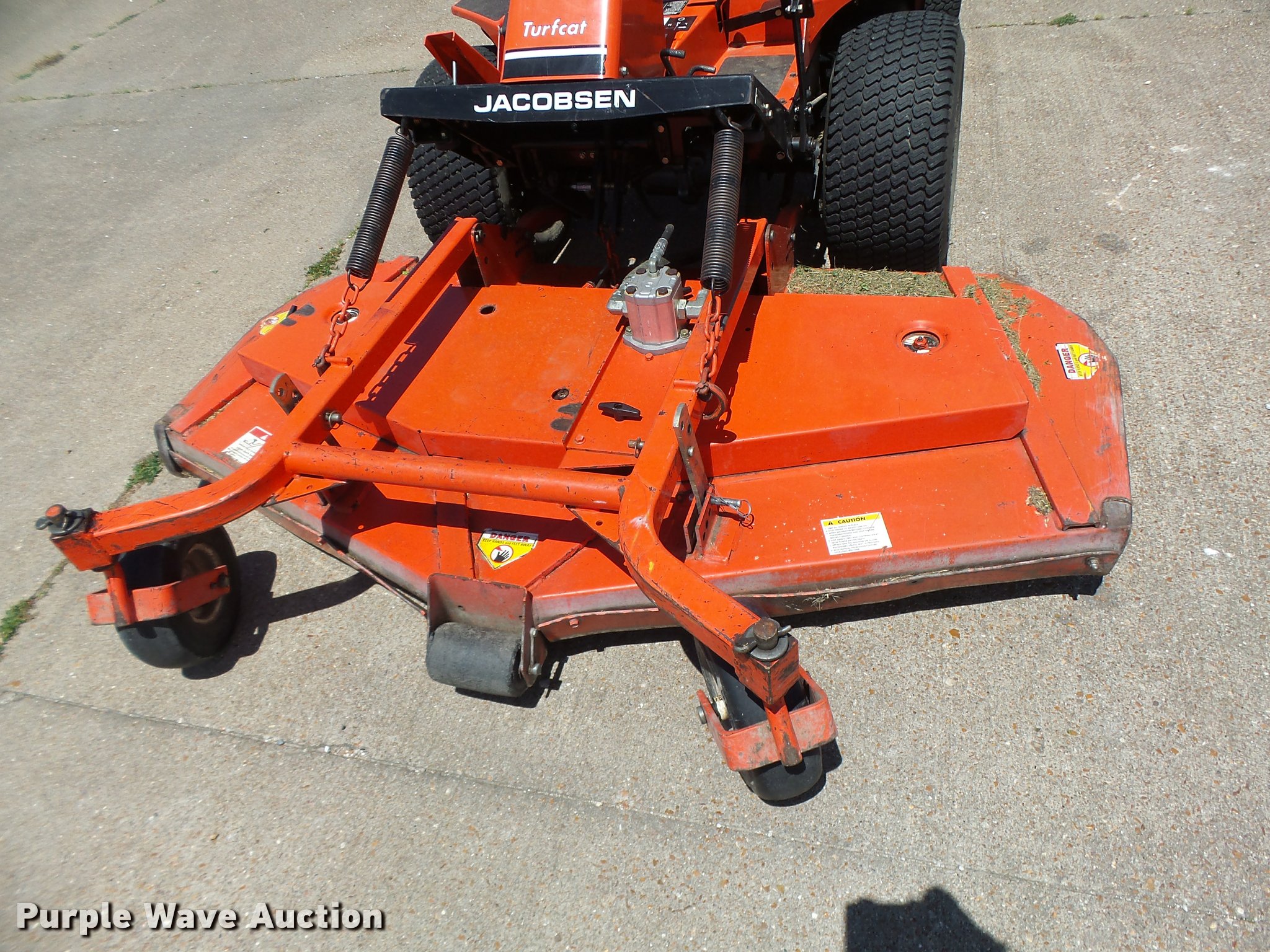 Purple Wave is selling a used Commercial Turf Mower in Missouri. This item is a Jacobsen T423D Turfcat lawn mower with the following: 1,849 hours on meter, 72"W deck, Kubota D905-E four cylinder diesel engine, Hydrostatic transmission, Four wheel drive, 23 x 10.5-12 NHS front tires, 16 x 7.50-9 rear tires, Serial 661371822