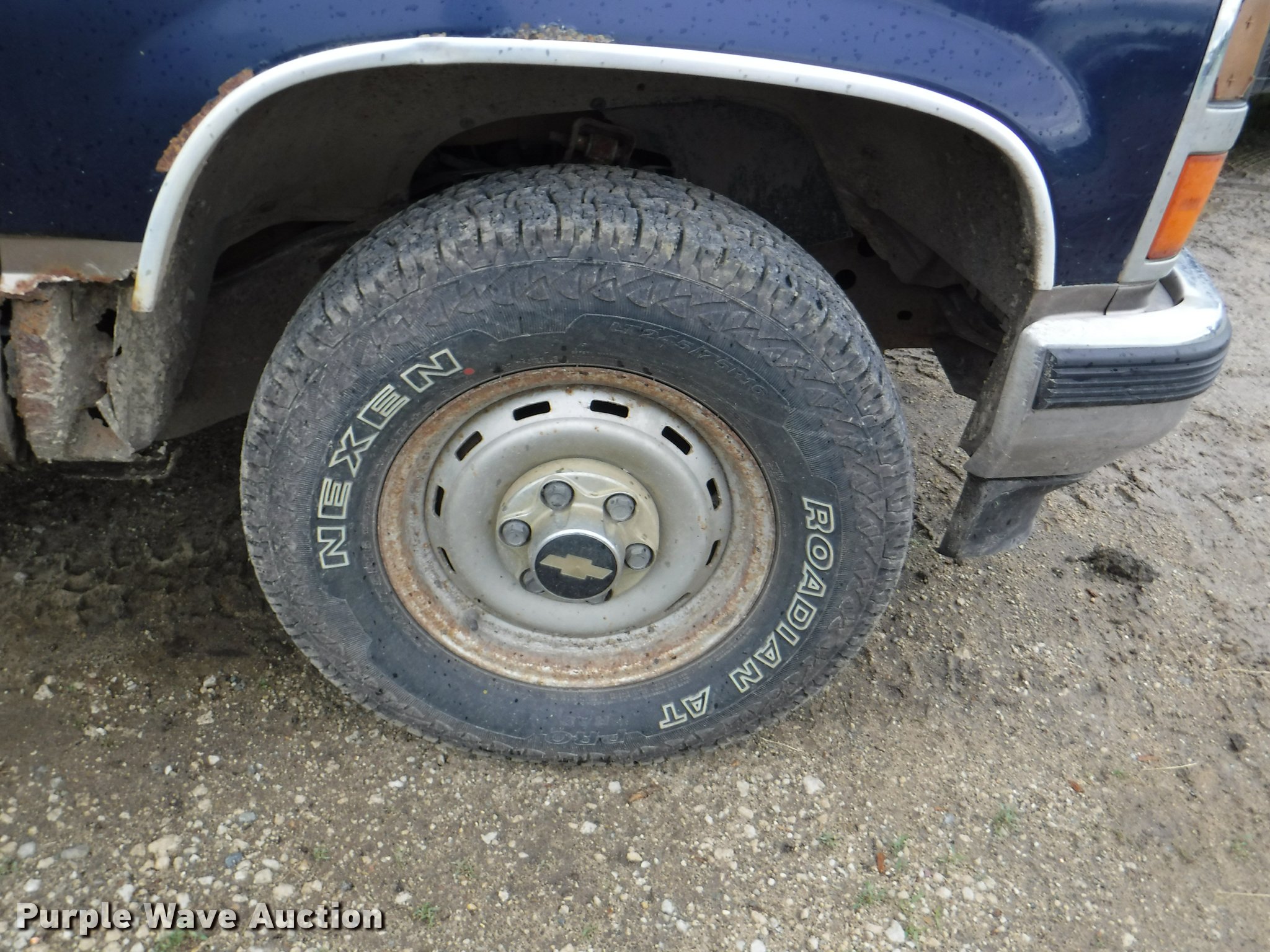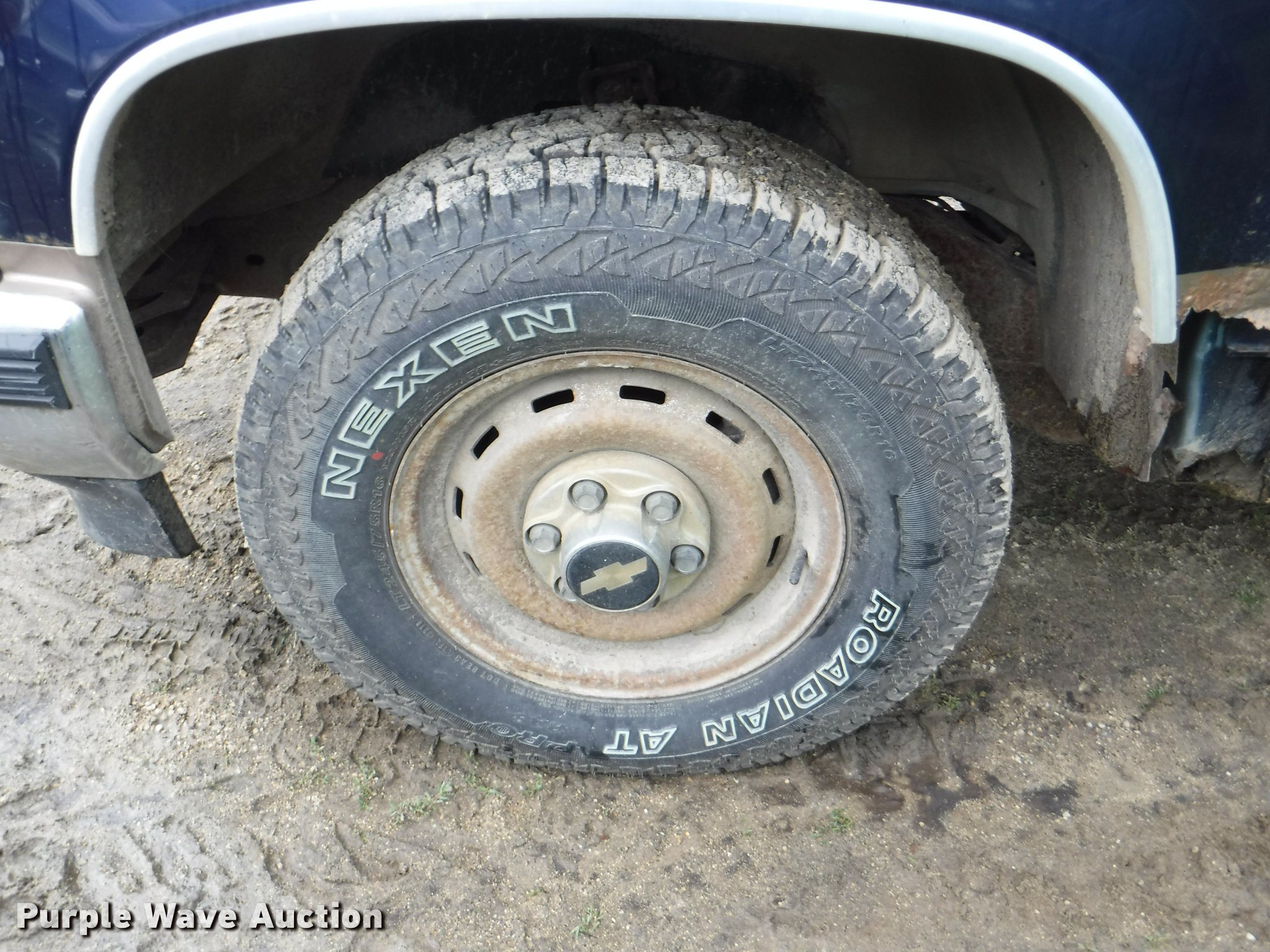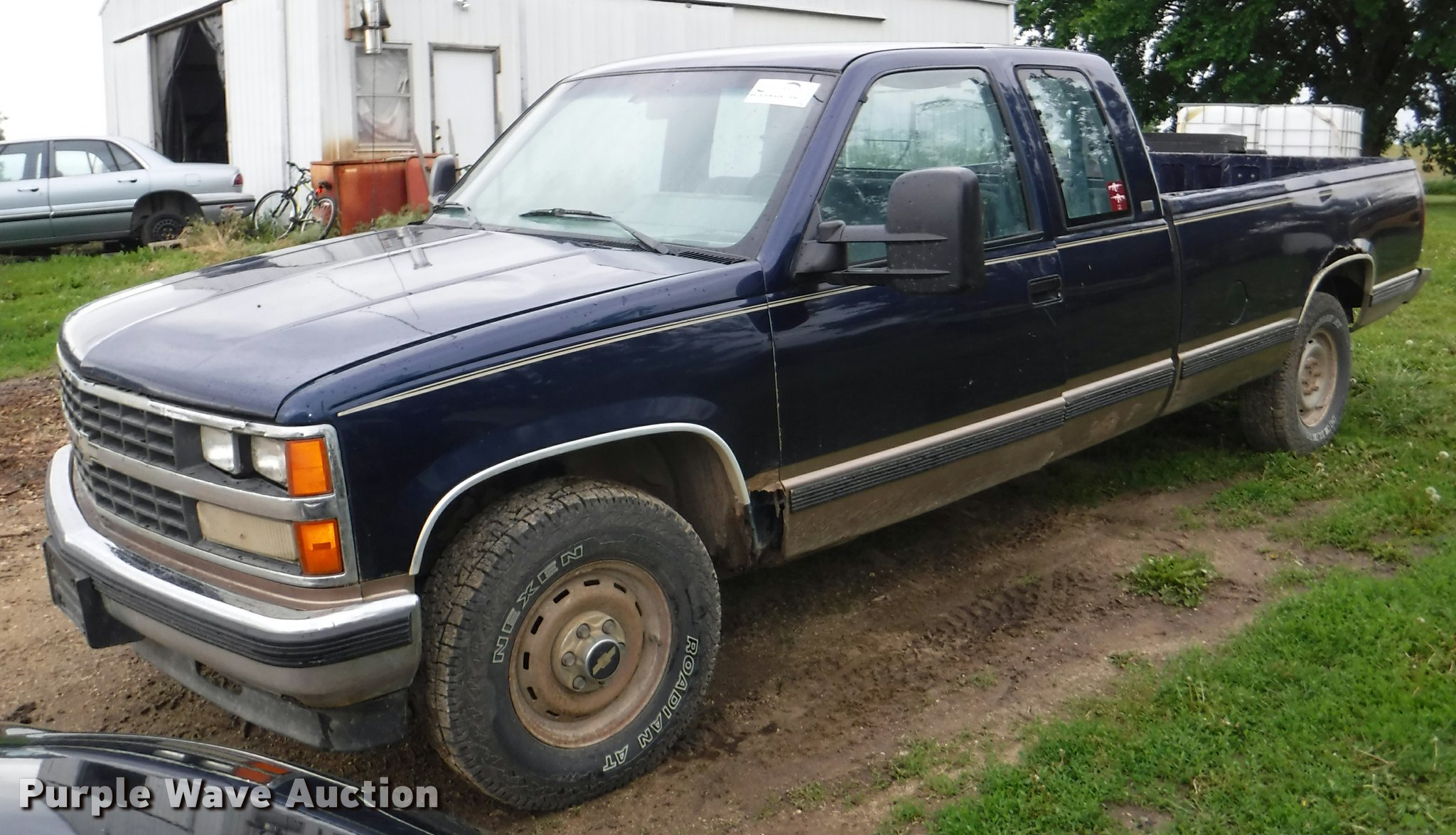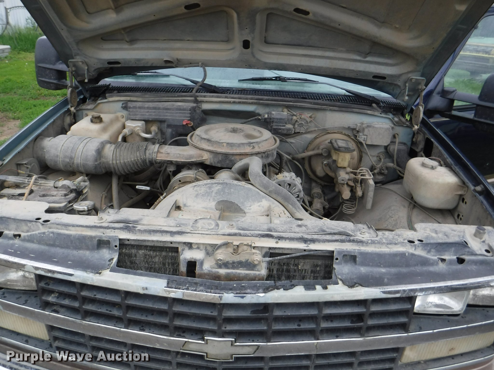 Purple Wave is selling a used 1/2 Ton Pickup or Van in Kansas. This item is a 1989 Chevrolet 1500 Scottsdale Ext. Cab pickup truck with the following: Unknown miles on odometer, Odometer inoperable, Vehicle still in use, 5.7L V8 OHV 16V gas engine, Automatic transmission, Four wheel drive, AC and heat, AC needs charged, Tilt, AM/FM/CD, Power windows and locks, Cloth interior, Long bed, Trailer wiring, LT245/75R16 tires, Rust, Possible condenser issues, Seats torn, Headliner needs repaired, Maintenance history available upon request