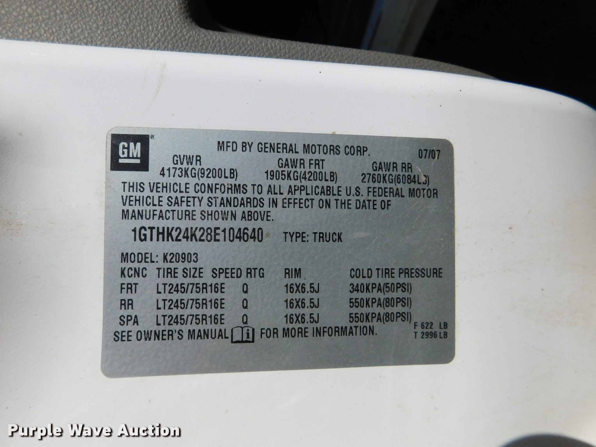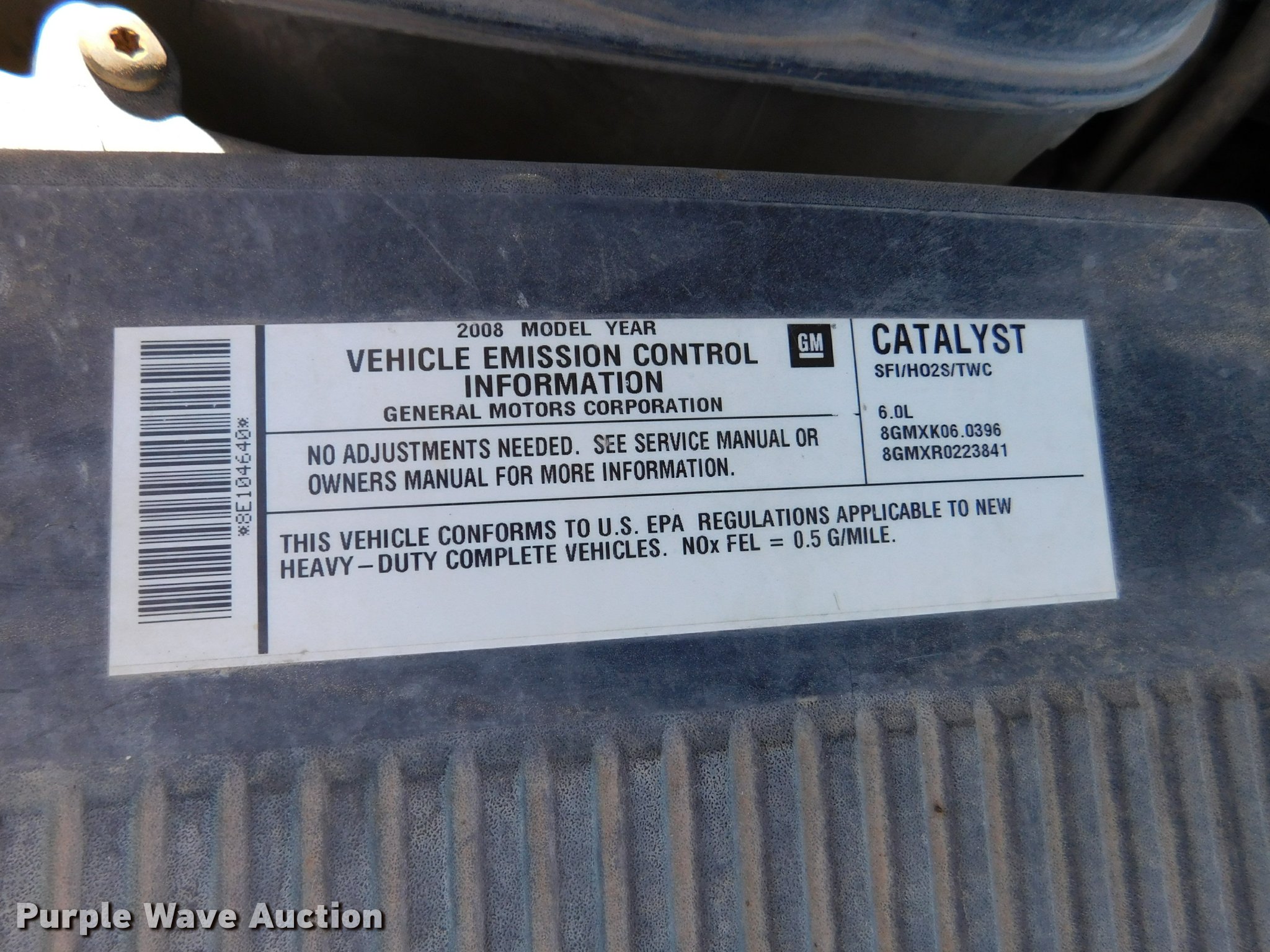 Purple Wave is selling a used 3/4 or 1 Ton Pickup or Van in Kansas. This item is a 2008 GMC Sierra 2500HD pickup truck with the following: 273,556 miles on odometer, 6.0L V8 16V OHV gas engine, Automatic transmission, Four wheel drive, AC and heat, Tilt, Cruise, AM/FM/CD, Manual windows, Power locks, Cloth interior, Front tow hook, Grill guard, 23"H headache rack, Gooseneck hitch, Receiver hitch, Trailer wiring, 245/75R16 tires, Transmission issues, Rust, Hail damage