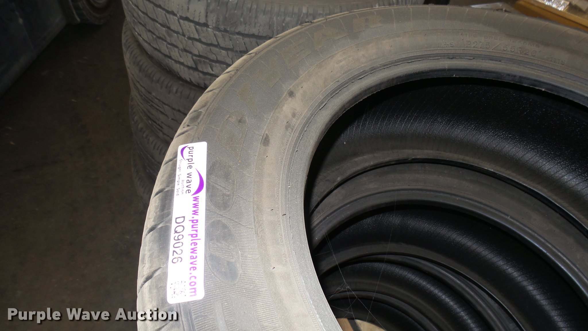 Purple Wave is selling a used Fleet Tires in Kansas. This item is a (4) Goodyear P275/55R20 tires with the following: (4) Goodyear P275/55R20 tires. Leadfoot Express. 1711 S Hoover Rd. Wichita, KS 67209