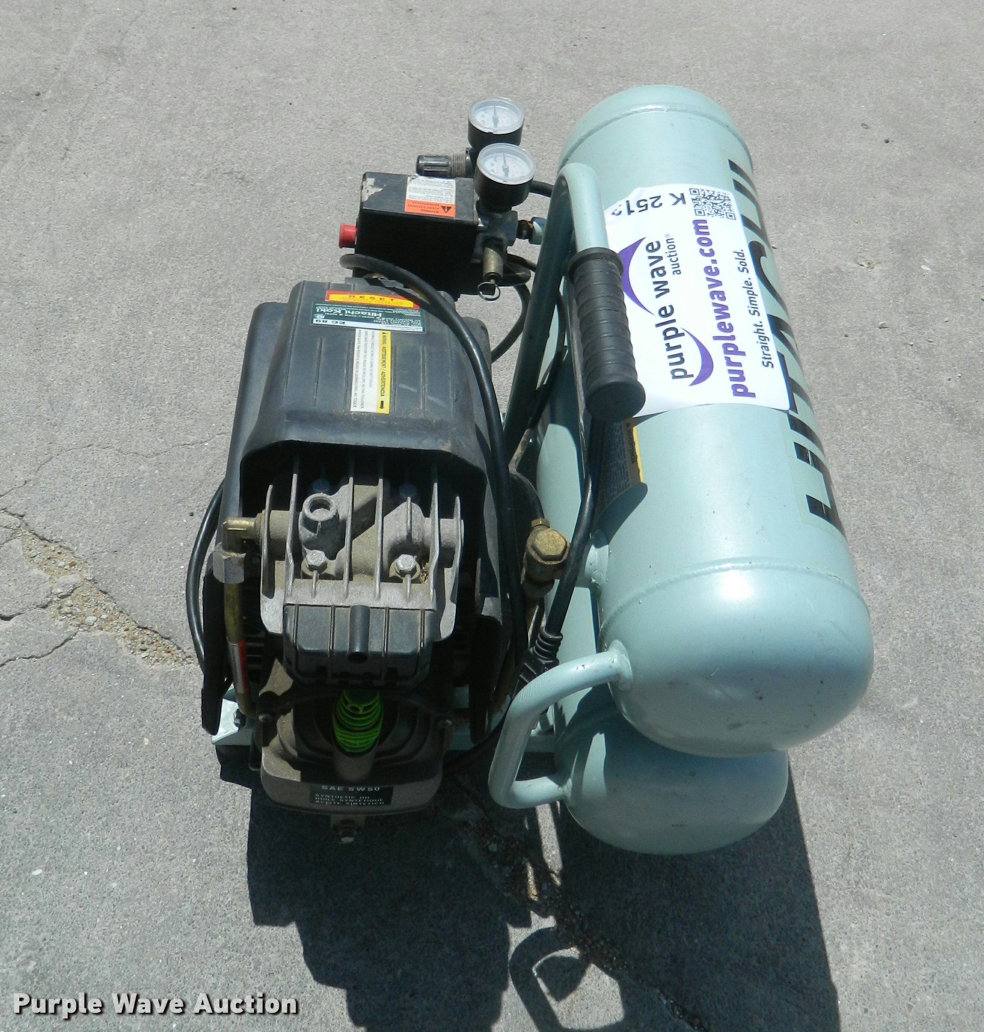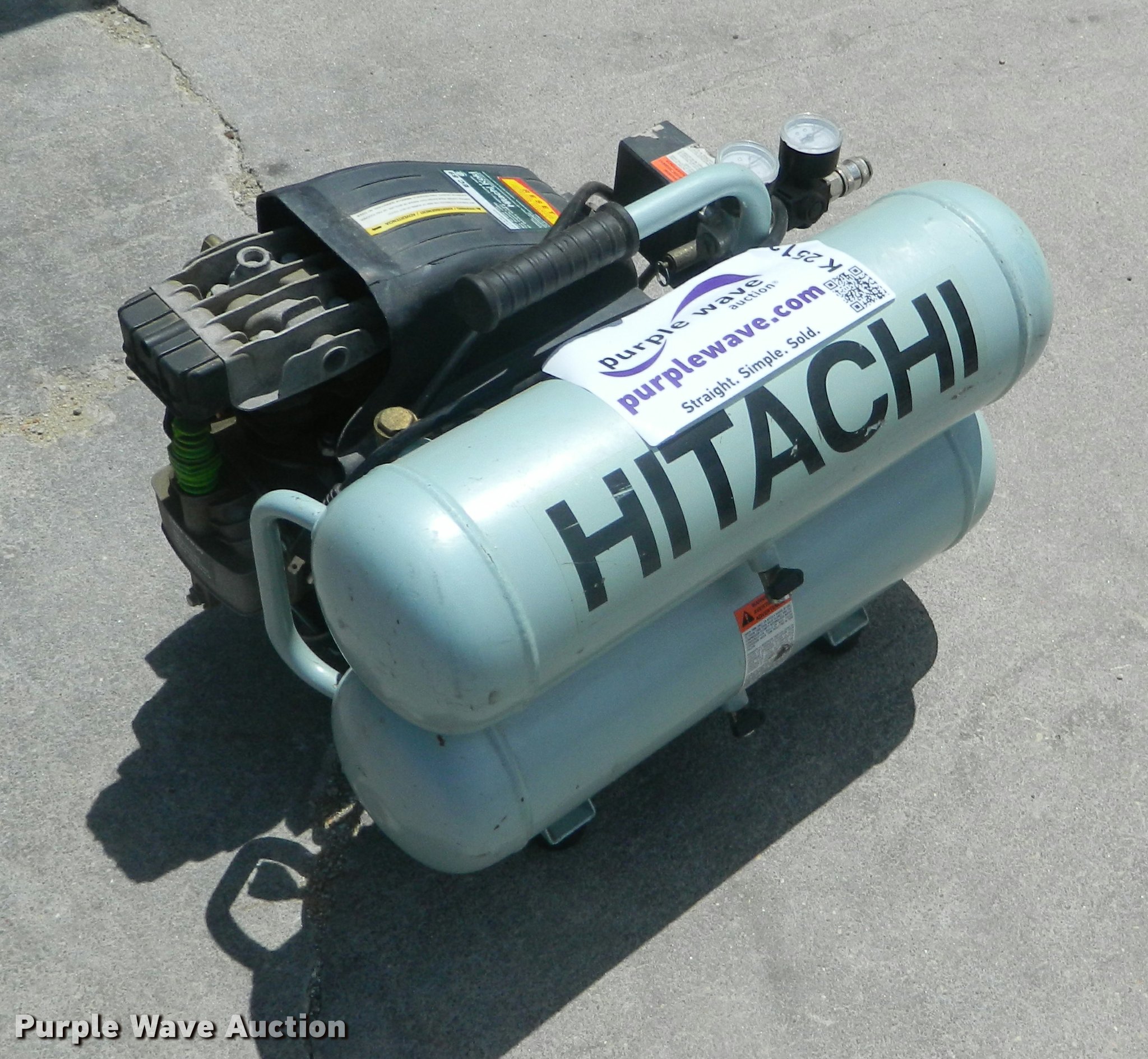 Purple Wave is selling a used Air Compressor in Kansas. This item is a Hitachi air compressor with the following: 120V, Four gallon tank, 135 psi