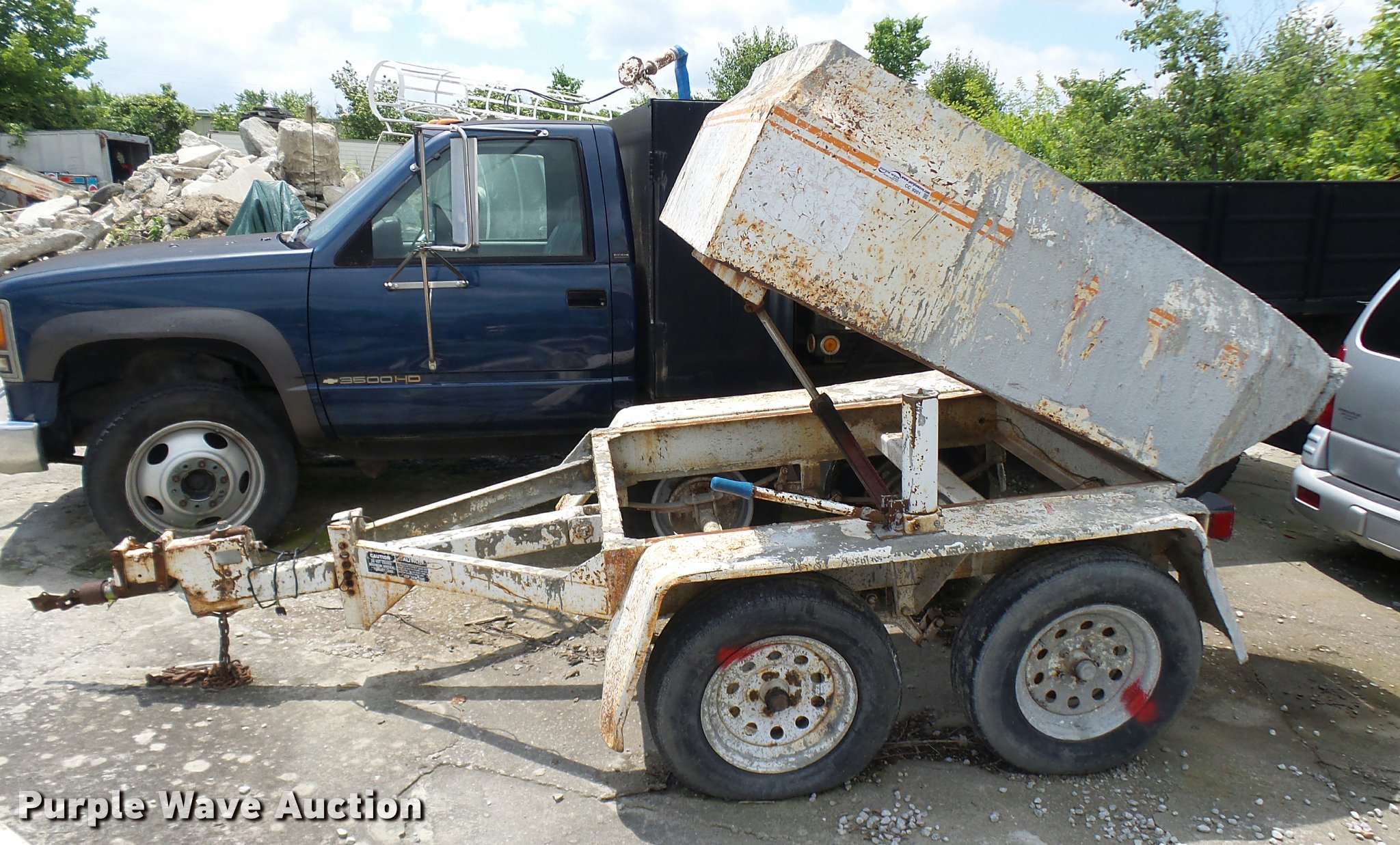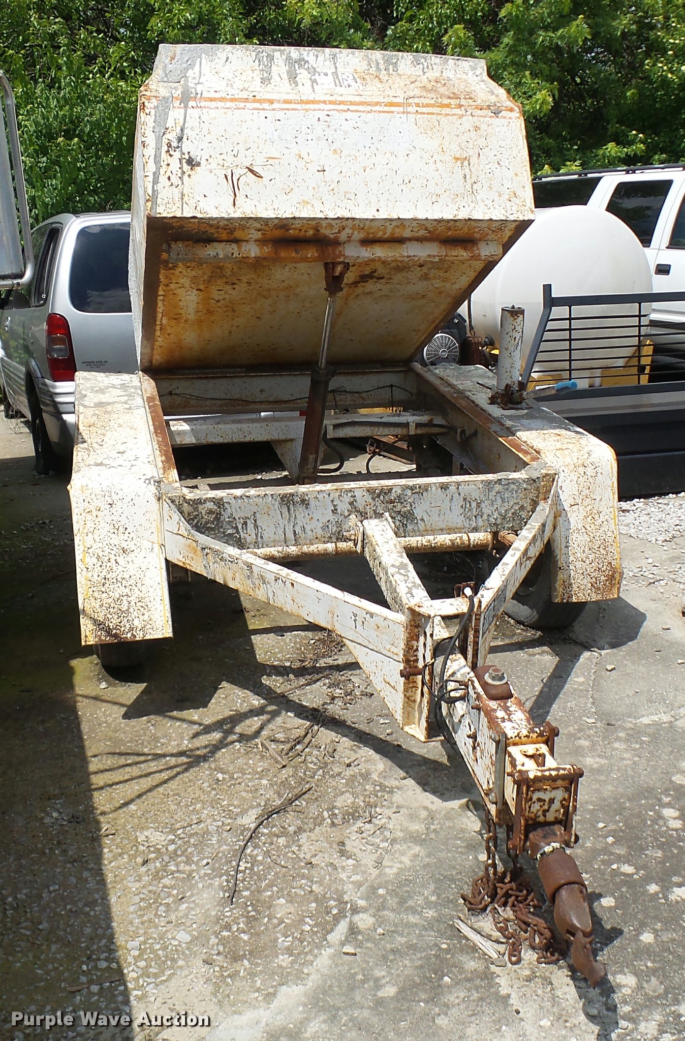 Purple Wave is selling a used Trailer Other in Missouri. This item is a Cementeck concrete dispenser tilt trailer with the following: 1 1/4 cu.yd. capacity, Manual hydraulic tilt, Adjustable tongue height, 2 5/16" ball hitch, Safety chains, Spring suspension, Surge brakes, Steel wheels, 205/75R15 tires, GAWR 3,500 lbs
