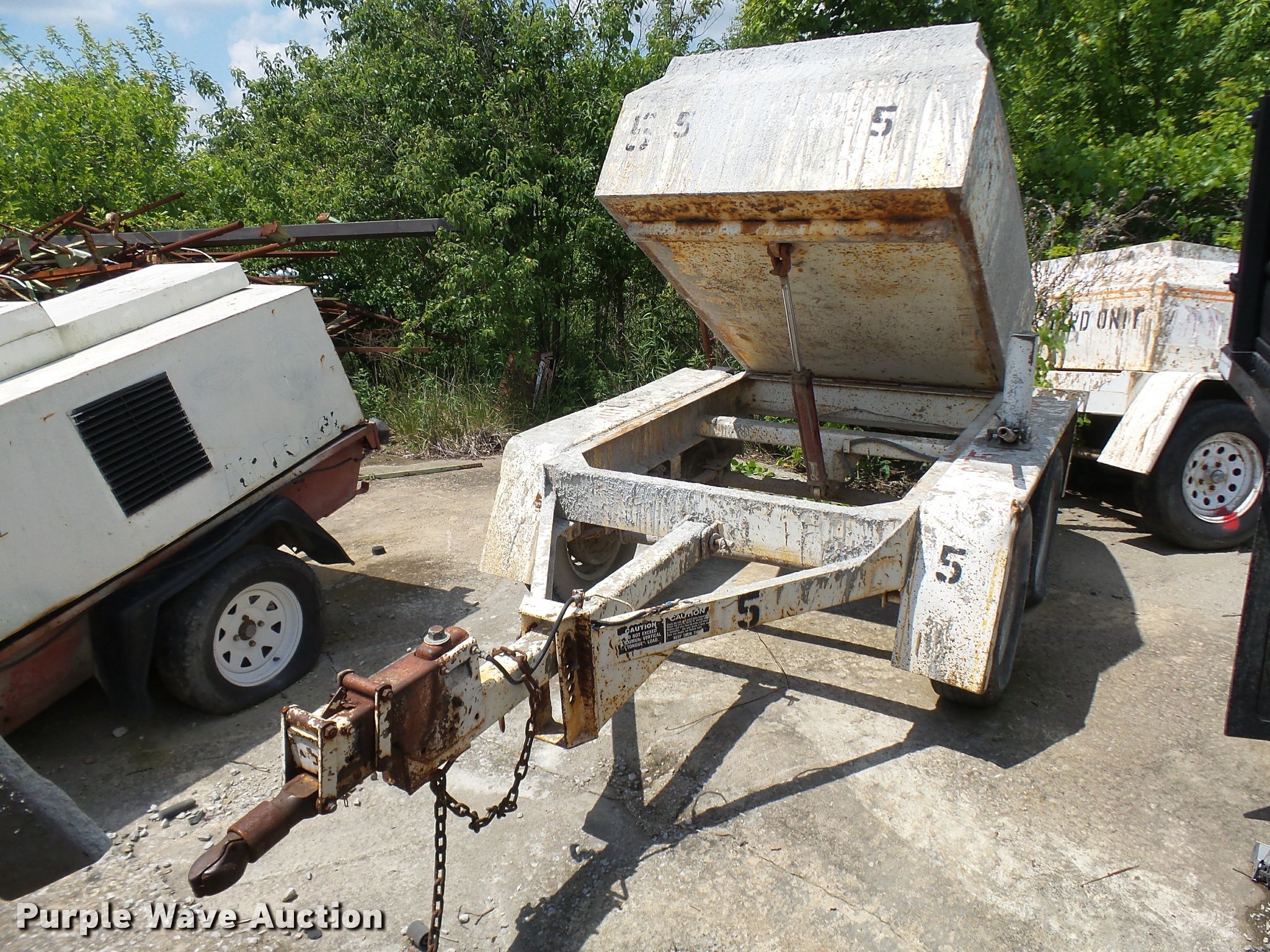 Purple Wave is selling a used Trailer Other in Missouri. This item is a Cementeck concrete dispenser tilt trailer with the following: 1 1/4 cu.yd. capacity, Manual hydraulic tilt, Adjustable tongue height, 2 5/16" ball hitch, Safety chains, Spring suspension, Surge brakes, Steel wheels, 205/75R15 tires, GAWR 3,500 lbs