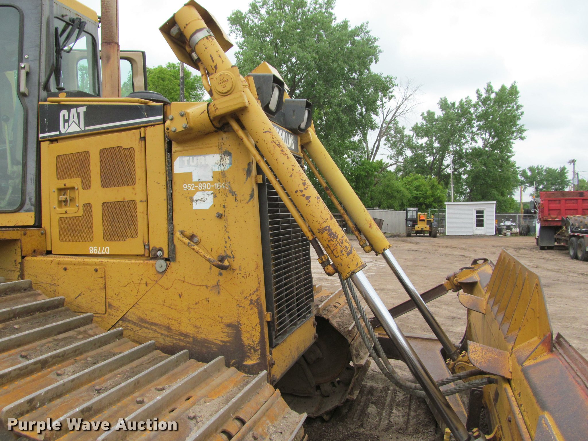 1998 Caterpillar D6R LGP dozer. 21,662 hours on meter, Caterpillar 3306 10.5 six cylinder turbo diesel engine 225 HP, Serial 6NC05350, Powershift transmission 3F-3R gears, EROPS Serial P8006B2117, AC and heat, Suspension seat, Differential steering, Front and rear wipers, Front and rear work lights, 150" straight dozer blade Single cylinder tilt, Serial 1SP00639, Rear drawbar, Seven bottom rollers, 36" single grouser track pads, Serial 9PN00845. Turner Excavating. 12540 Nevada Ave S. Savage, MN 55378