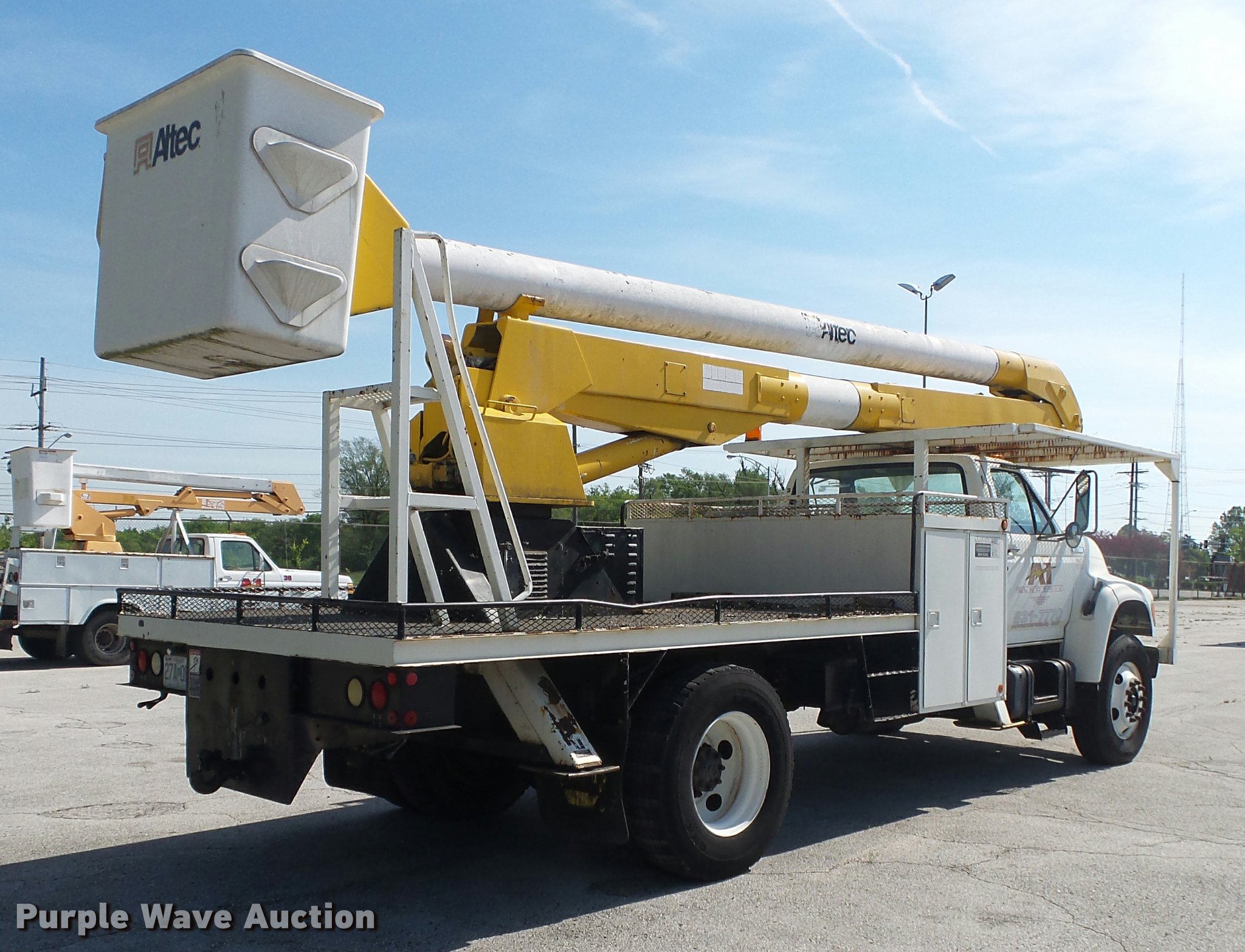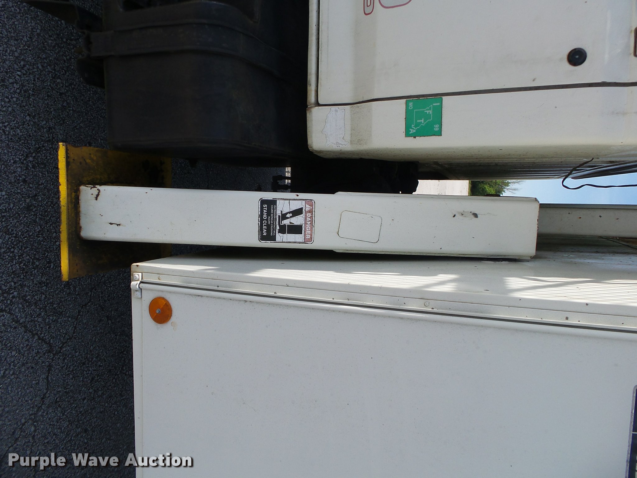 1995 Ford F800 Super Duty bucket truck. 31,490 miles on odometer, Cummins ISB 5.9L L6 turbo diesel engine, 10 speed manual transmission, Single axle, PTO, Heat, AM/FM, Suspension seat, Beacon light, Altec utility bed 15'7"L, Shelving, Altec AA600 boom 500 lbs maximum lift capacity, 55' maximum lift height, Man basket, Ground and platform controls, Boom rotation, Articulating, insulated boom, (4) outriggers, Serial 0684-J0752, Dual fuel tanks, Single exhaust stack, Pintle hitch, Spring suspension, Air brakes, 11R22.5 tires, GVWR 33,000 lbs. Missouri title. Title distribution may be delayed up to 14 days from verification of funds. 1FDXF80C2SVA74107. A-1 Electric. 2525 E Livingston St. Springfield, MO 65803