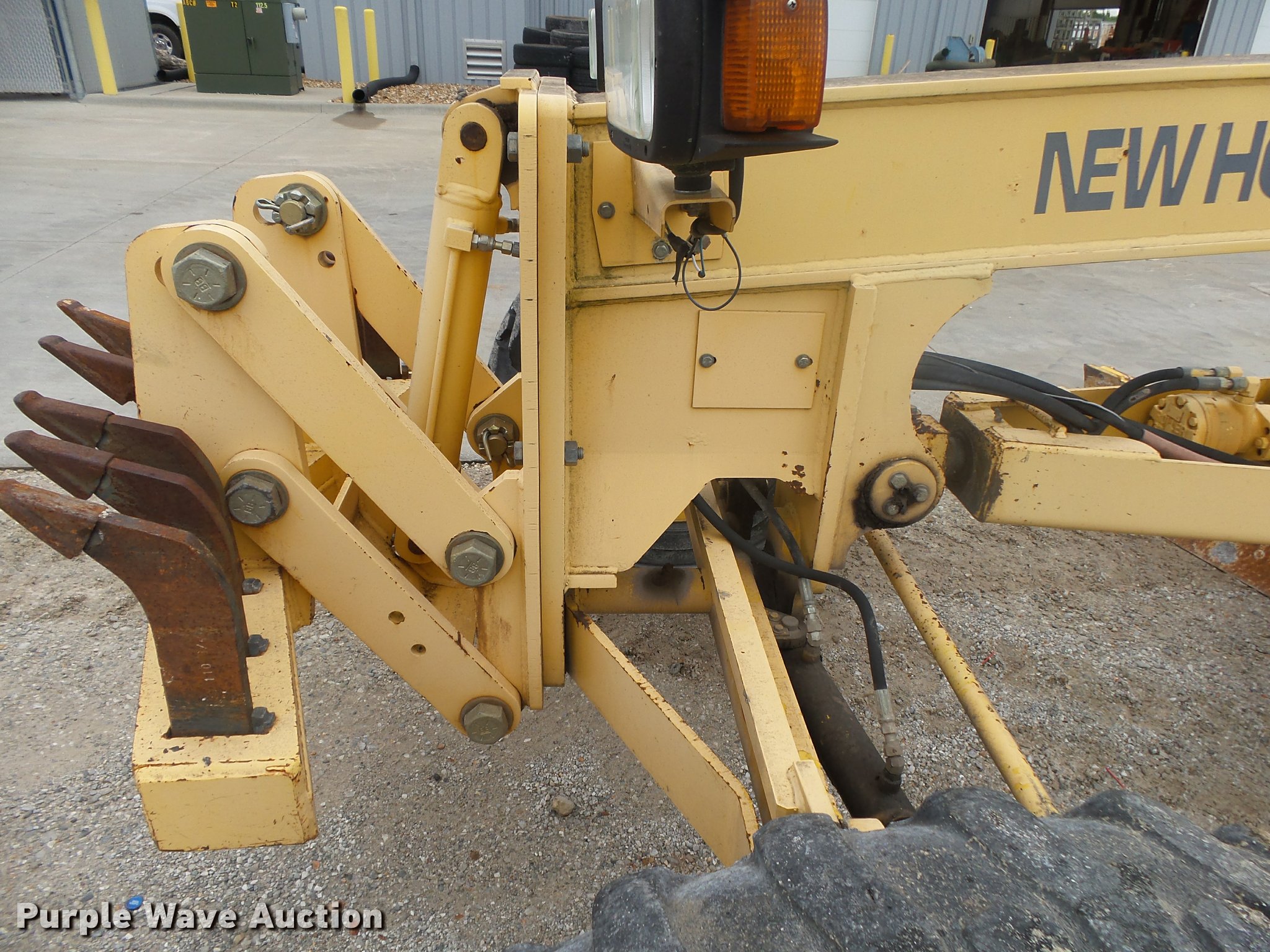 Purple Wave is selling a used Motor Grader in Missouri. This item is a New Holland RG80 motor grader with the following: 3,046 hours on meter, Four cylinder diesel engine, Powershift transmission, 6F-3R gears, Limited slip differential, EROPS, Heat, Suspension seat, Eight control valves, Front and rear work lights, 10'W moldboard, Tip control, Side shift, Front mounted lift group, Front mounted scarifier, (8) tooth capacity, Tooth missing, 15-19.5 tires