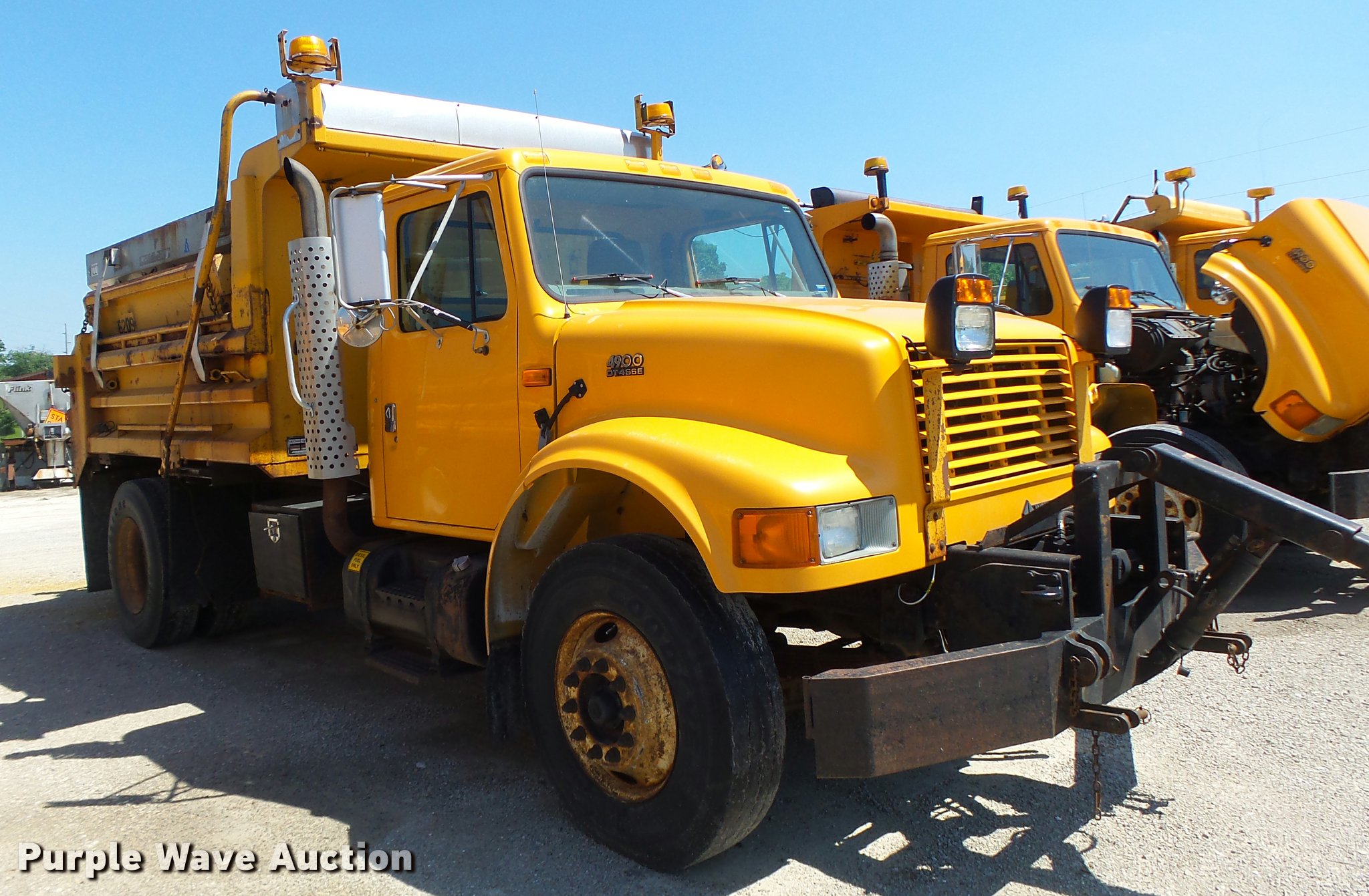Purple Wave is selling a used Construction Dump Truck in Missouri. This item is a 2000 International 4900 dump truck with the following: 214,460 miles on odometer, 11,838 hours on meter, International DT466 7.6L L6 turbo diesel engine, Automatic transmission, Single axle, AC and heat, Cruise, AM/FM/CD, Heated mirrors, Air suspension seat, Steel dump bed, 10'L x 8'W, 24" side height, Single ram hoist, Air operated end gate, Roll tarp, Monroe spreader, 10'L, MODOT ID S1221, Trailer wiring, Spring suspension, Air brakes, 11R22.5 tires, MODOT ID 6209