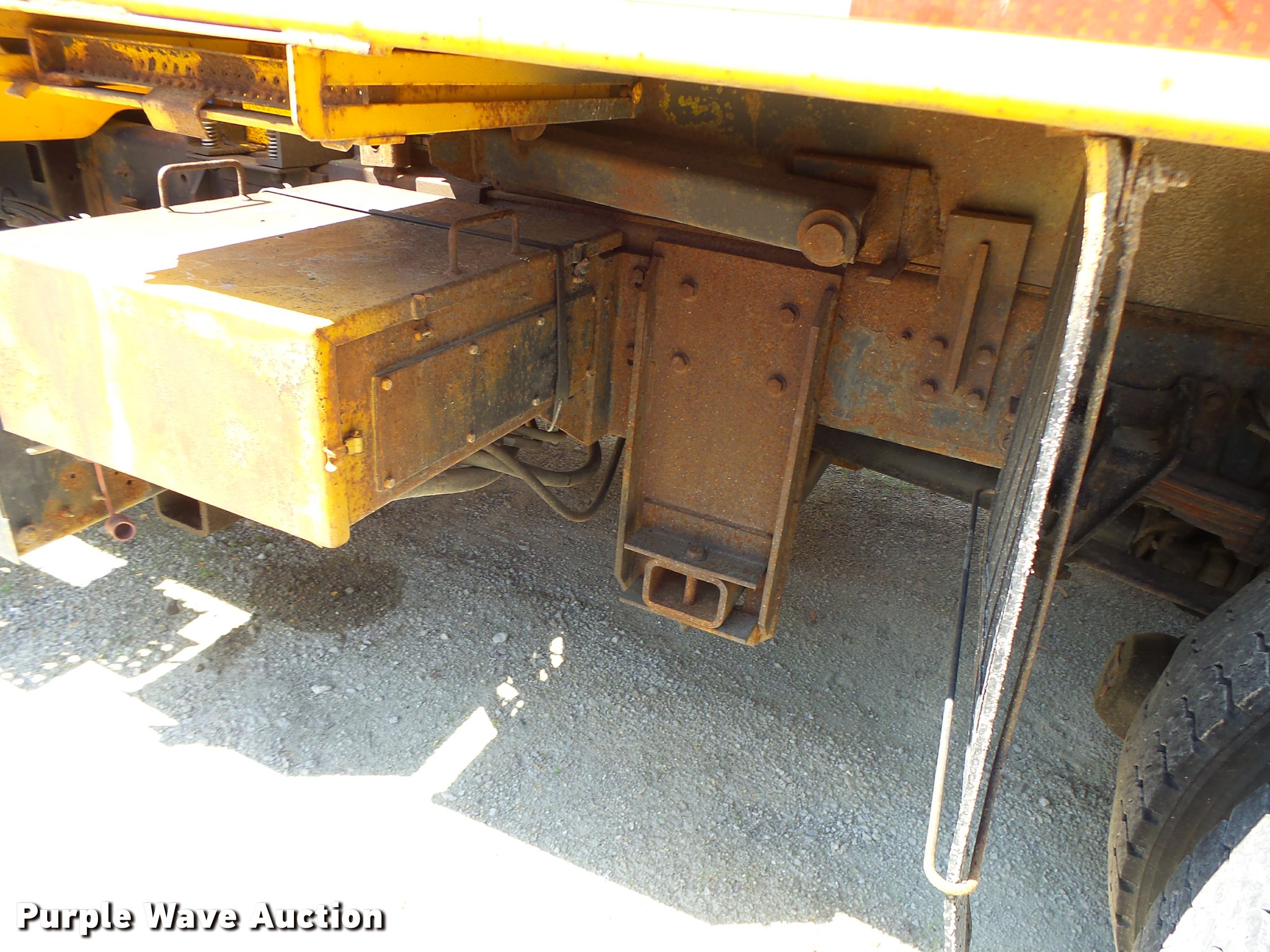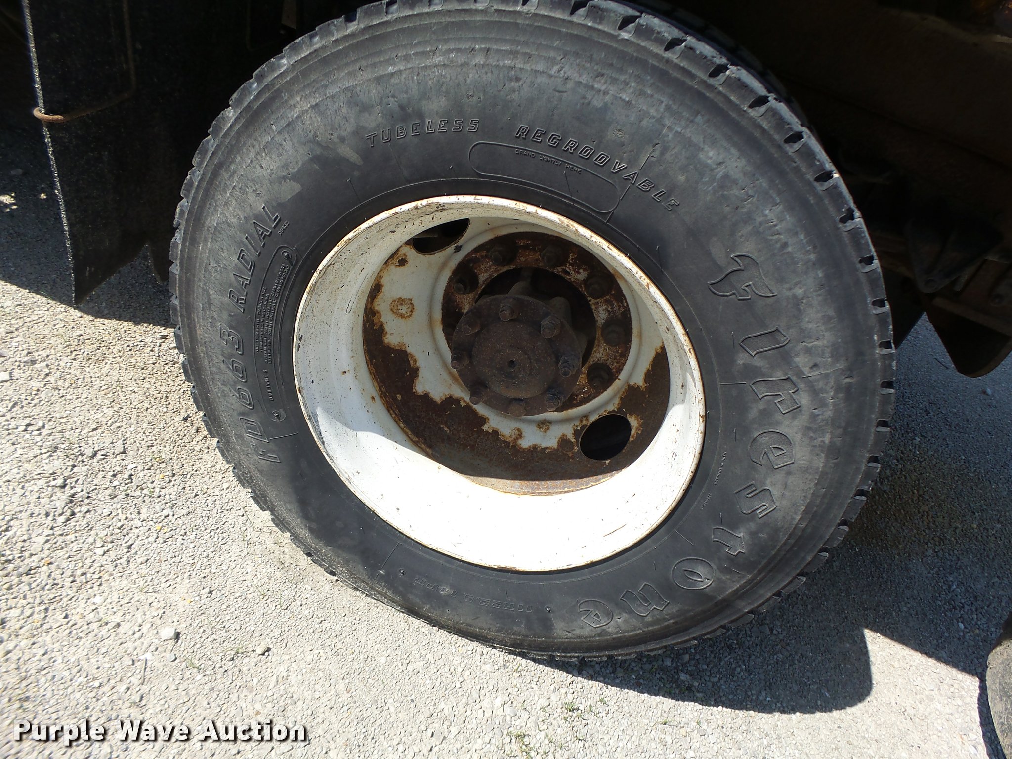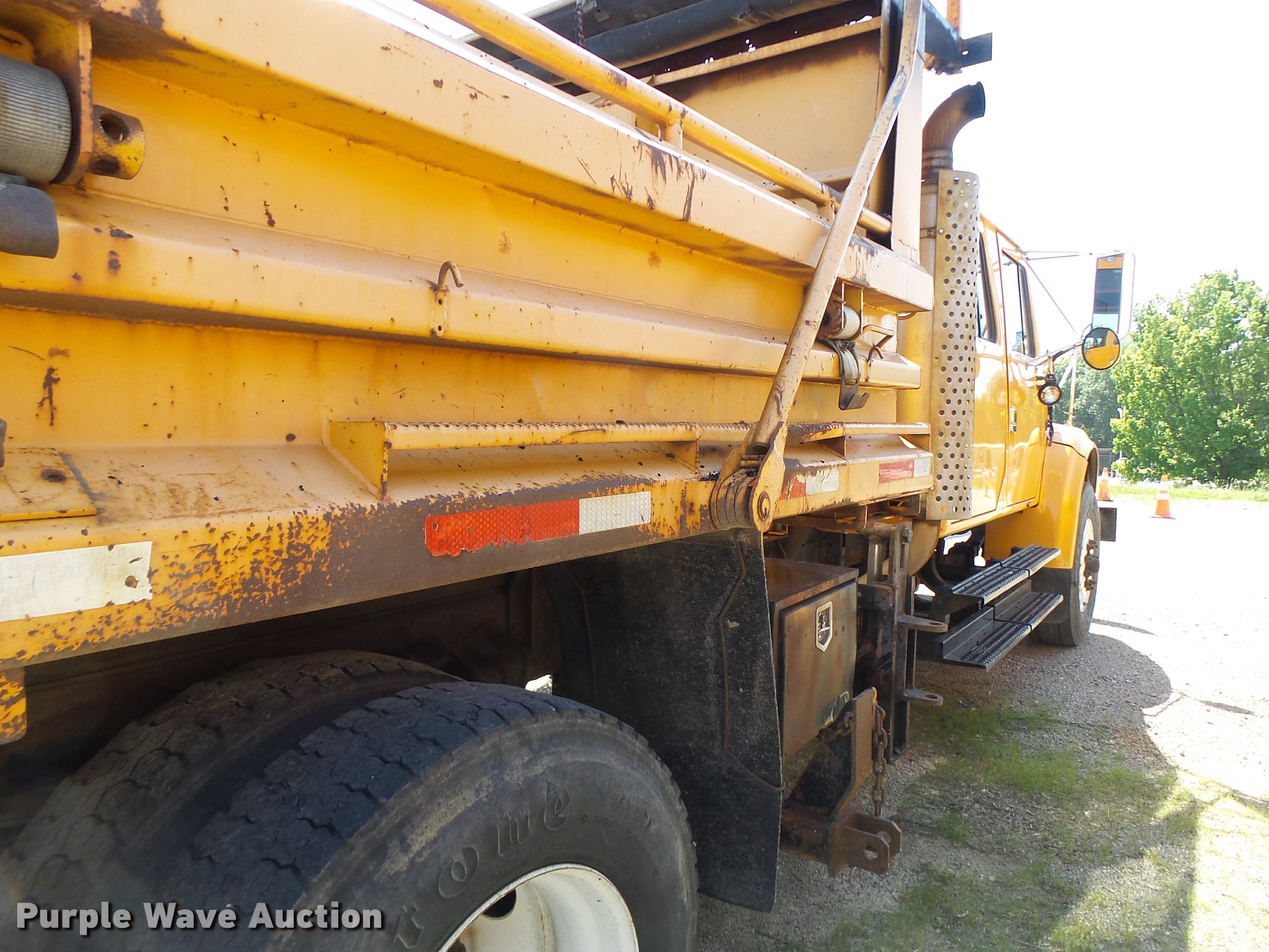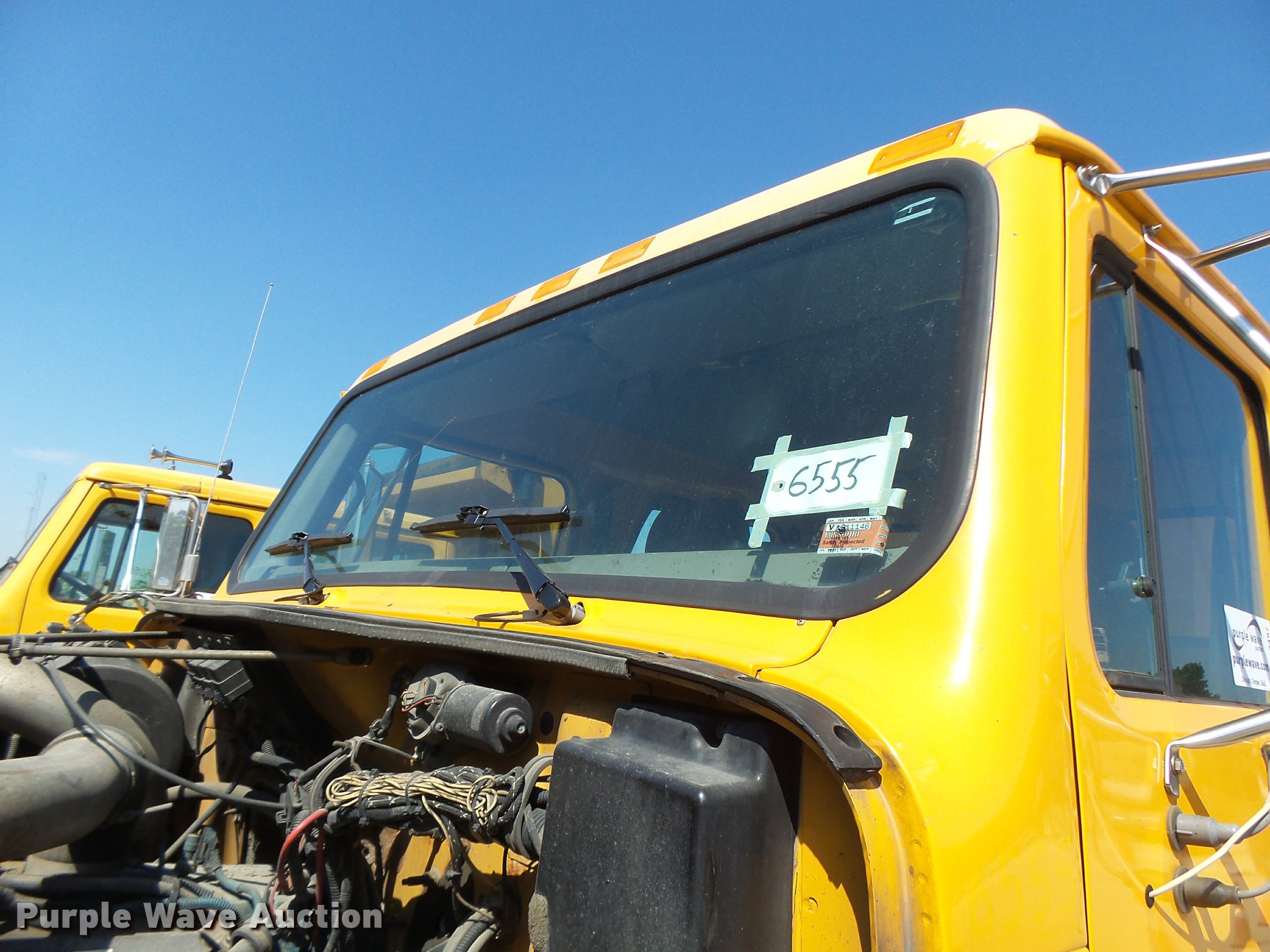Purple Wave is selling a used Construction Dump Truck in Missouri. This item is a 2002 International 4900 Crew Cab dump truck with the following: 166,905 miles on odometer, 12,278 hours on meter, International DT466 7.6L L6 turbo diesel engine, Automatic transmission, Single axle, AC and heat, Cruise, Weatherband radio, Heated mirrors, Air suspension seat, Steel dump bed, 10'L x 8'W, 24" side height, Single ram hoist, Air operated end gate, Roll tarp, Single fuel tank, Pintle hitch, Trailer wiring, Spring suspension, Air brakes, 315/80R22.5 front tires, 11R22.5 rear tires, MODOT ID 6555