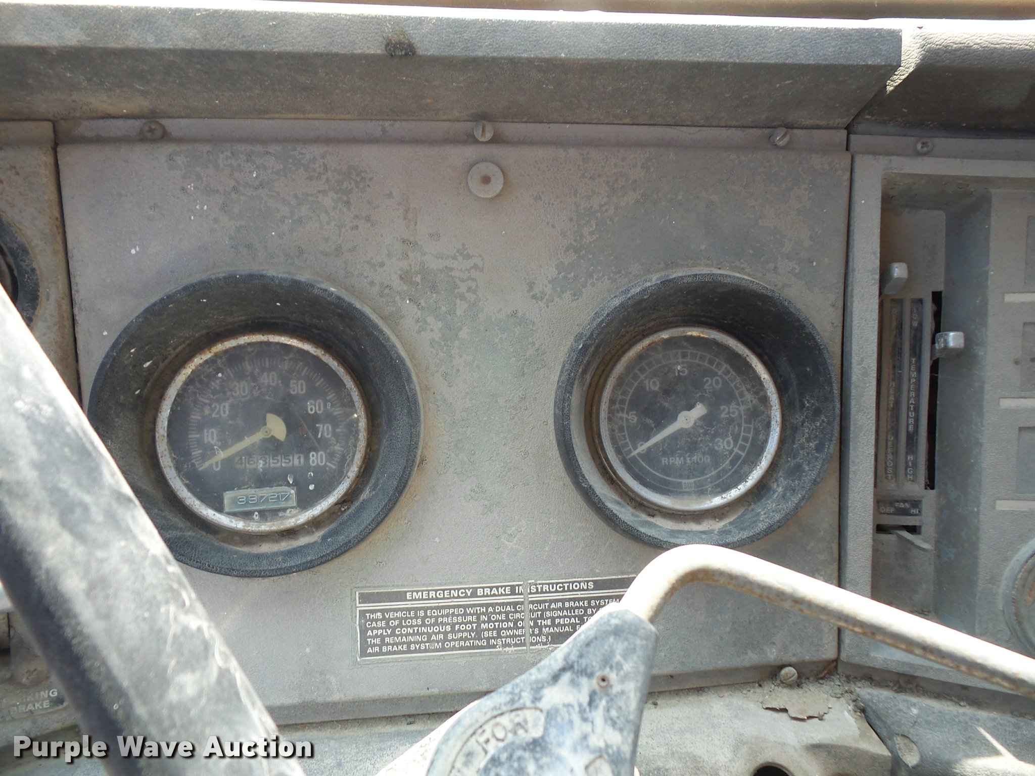1970 Ford 9000 tank truck. 468,551 miles on odometer, 835 hours on meter, Cummins 250 six cylinder diesel engine, Five speed manual transmission, Tandem axle, Heat, Air suspension seat, 11'L x 8'W x 6'H tank Rear spray bar, 3" rear drain, Top fill, Single fuel tank, Spring suspension, Air brakes, 10.00R20 tires, GVWR 46,000 lbs, Rust, Tank leaks, Unit needs batteries. Kansas title. U90JVH80398. Killough Construction. 3633 US-59. Ottawa, KS 66067