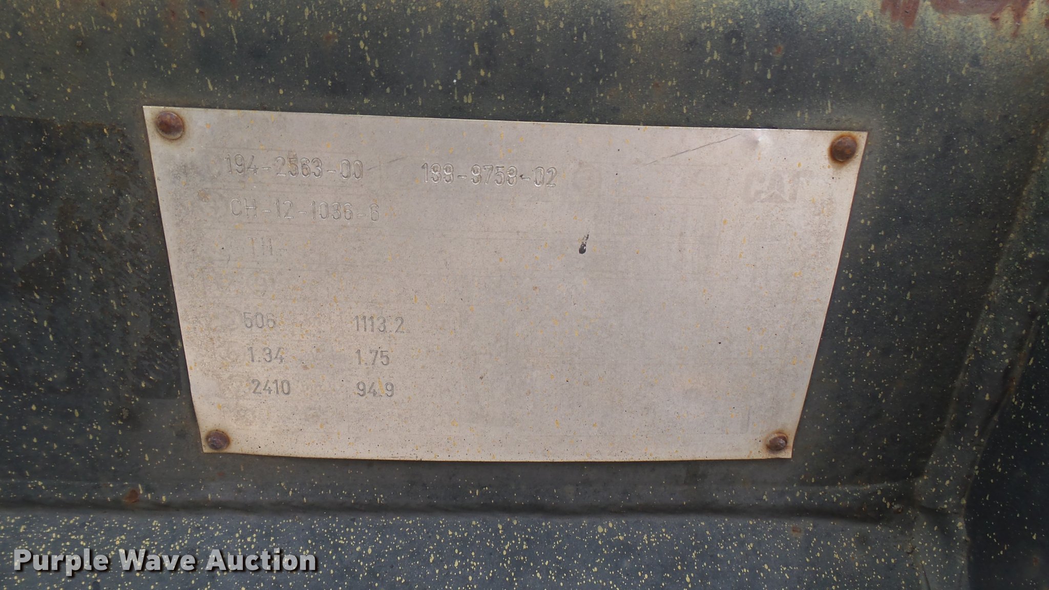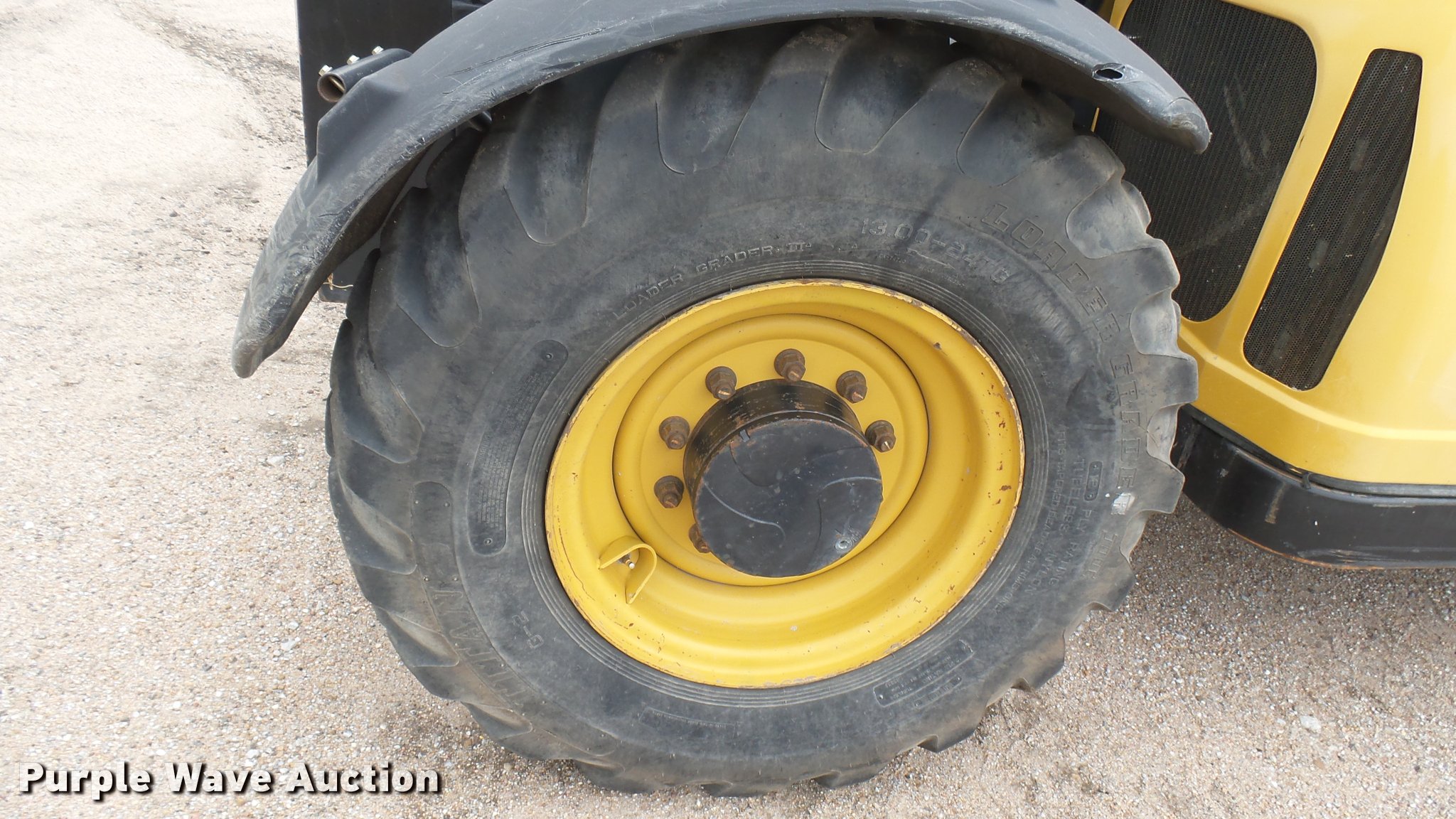 Purple Wave is selling a used Telehandler in Kansas. This item is a 2007 Caterpillar TL943 telehandler with the following: 1,998 hours on meter, Caterpillar four cylinder diesel engine, Powershift transmission, 4F-3R gears, Four wheel drive, Four wheel steer, Enclosed cab, Tilt cab, Heat, Joystick controls, Wiper, Work lights, 9,000 lbs maximum lift capacity, 43' maximum lift height, 31'3" maximum reach, Caterpillar 94"W bucket, Tilt carriage, Auxiliary hydraulics, Hydraulic outriggers, Beacon light, 13.00-24 tires, Side wall damage on one tire, Transmission slips, Engine knock, Serial TBL00770