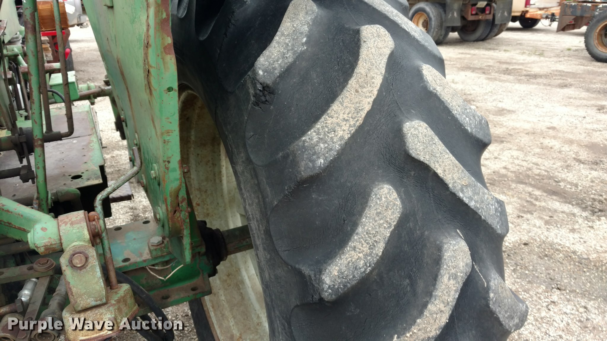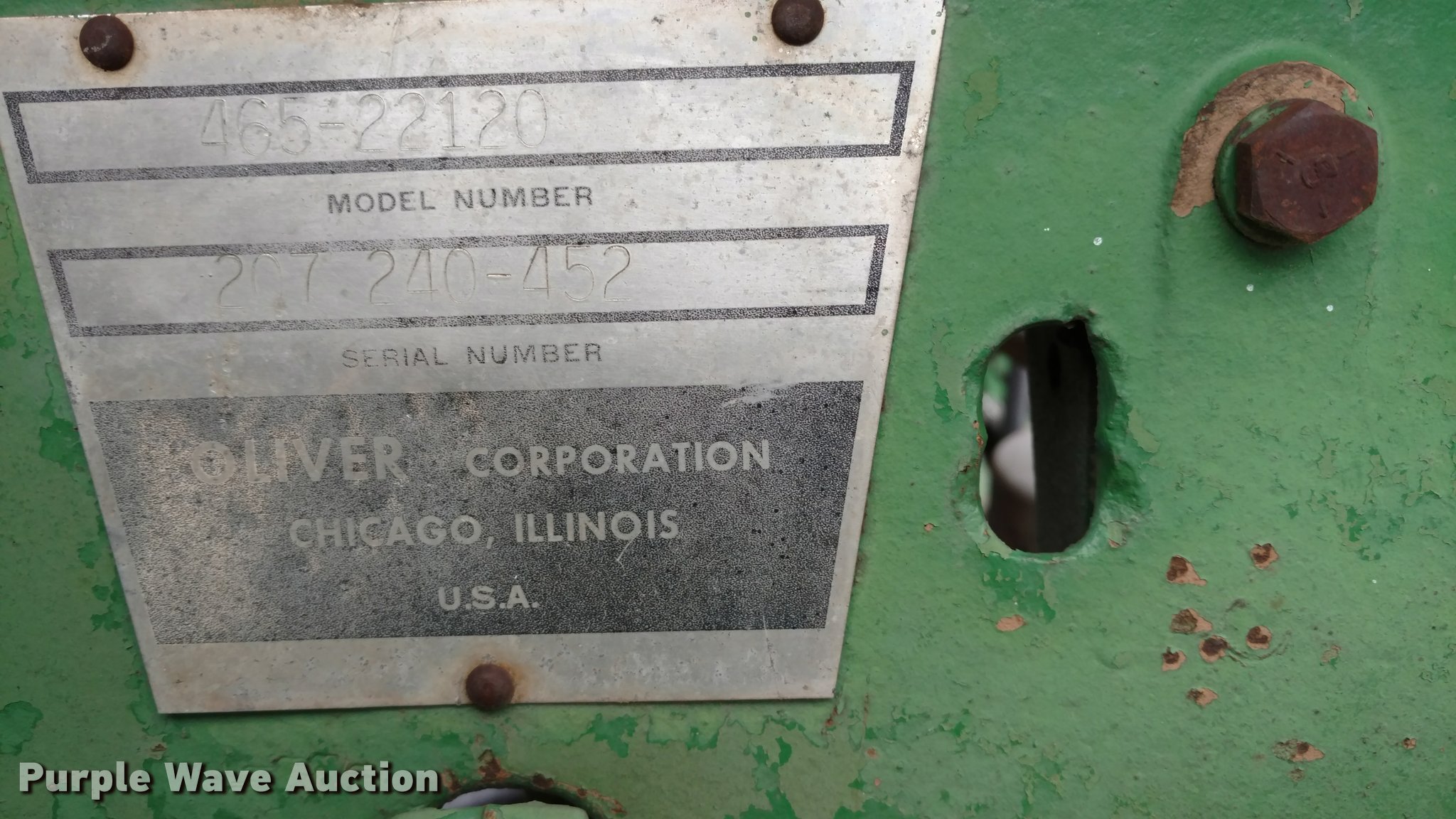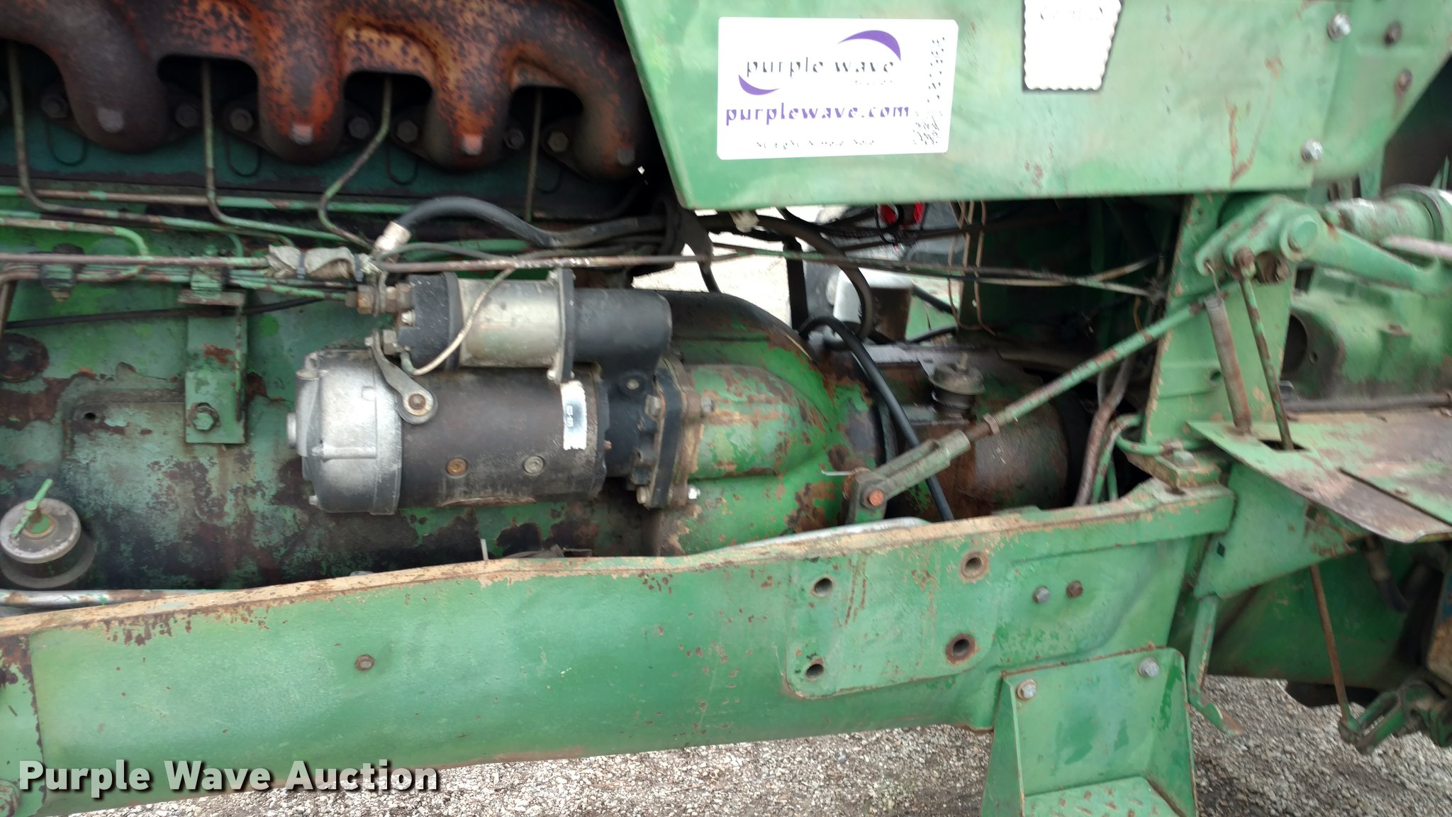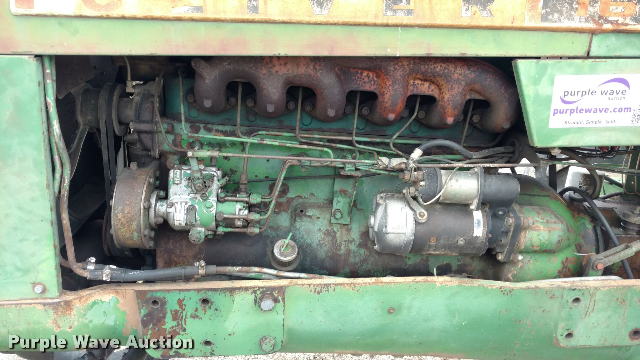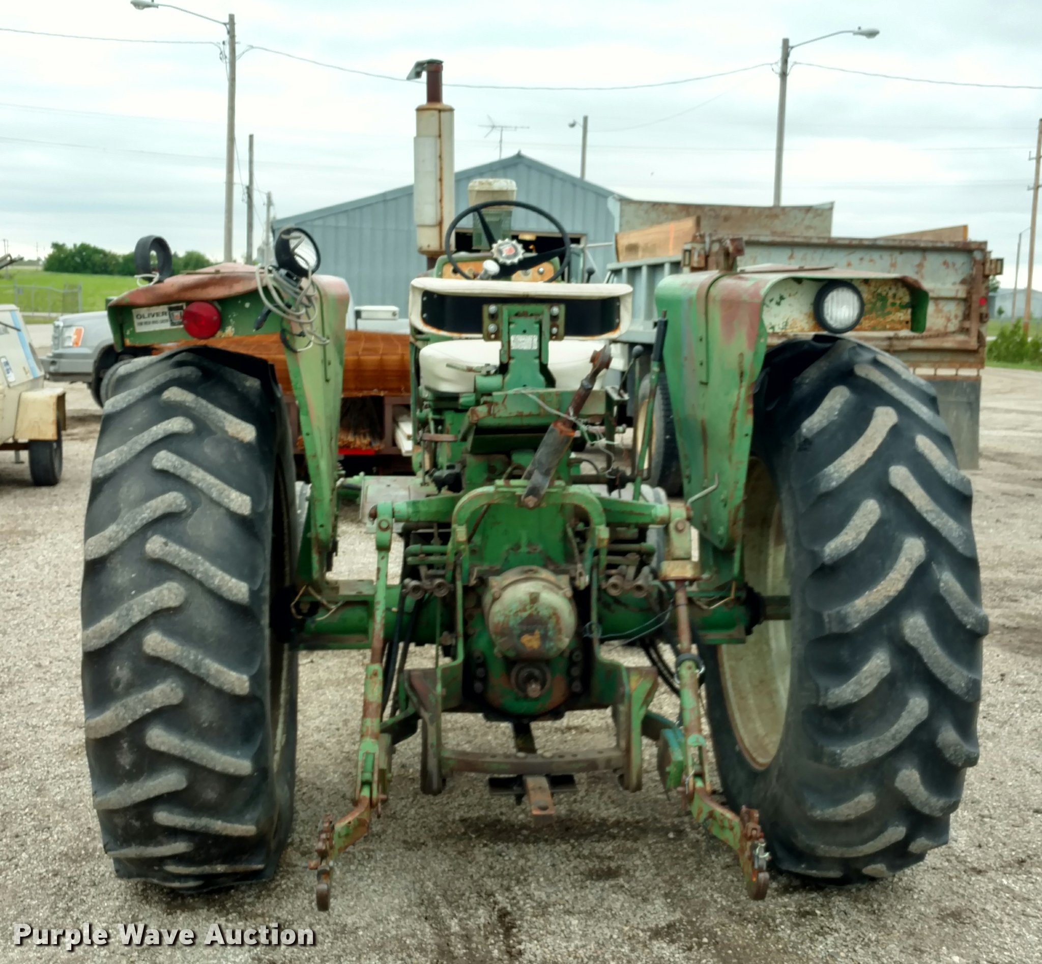 Purple Wave is selling a used Tractor in Kansas. This item is a Oliver 1650 tractor with the following: 3,936 hours on meter, Six cylinder diesel engine, 6F-2R gears, In-line water heater, Three point, Top link, 540 PTO, (2) rear hydraulic remotes, 7.5-16 front tires, 16.9-34 rear tires, Bell housing cracked, Serial 207240-452