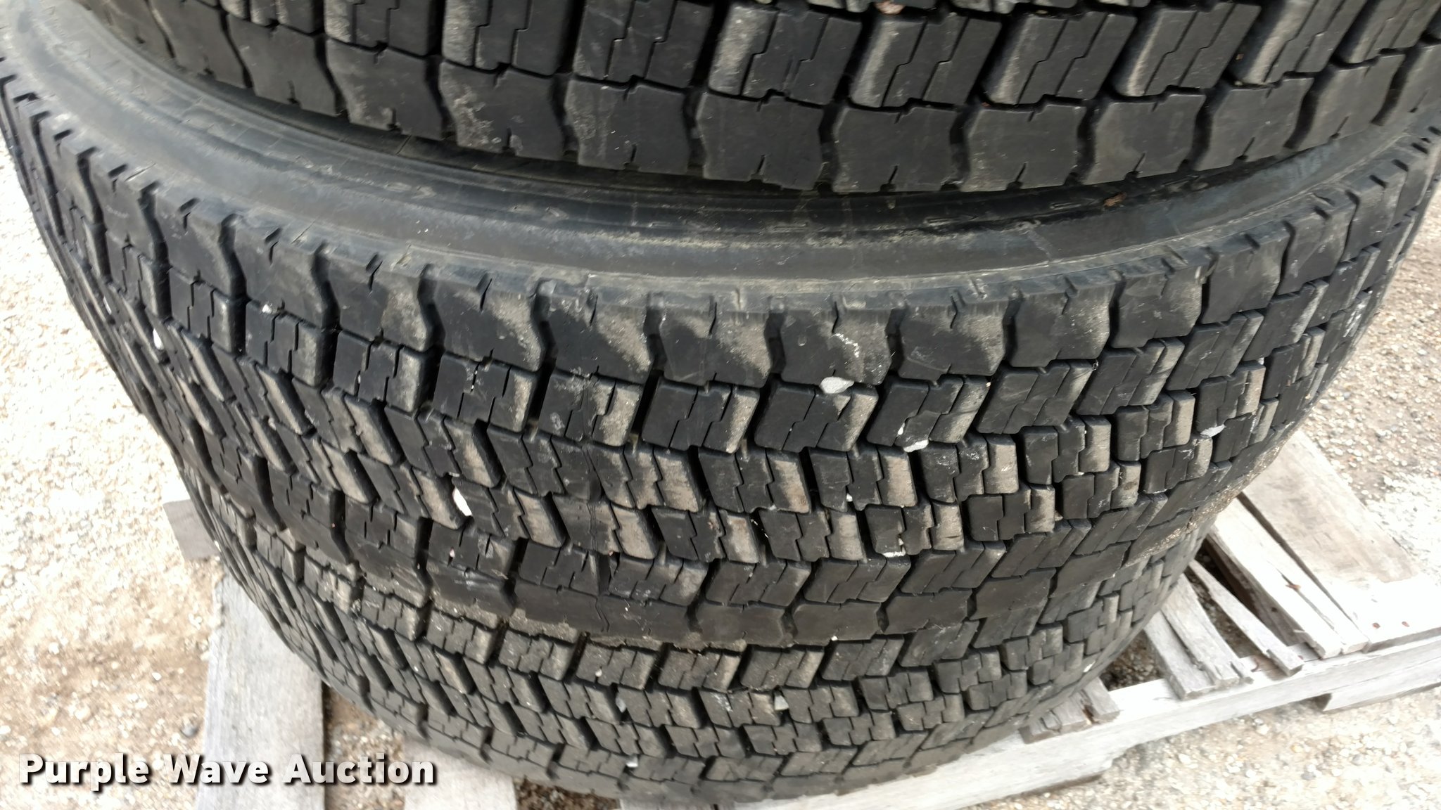 Purple Wave is selling a used Industrial Tires or Tracks in Kansas. This item is a (4) Michelin 315/80R22.5 tires with the following: Tires have been recapped
