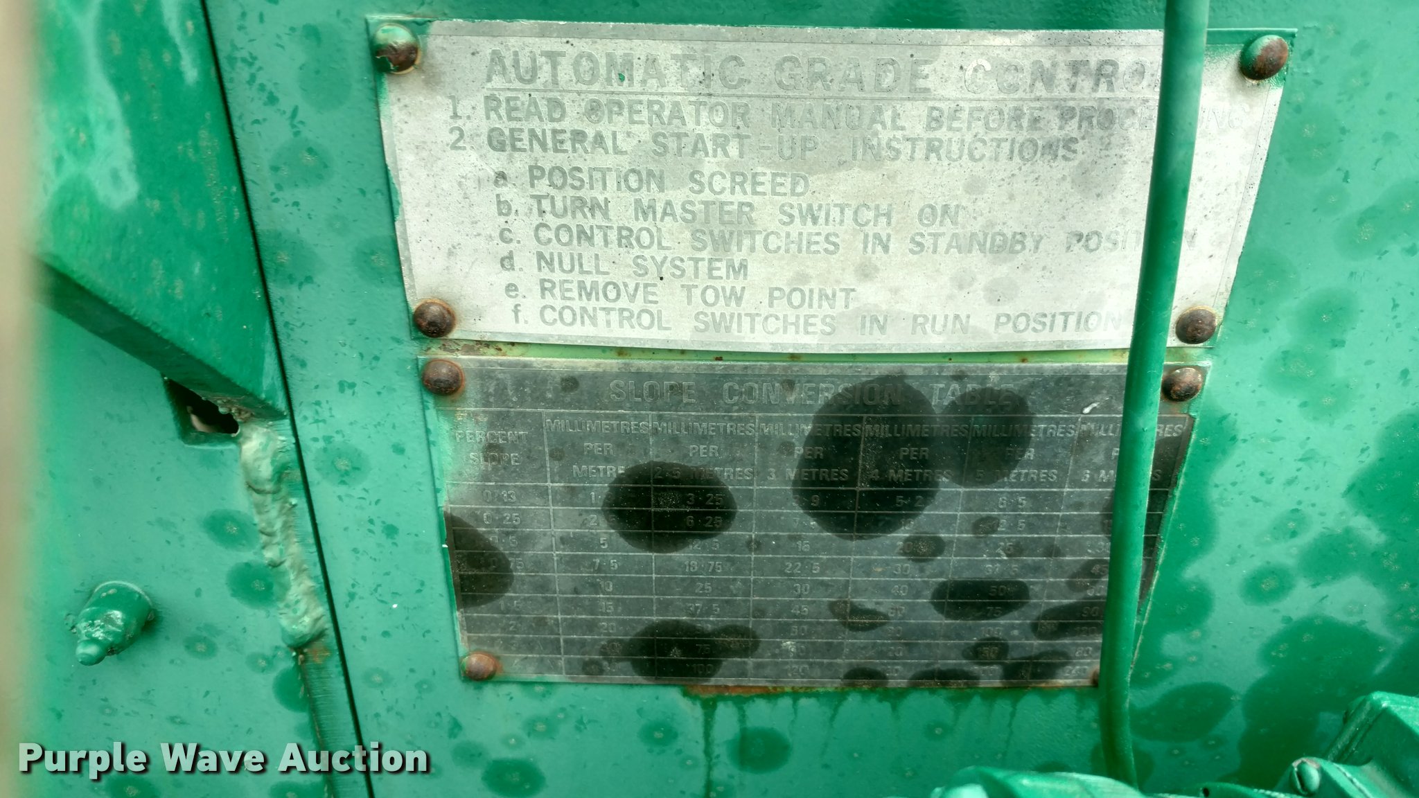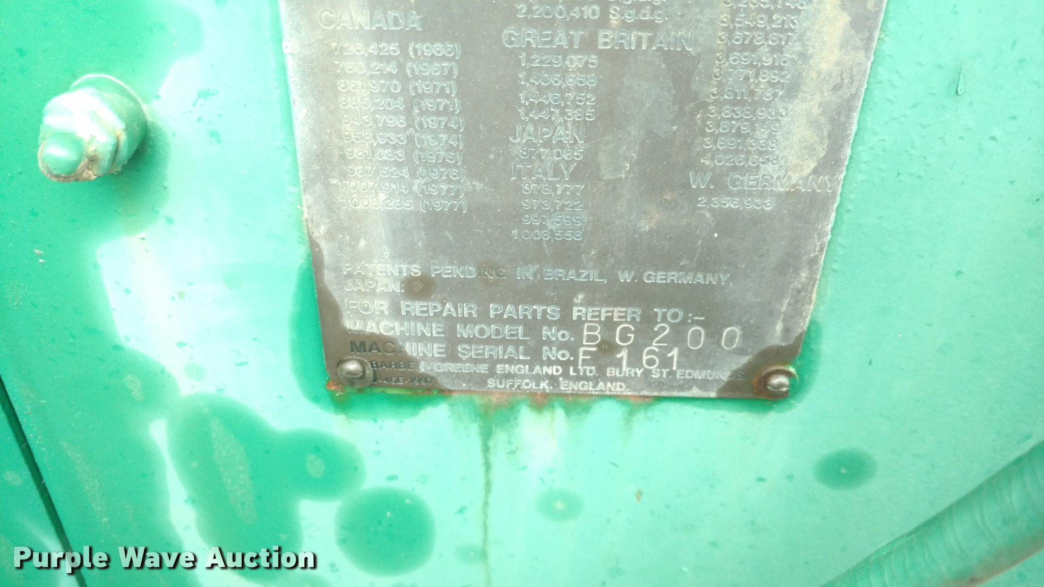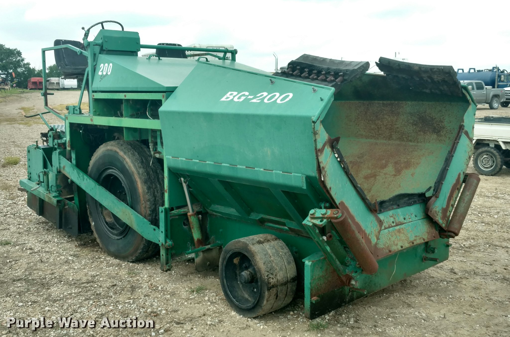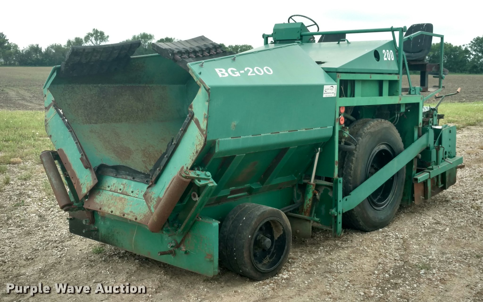 Purple Wave is selling a used Paver or Screed in Kansas. This item is a Barber Greene BG200 paver with the following: 3,419 hours on meter, Three cylinder diesel engine, Hydrostatic transmission, 11.5' standard paving width, 12.00R24 tires, 14,884 lbs. base operating weight, Serial F161