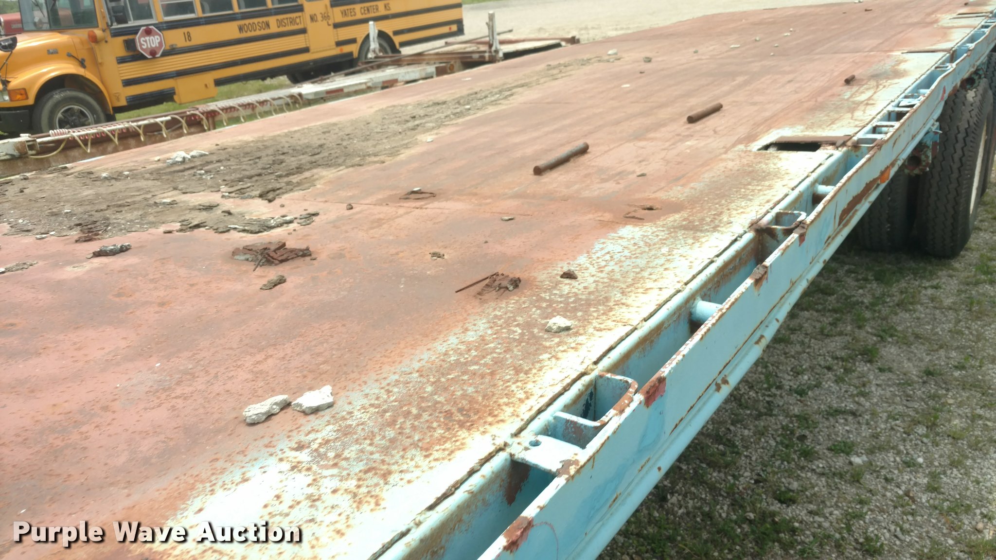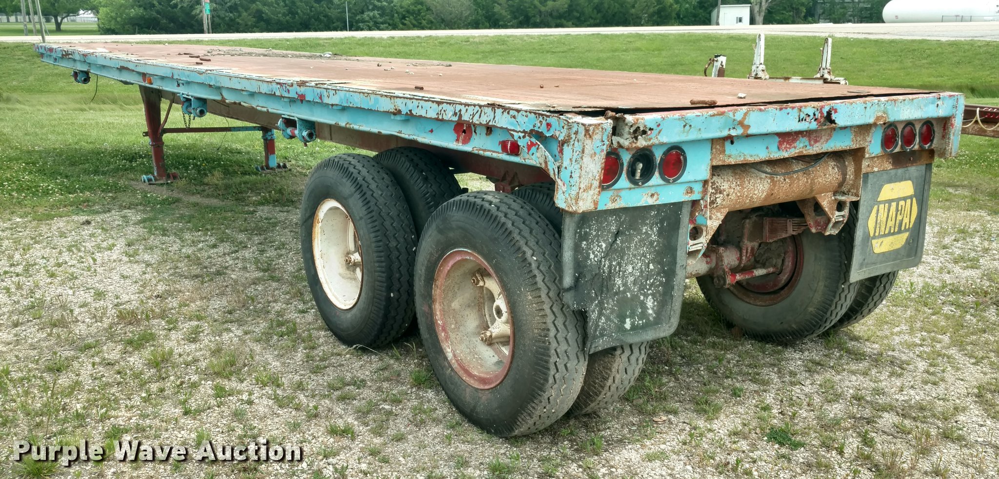 Purple Wave is selling a used Flat or Drop Deck Trailer in Kansas. This item is a 1956 Dorsey DGT-18 float deck trailer with the following: 32'L x 8'W steel deck, Tandem axle, Spring suspension, Air brakes, 10.00-20 tires