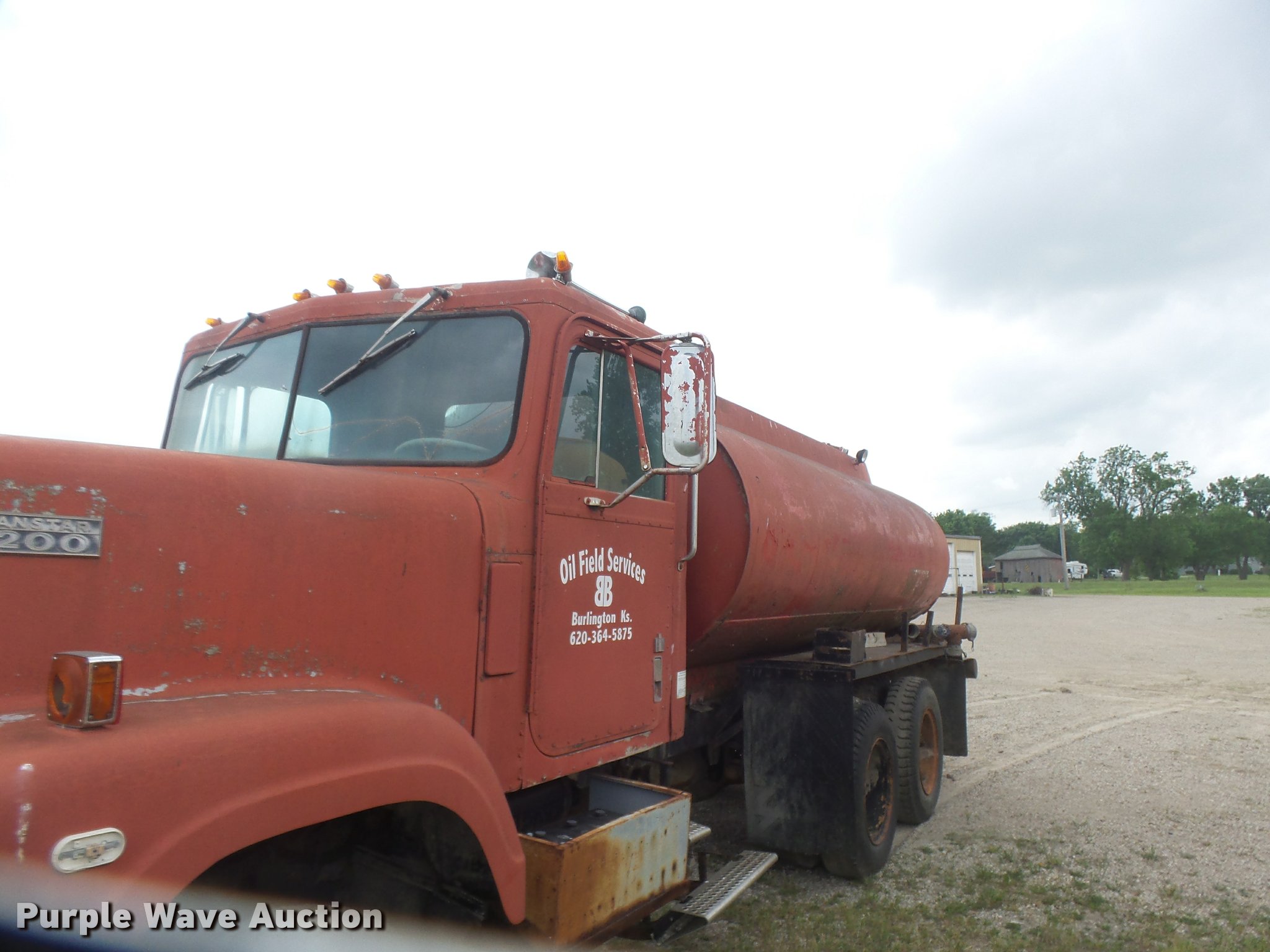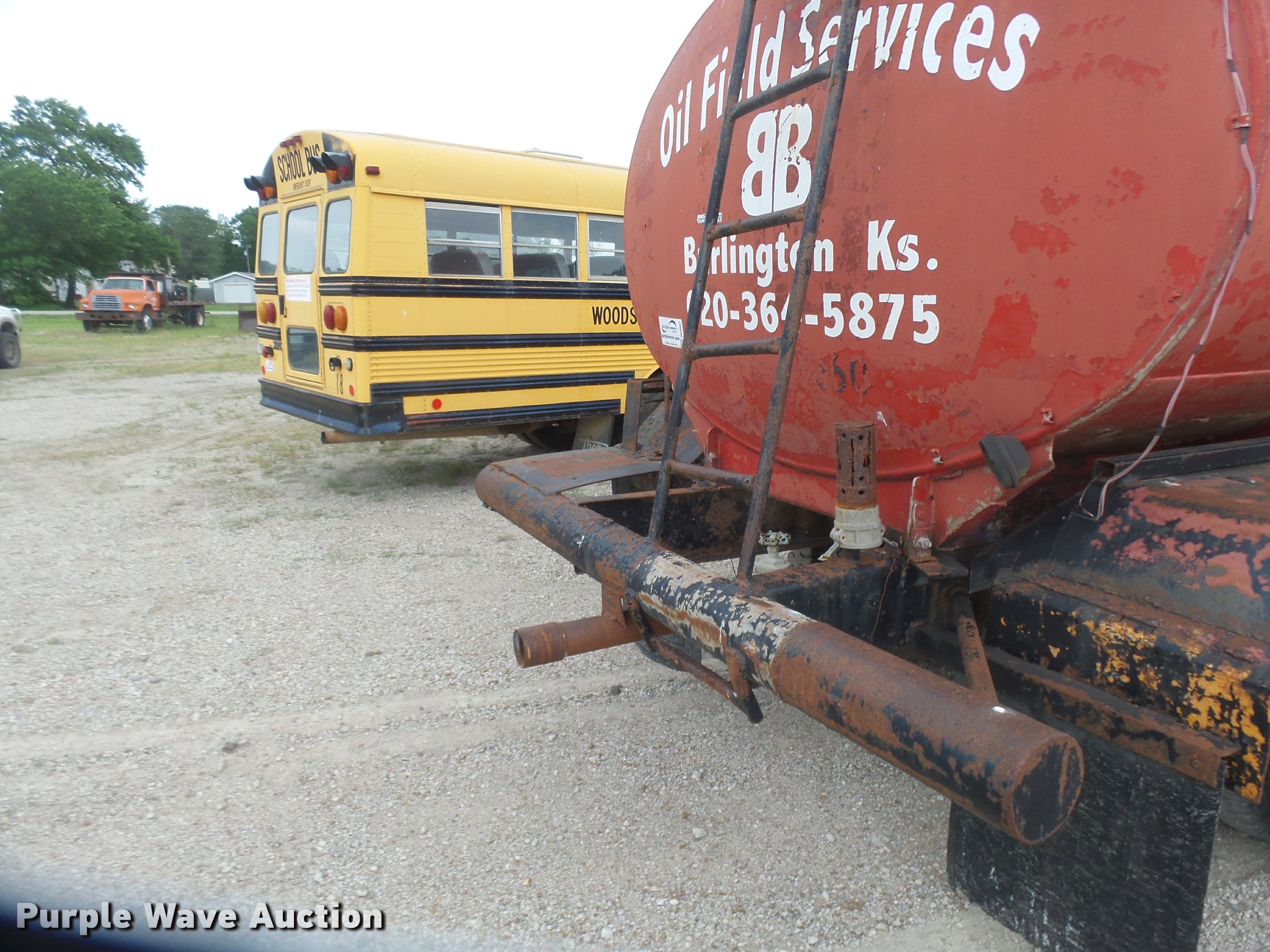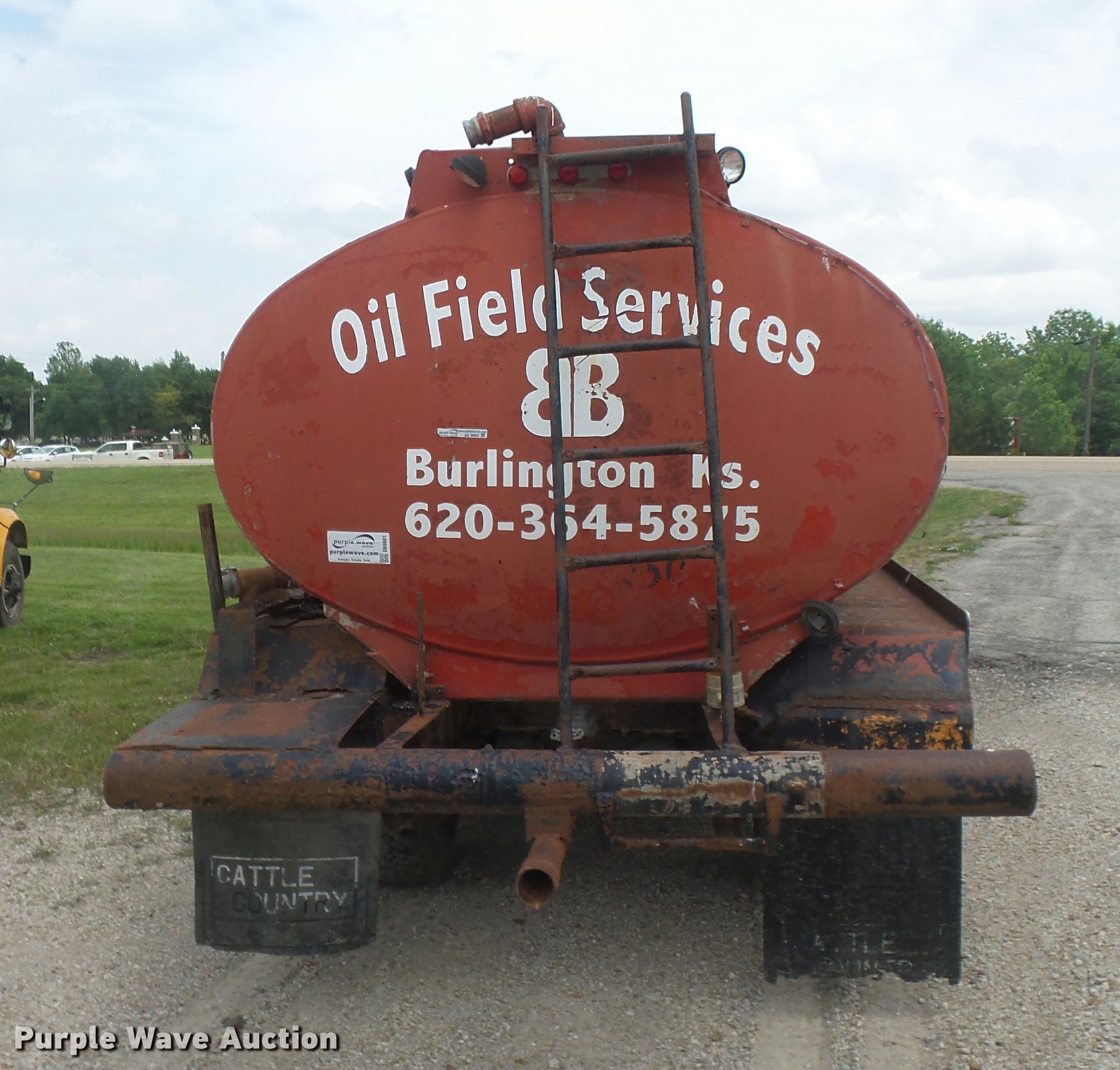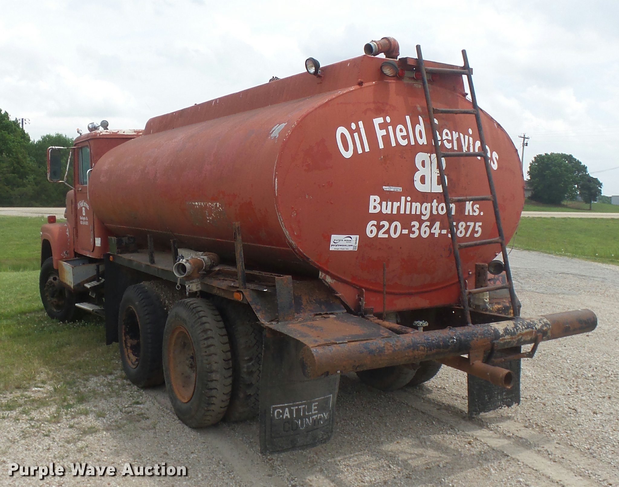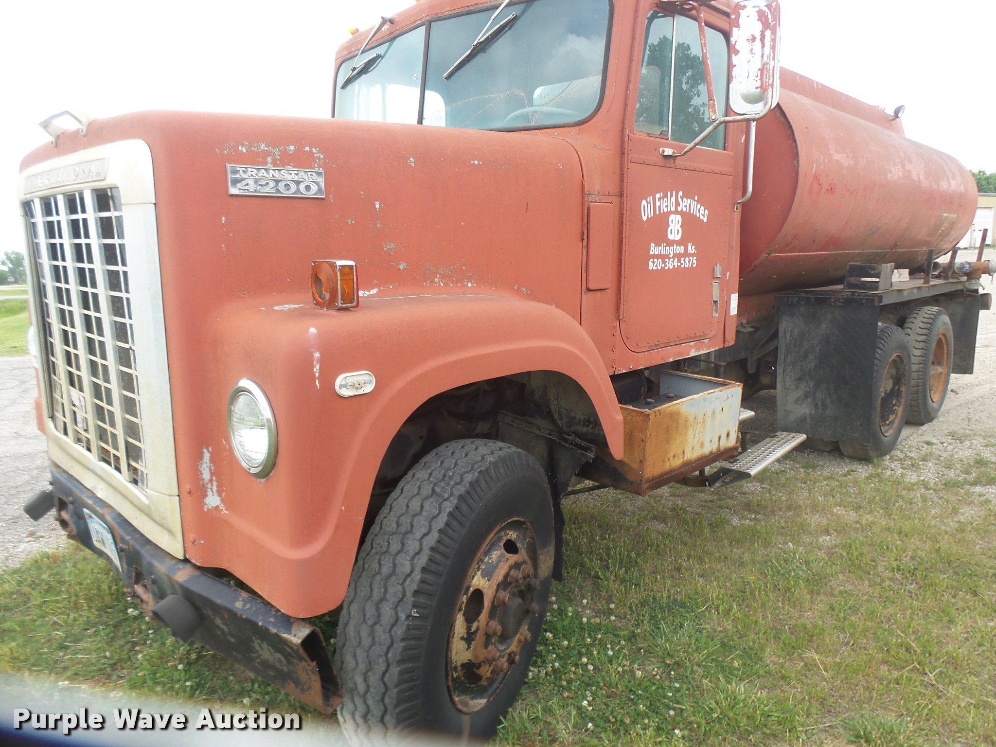 Purple Wave is selling a used Tank Truck or Water Truck in Kansas. This item is a 1973 International 4200 tank truck with the following: Eight cylinder diesel engine, Manual transmission, Tandem axle, Heat, Rear discharge, 4" rear drain, Single exhaust stack, Air brakes, 9.00-20 tires, Non-operational vehicle