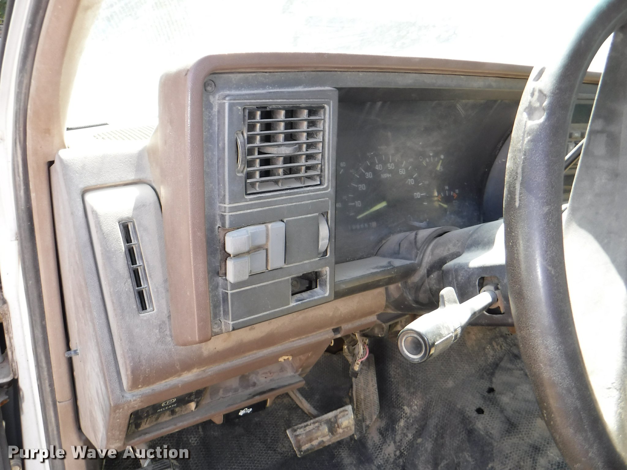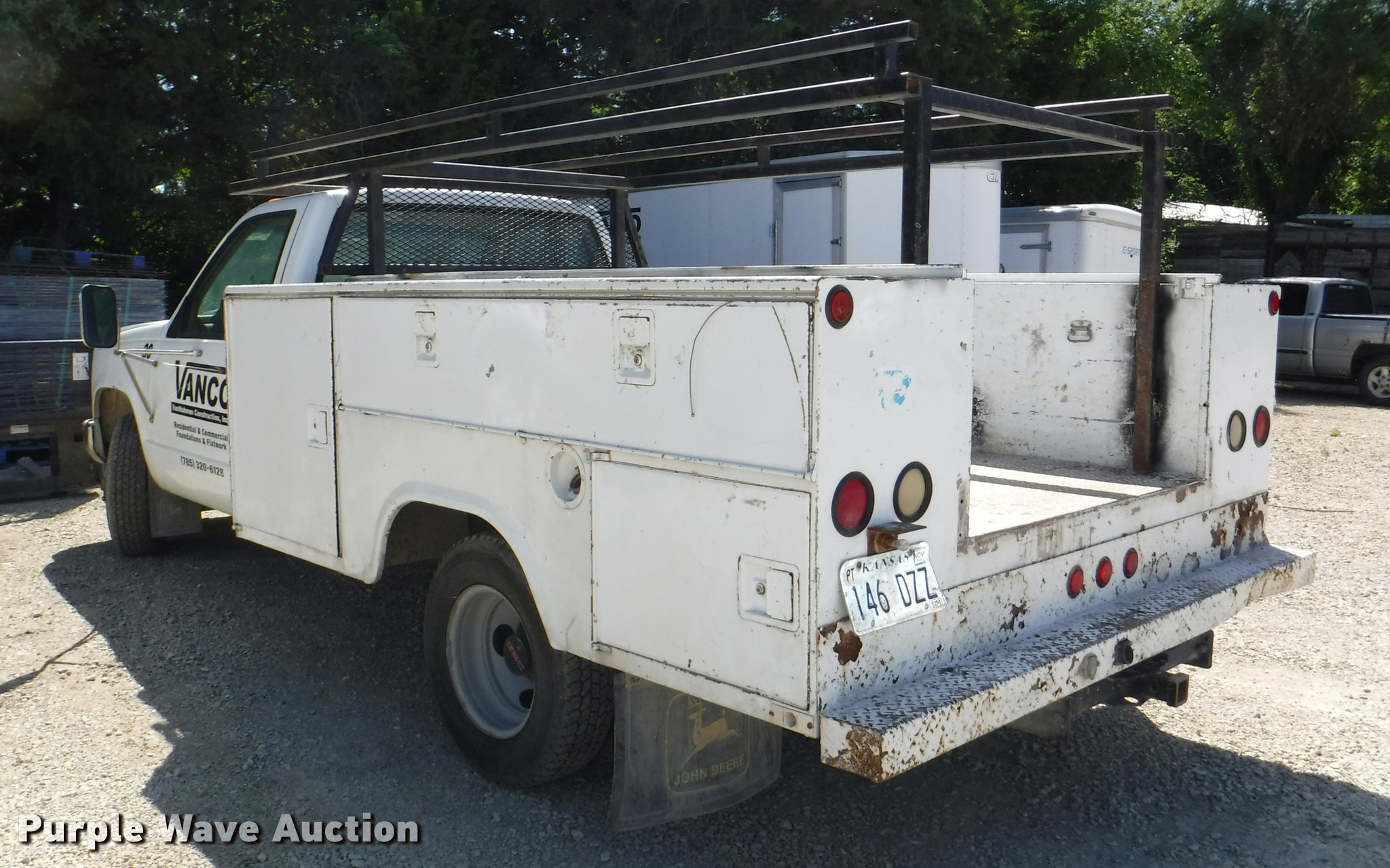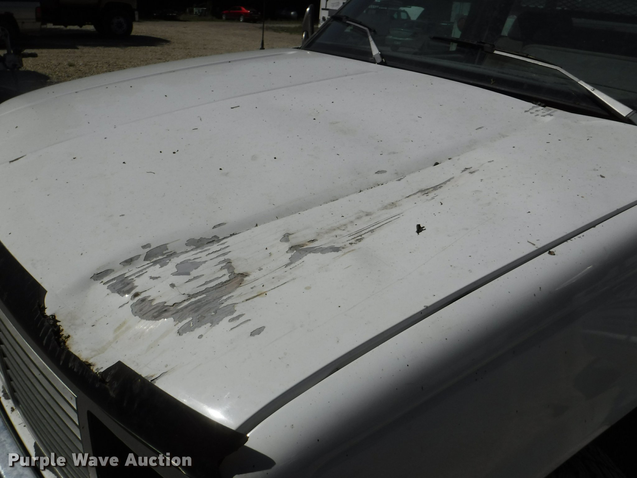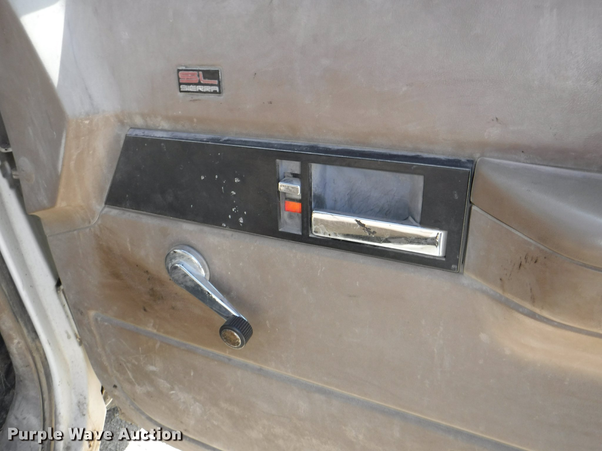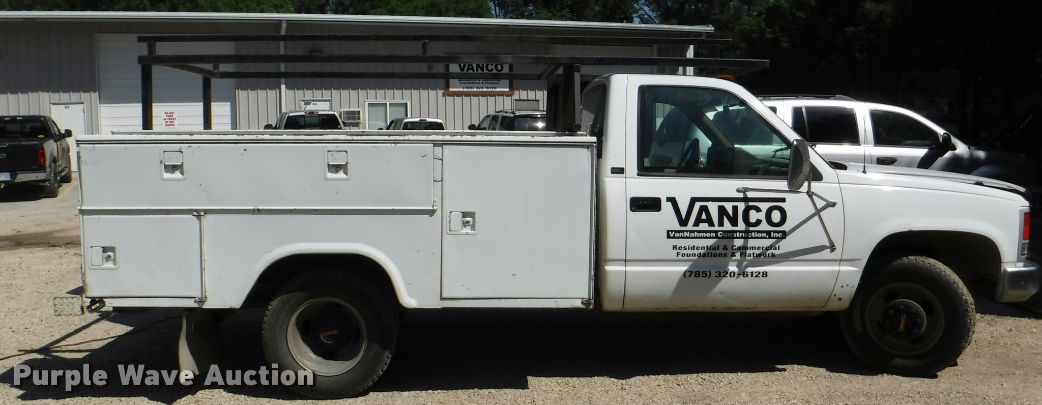 Purple Wave is selling a used Service Truck in Kansas. This item is a 1993 GMC Sierra 3500 utility truck with the following: 199,657 miles on odometer, 5.7L V8 OHV 16V gas engine, Automatic transmission, AC and heat, AM/FM, Manual windows and locks, Cloth interior, Stahl utility bed, 9'L x 92"W, Ladder rack, Receiver hitch, Trailer wiring, 225/75R16 tires, Non-operational fuel gauge, Radio no hooked up, Decals will be removed prior to auciton, Unit# 30