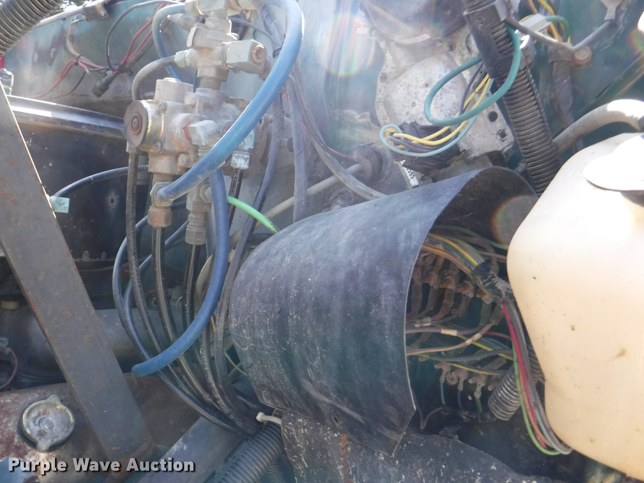 1988 Chevrolet Kodiak dump truck. 329,891 miles on odometer Actual mileage unknown, 1997 GM Detroit Diesel Reman eight cylinder diesel engine Serial 08GR110050, Five speed manual transmission Two speed rear end, Single axle, Heat, Steel dump bed 138"L x 8'W, 26" side height, 12"H side boards, Single ram hoist, Air operated end gate, Front tow hooks, Single fuel tank, Ball hitch, Trailer wiring, 185" wheelbase, Spring suspension, Air brakes, 10.00R20 tires, GVWR 33,200 lbs, FAWR 12,000 lbs, RAWR 21,200 lbs, Decals will be removed prior to auction. Kansas title. 1GBP7D1G2JV107766. Manhattan, KS 66502