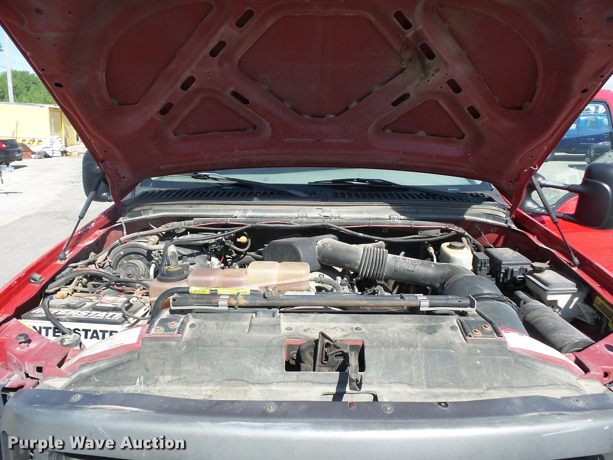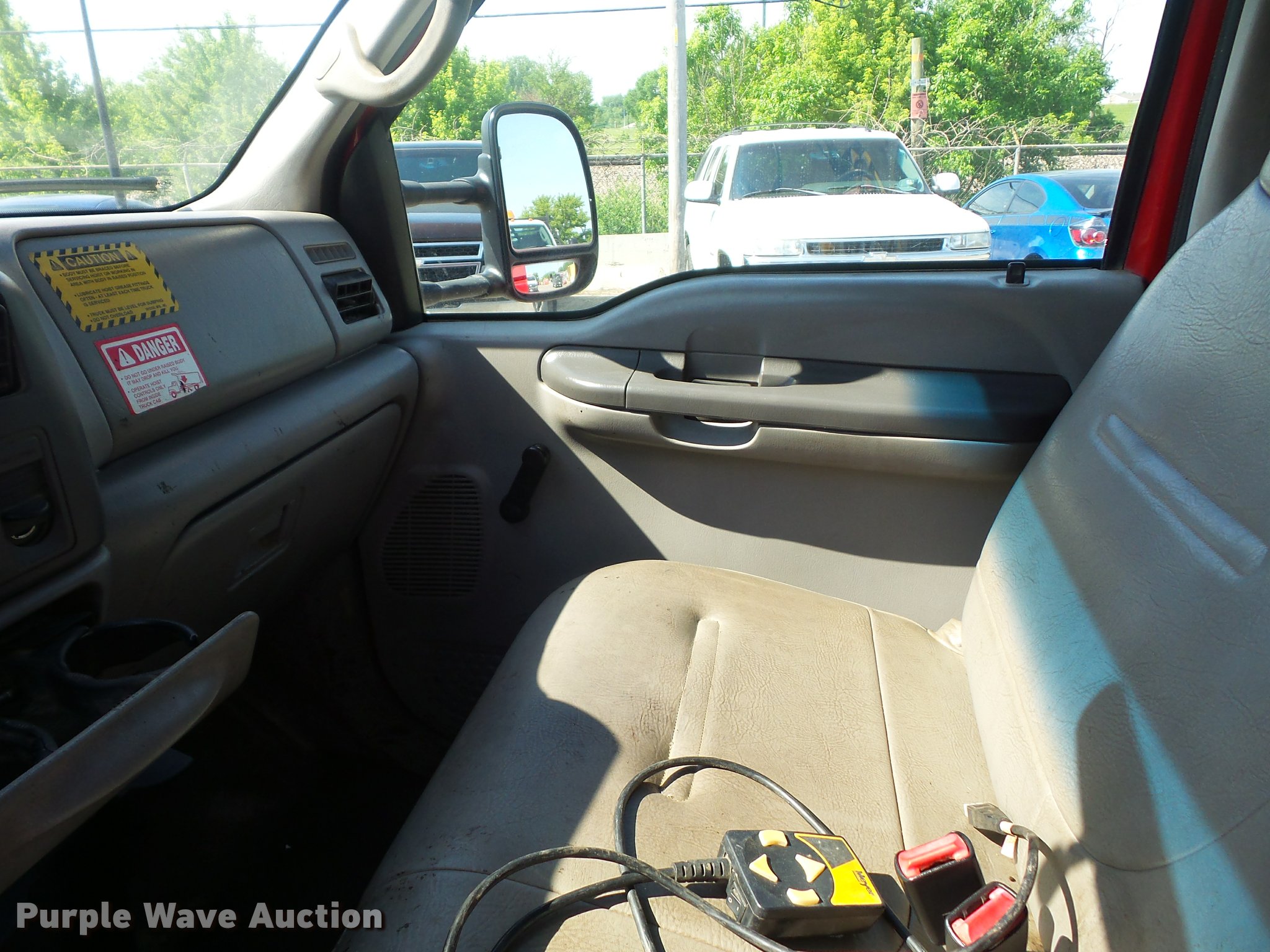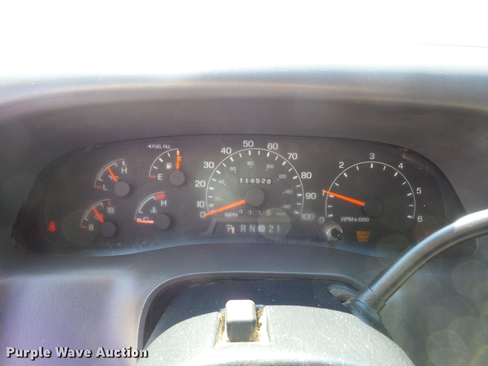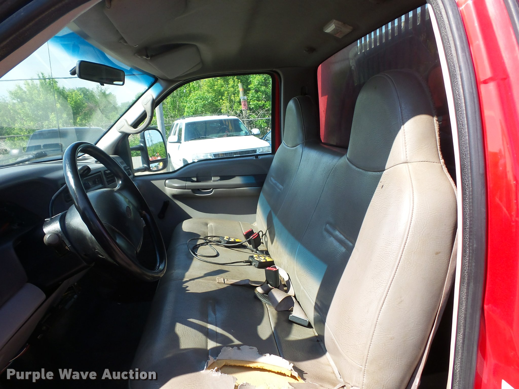 Purple Wave is selling a used Construction Dump Truck in Missouri. This item is a 2000 Ford F450 Super Duty dump truck with the following: 114,528 miles on odometer, 6.8L V10 SOHC 20V gas engine, Automatic transmission, Heat, AM/FM, Manual windows and locks, Vinyl interior, 11'L x 8'W dump bed, 14" folding sides, 7"H side boards, Toolbox, Meyer snow plow, 90"W, Pintle hitch, 225/75R19.5 tires, Check engine light is on